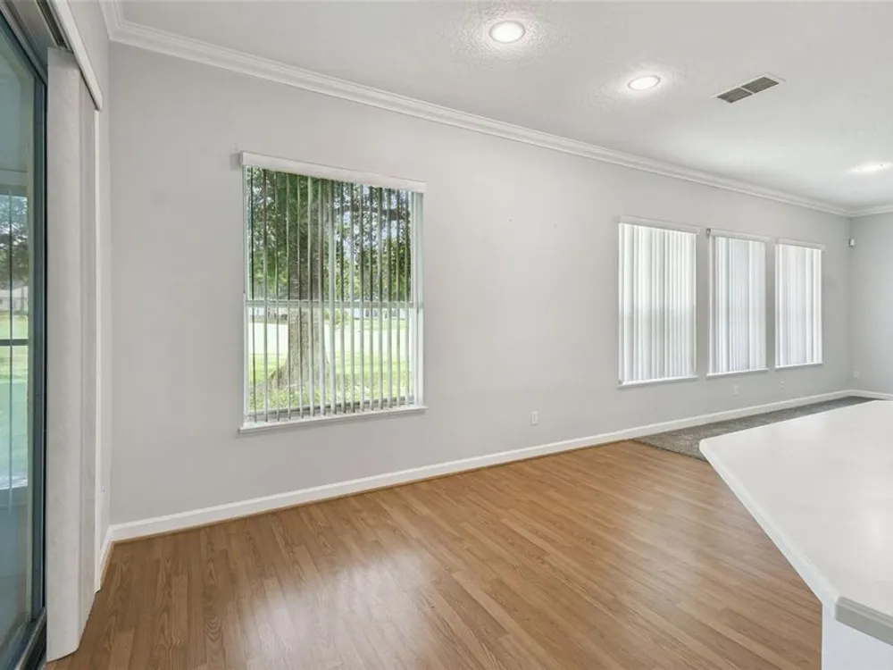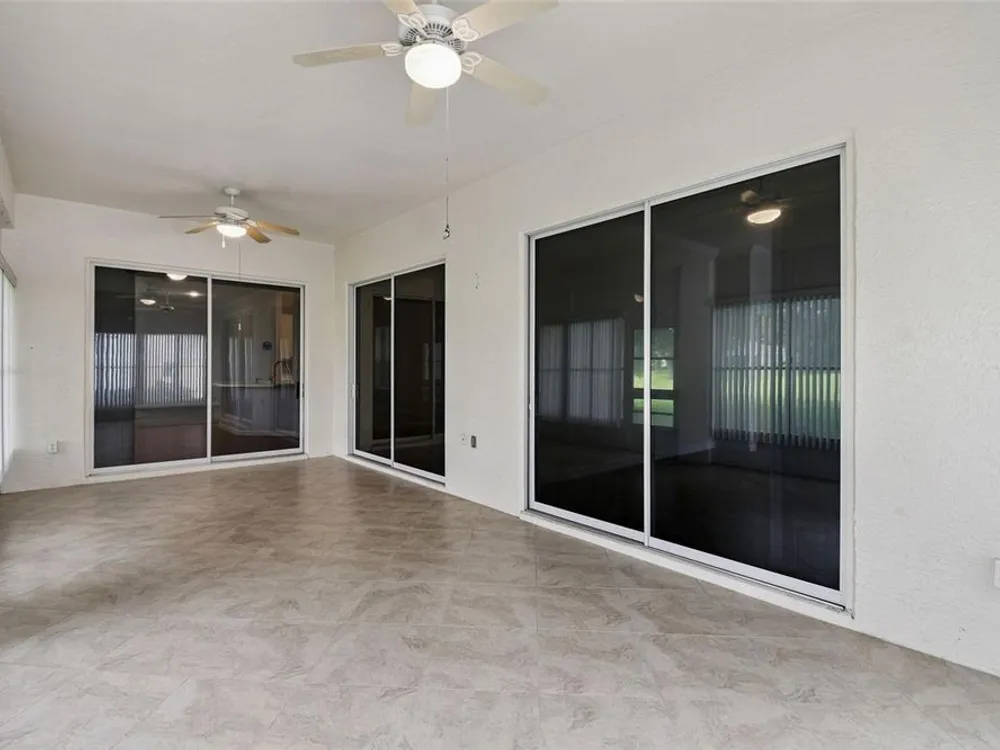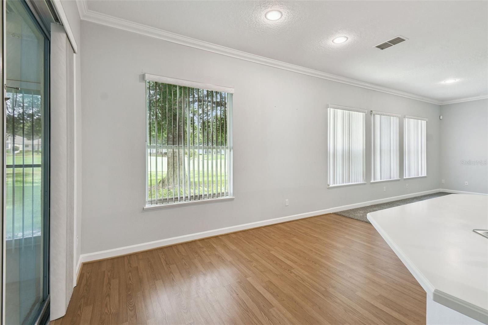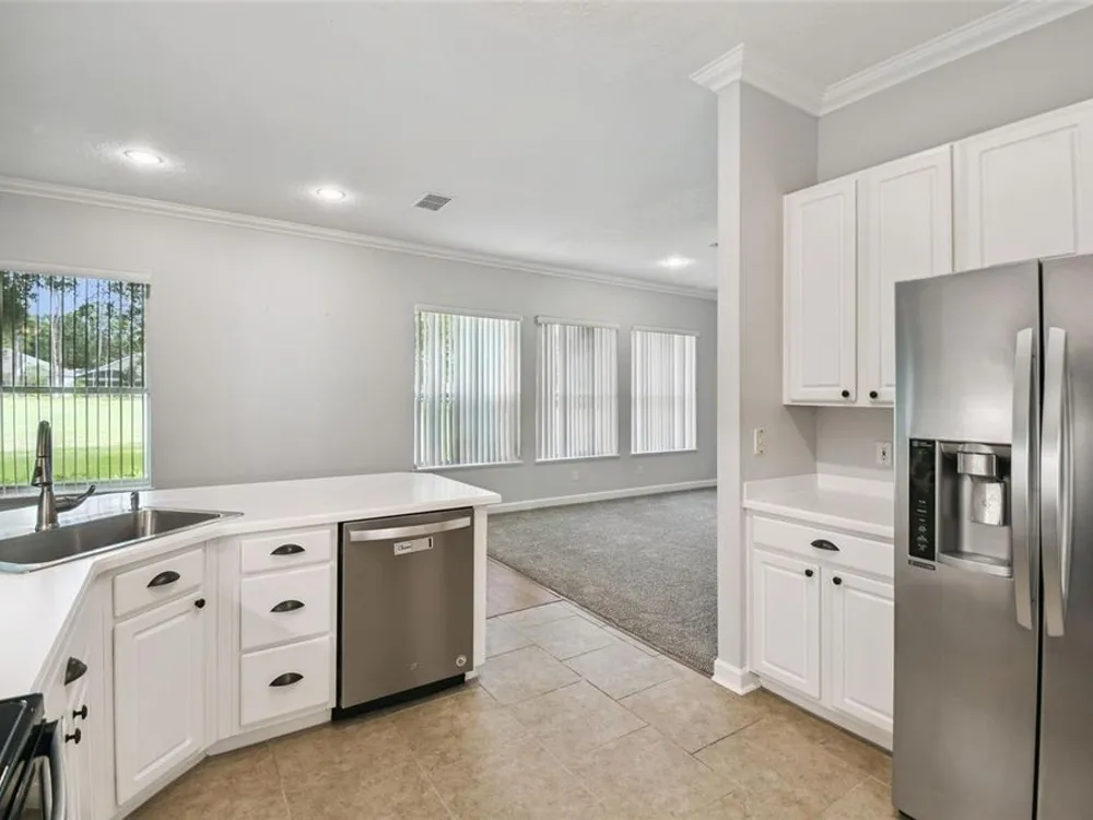 Welcome to 3805 Scarborough Ct, a beautifully maintained Nottingham model situated on the GOLF COURSE in the GATED - "MAINTENANCE FREE," 55 PLUS COMMUNITY in the highly desirable East Hampton section of Kings Ridge. This home offers 3 bedrooms, 2 full bathrooms, and a spacious three-car garage, all thoughtfully designed for comfort, style, and entertaining. NO FRONT OR REAR NEIGHBORS!! Golf course views from the front of the home and views greet you from multiple rooms. The LARGE ENCLOSED back porch (not part of the heated sq ft) features vinyl windows, perfect for enjoying the scenery on rainy or cooler days or open them to let in the full breeze. Two ceiling fans and diagonal tile add both comfort and elegance, while the large, covered porch extends the entertaining space outdoors. Views of the course also stretch across the family room, breakfast nook, kitchen, formal living room, and even the dining room and front porch, making every corner of this home connected to the lush surroundings. Inside, the home combines durability and style with laminate floors in the living and dining areas, tile in the wet areas and 3rd bedroom, and brand-new carpet in the master bedroom and 1 of the guest rooms. The popular floor plan includes both formal and family rooms, allowing for versatile living and entertaining. The kitchen is designed for both function and social connection, featuring 42" cabinets, stainless steel appliances, white Corian countertops, a breakfast bar, a closet pantry, and abundant counter space, perfect for preparing meals while staying connected to family and guests. The master suite continues the golf course views, offering dual walk-in closets and a master bathroom with a glass-enclosed shower, senior walk-in bathtub, and dual vanities. Attic pull-down stairs provide additional storage above the three-car garage. Throughout, the home has been very well maintained, from the tiled roof to the upgraded landscaping with mature trees, including a flourishing orange tree. Kings Ridge is a gated community offering a full range of amenities, including two golf courses, tennis courts, two pools, and a recreation building with classes and excursions. Residents enjoy easy access to major roads, or for a more leisurely option, you can reach grocery stores, restaurants, and shops by golf cart without ever stepping onto a main road. Monthly maintenance covers exterior repainting, lawn care, cable, and more, allowing you to enjoy the lifestyle without the hassle. This home combines timeless elegance, functional living spaces, and a premier golf course location, making it a must-see for buyers seeking the best of Kings Ridge living.