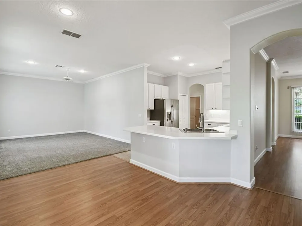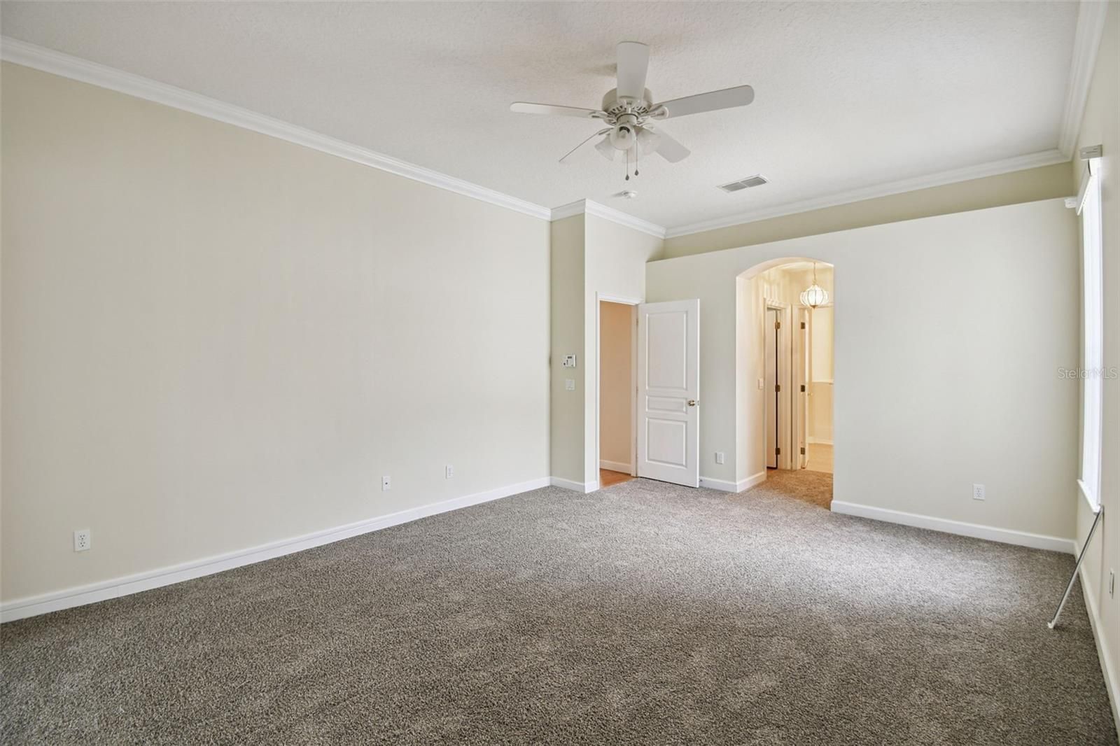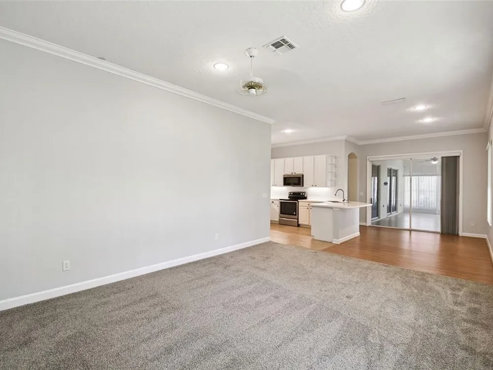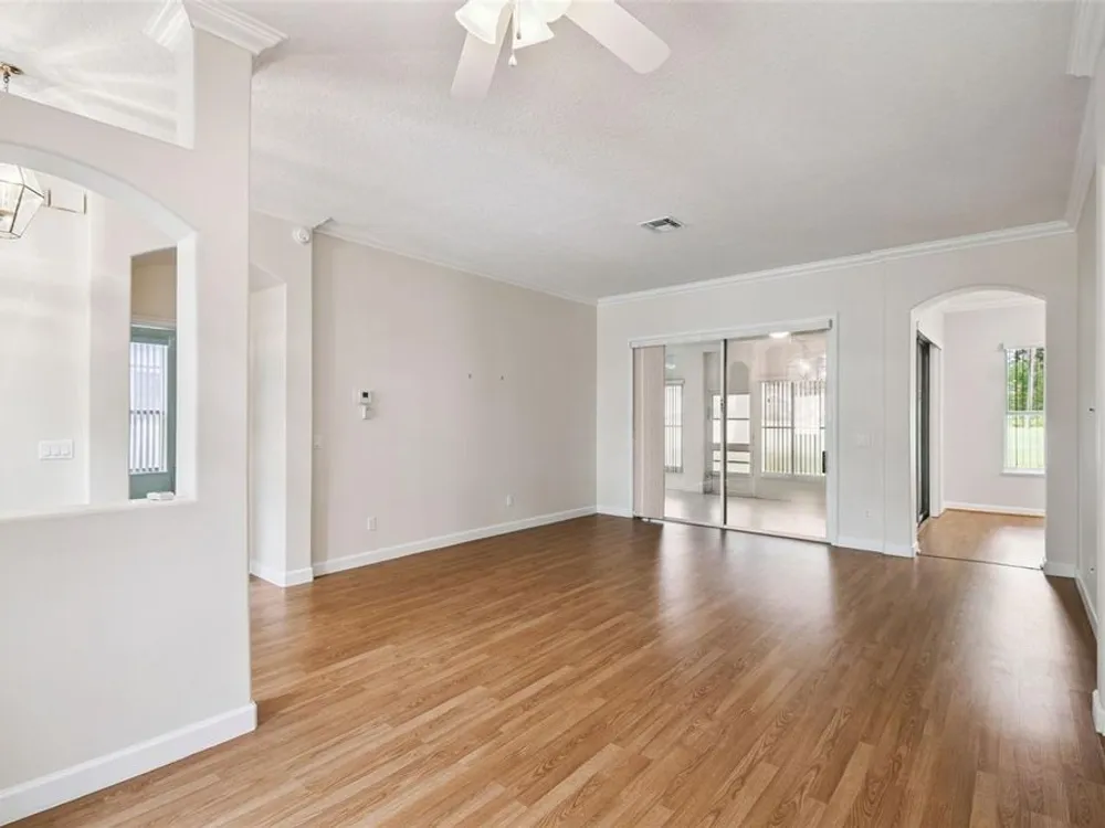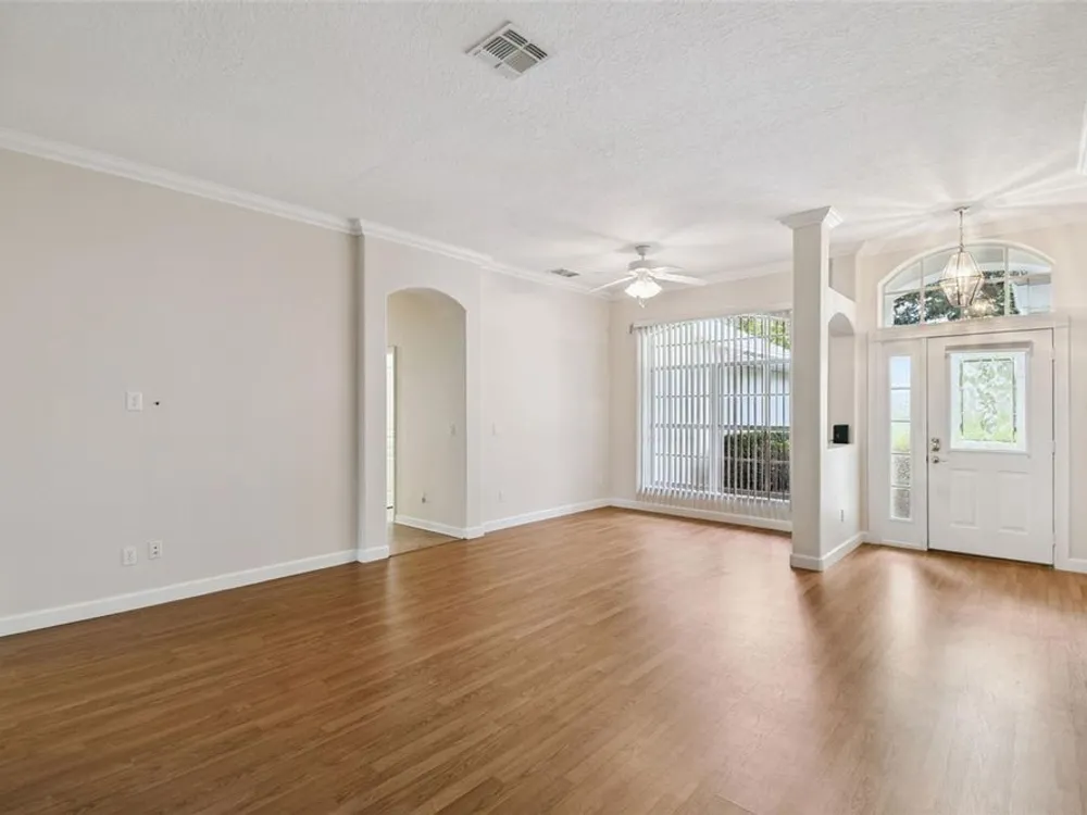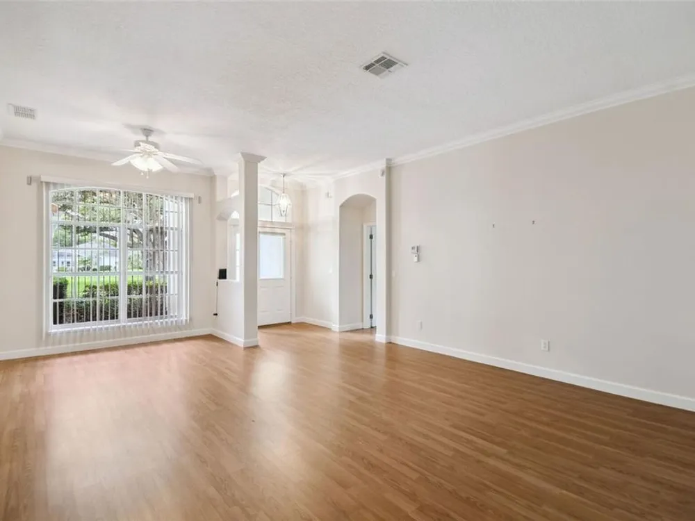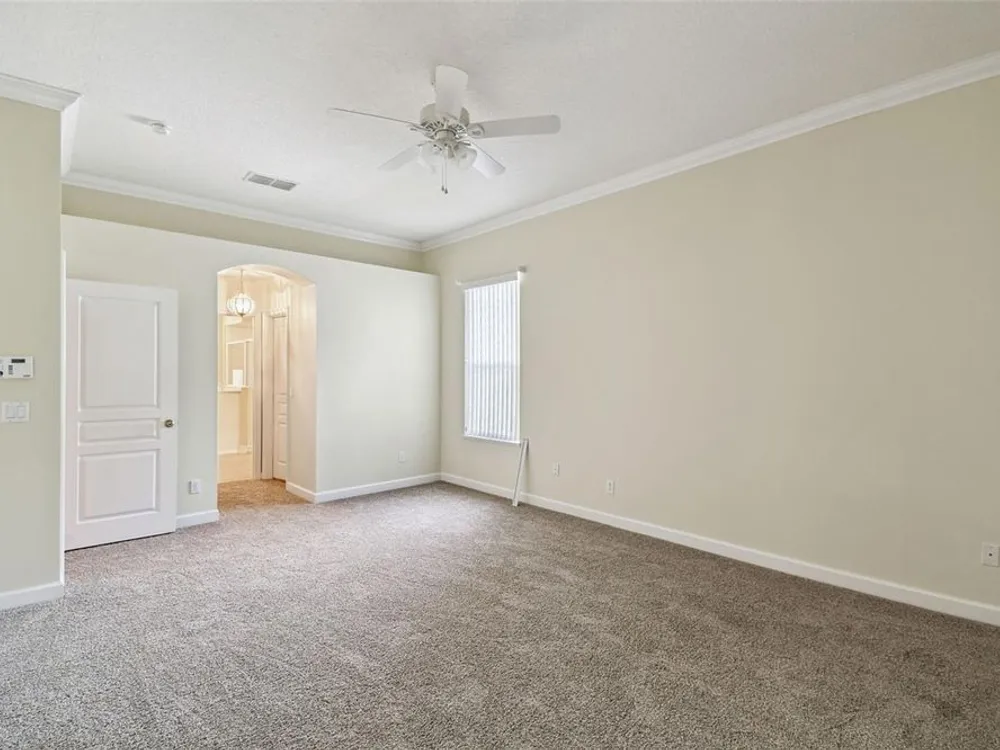 - Ceiling Fan(s), Crown Molding, High Ceilings, Kitchen/Family Room Combo, Living/Dining Room, Split Bedrooms, Tray Ceiling(s), Walk-In Closet(s)