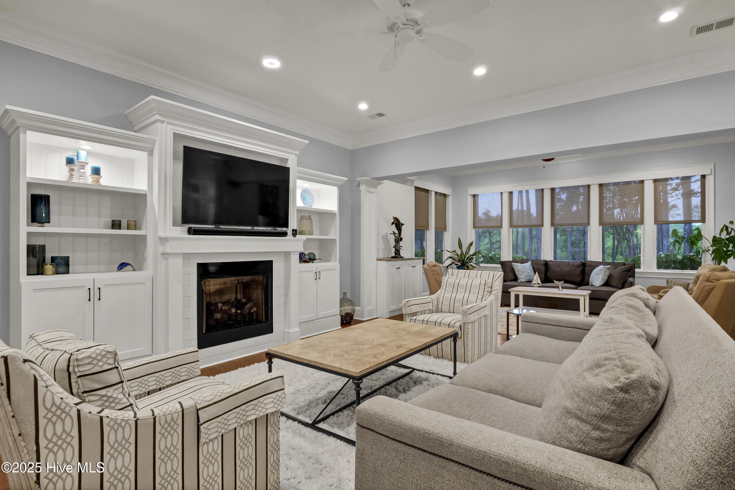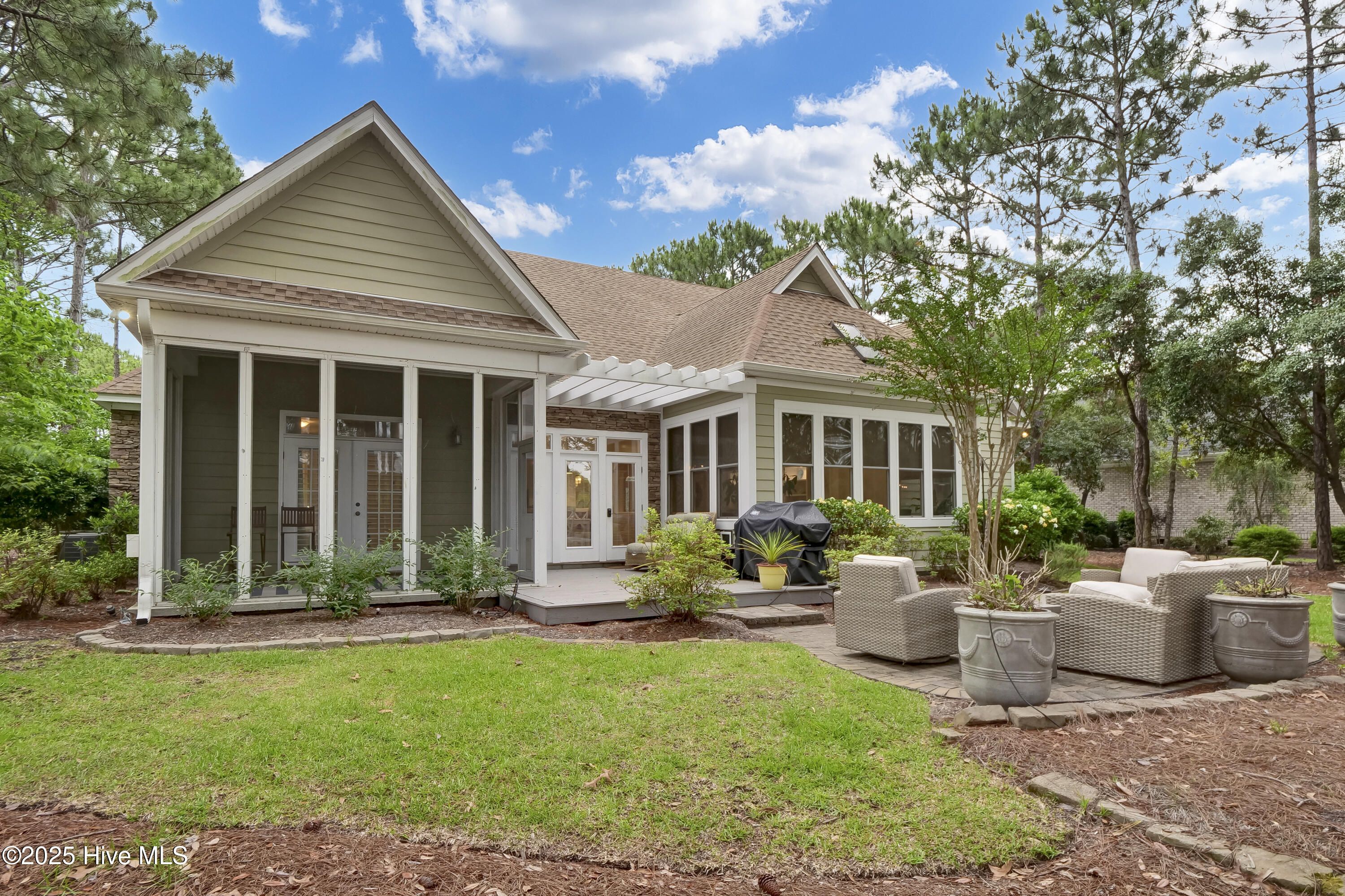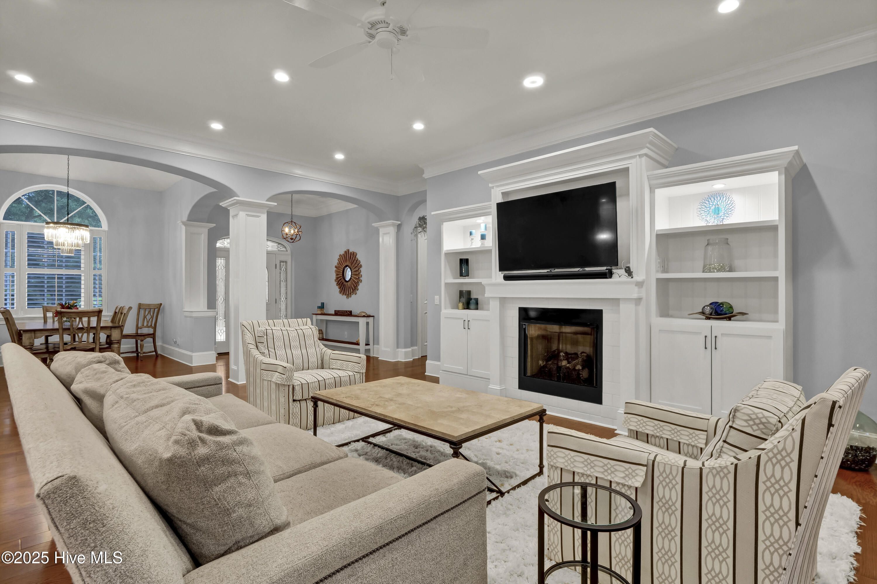 Welcome to this immaculate 4-bedroom, 3.5 -bath home perfectly positioned on the #10 fairway of The Reserve Golf Course in sought-after St. James Plantation. The Reserve is St. James most distinguished neighborhood, known for its premier golf course setting, timeless homes, and exceptional lifestyle. Ideally located near the main gate and within walking distance to the club, this home is thoughtfully designed for comfort, style, and functionality. It offers primarily single-level living with a spacious upstairs en-suite bedroom and bath, a dedicated office and two fully insulated, oversized floored attic storage rooms. Built with Polysteel construction and spray foam insulation, the home delivers exceptional energy efficiency, structural integrity, and superior soundproofing. Inside, abundant natural light, soaring 10-foot ceilings, and high-end custom finishes create an inviting and elegant atmosphere throughout. The open-concept floor plan is ideal for entertaining and centers around a chef's dream kitchen featuring a Fisher & Paykel refrigerator, Asko dishwasher, gas range/oven with custom hood, electric wall oven, microwave, wine cooler, and granite countertops. Thoughtful details include a coffee bar, large pantry, expansive center island, and abundant custom cabinetry. Enjoy gatherings in the formal dining room, relax by the cozy gas fireplace in the living area, or unwind in the beautiful sunroom filled with natural light, overlooking the professionally landscaped backyard, patio and golf course. The luxurious primary suite features a coffered ceiling, two custom walk-in closets, and a spa-inspired bath. French doors lead to a private screened-in lanai—perfect for morning coffee or an afternoon retreat. Two additional bedrooms are located on the opposite side of the home, offering privacy for guests or family. As a resident of St. James Plantation, enjoy world-class amenities including a private oceanfront beach club, fitness center, full-service marina with restaurant and tiki bar, tennis and pickleball courts, parks, and 81 holes of championship golf with membership. This home also includes a one year 2-10 Home Buyers Warranty offering peace of mind and added value. Resort-style living at its finest. Schedule your private showing today.
