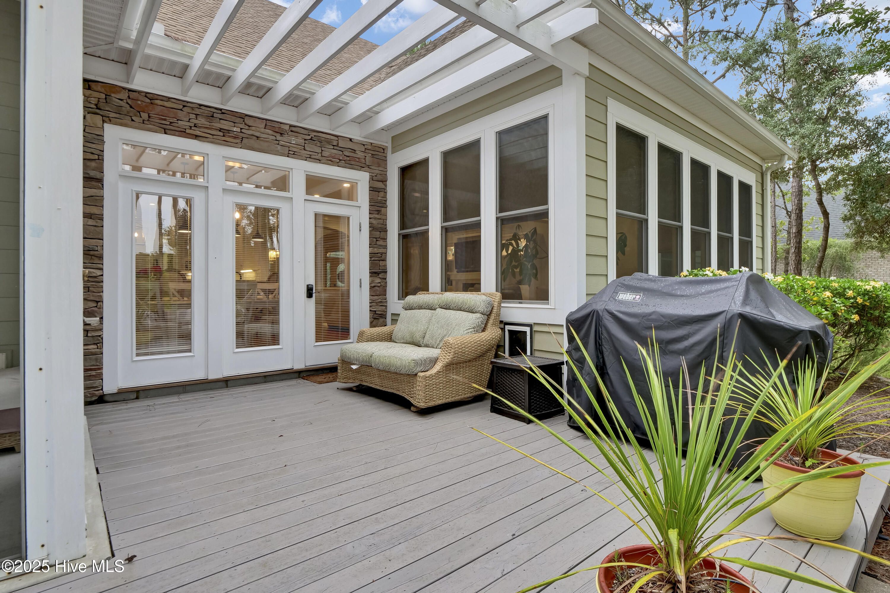 Welcome to this immaculate 3/4 bedroom, 3 bath home perfectly situated on the #10 fairway of The Reserve Golf Course in sought-after St. James Plantation. Offering single-level living with a spacious bonus/bedroom and bath upstairs, plus a dedicated office/craft room and two fully insulated, floored attic storage rooms, this home has space, style, and functionality. Built with Polysteel construction and spray foam insulation, it delivers energy efficiency, structural integrity, and exceptional soundproofing. Inside, you'll be captivated by abundant natural light, 10-foot ceilings, and high-end custom finishes throughout. The open-concept layout is perfect for entertaining, featuring a chef's dream kitchen equipped with a Fisher & Paykel refrigerator, Asko dishwasher, gas range/oven with custom hood, electric wall oven, microwave, wine cooler, and granite countertops. No detail is overlooked—from the coffee bar and large pantry to the expansive center island and abundant cabinetry. Enjoy meals in the formal dining room, relax by the cozy gas fireplace in the living area, or sip your morning coffee in the enclosed sunroom overlooking the professionally landscaped backyard and patio. The luxurious primary suite boasts a coffered ceiling, two custom walk-in closets, and a spa-like bathroom. Two additional bedrooms are located on the opposite side of the home, offering privacy for guests or family. As a resident of St. James Plantation, you'll enjoy unparalleled amenities including a private oceanfront beach club, fitness center, full-service marina with restaurant and tiki bar, tennis, pickleball, parks, and 81 holes of golf with membership. This is resort-style living at its finest—schedule your private showing today! This property is protected by a warranty through 2-10 Home Buyers Warranty & is available for purchase at closing. If not purchased, the warranty will expired at closing & the property would be unprotected.