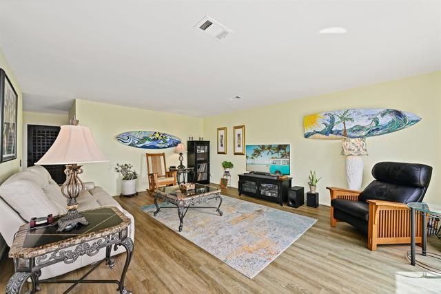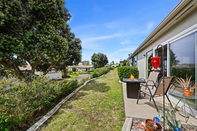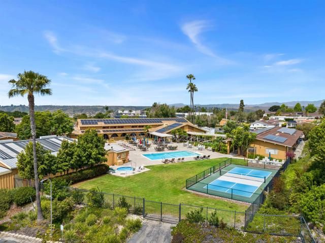 Unique detached home (2bd-2ba) w/ covered entry, attached 2-car garage w/2E-car outlets, indoor laundry, covered walkways in original “Oceana” 55+ community. This Oceana property offers full home lot ownership and resort-style amenities: 2 pools, a spa, indoor & outdoor pickleball courts, billiards room w/two full sized pool tables + tabletop shuffleboard, pool deck ping pong, art room offering ceramics, painting, +other art pursuits and classes, lapidary shop (gems & and jewelry), wood working shop, community garden, dog park, golf course 1/932 share ownership yields 25% reduced green fees + non-golfing hours access for hiking, community garden, secure dog park, large club house with auditorium for organized activities, library, kitchen, & game rooms. Oceana’s superior hilltop location offers beautiful ocean + mountain views +easy access to main thoroughfares. Owner’s first 2012 remodel included “popcorn” asbestos ceilings removal. 2018 asphalt shingle “cool” roof installed in replacing inefficient/unreliable tar/stone roof. 2019 all asbestos air ducts removed & replaced. 2020 City Permit allowed Lanai area to be enclosed (currently used as an art studio but suitable for other uses). 2025 new furnace installed + added intake duct for efficiency. 2024-2025 new water heater and entire home PEX re-piping. PEX re-pipe project included: (1) spare bathroom new vanity, unique in-home laundry; (2) primary bathtub removed, new flooring, toilet, lighting, vanity & tile step in shower; and (3) freshly repainted most interior. Panoramic views of sunrise, sunset and ocean breezes from the south-facing patio & living room circulate through the home. Southern wall glass windows offers daily natural light and free winter passive solar heat. Interior temperature is easily seasonally controlled by 4 recessed/ pull down shades and open north wall air flow. Front yard redesigned with drought-resistant plants and drip irrigation. Rain barrel collects and stores rainwater, your plants will love. HOA monthly dues include home insurance covering home & garage structures per published limits, exterior stucco repairs & painting, Ultimate Cox cable tv, water & sewer services, Waste Management, common area landscaping, and improvements maintenance.