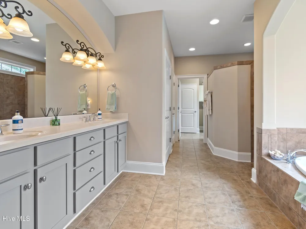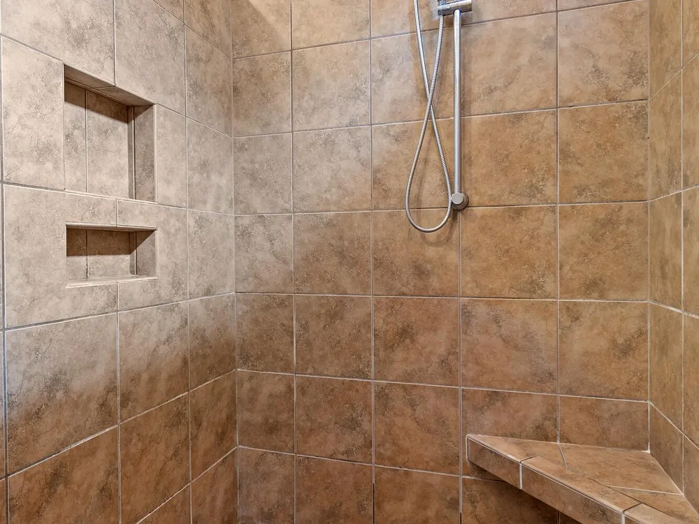 - Blinds/Shades, Solid Surface, Walk-In Closet(s), Walk-in Shower, Tray Ceiling(s), Entrance Foyer, Pantry, Master Downstairs, Kitchen Island, High Ceilings, Ceiling Fan(s)