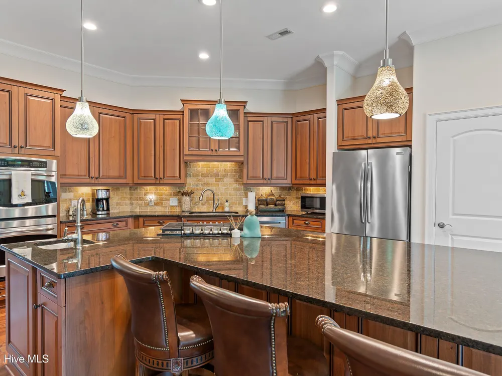 3808 Worthington Place - What a find! Prime Reserve Golf Course Location - Best neighborhood in the community.Welcome to 3808 Worthington Place, an elegant 3-bedroom, 3.5-bath home nestled in the highly sought-after Reserve neighborhood. Perfectly situated on a private .36-acre cul-de-sac homesite, this 3,473 sq ft residence combines timeless finishes, thoughtful upgrades, and an exceptional golf course location. An additional 108 sq ft of conditioned garage storage adds convenience and function.Step inside to a spacious open floor plan designed for both comfortable living and stylish entertaining. The gourmet kitchen is a showpiece, featuring brand-new appliances, updated lighting, and an impressive 10' x 5.5' center island with a GE Profile 5-burner gas cooktop and pop-up downdraft. A walk-in pantry ensures abundant storage for all your culinary needs.The family room offers a warm and inviting space with custom built-ins and a cozy gas log fireplace. Formal living and dining rooms are elevated by backlit tray ceilings, heavy crown molding, and rich architectural details, complemented by Hunter Douglas window coverings and custom drapery.A glass-panel door leads to the Carolina room, now equipped with a new Daikin mini-split for year-round comfort. The primary suite is a private retreat with an expansive layout, spa-style custom walk-in shower, and a luxurious 6-jet oversized Jacuzzi tub.Other notable features include gleaming hardwood floors throughout the main level, fresh interior paint, Living areas and Carolina room are hard wired for sound, heated and cooled storage area in the garage, full irrigation for the lush landscaping and colorful plantings, and a buried 250-gallon propane tank discreetly servicing gas appliances.This home offers the rare opportunity to enjoy quiet cul-de-sac living in one of the area's most prestigious neighborhoods--just steps from the acclaimed Reserve Golf Course.