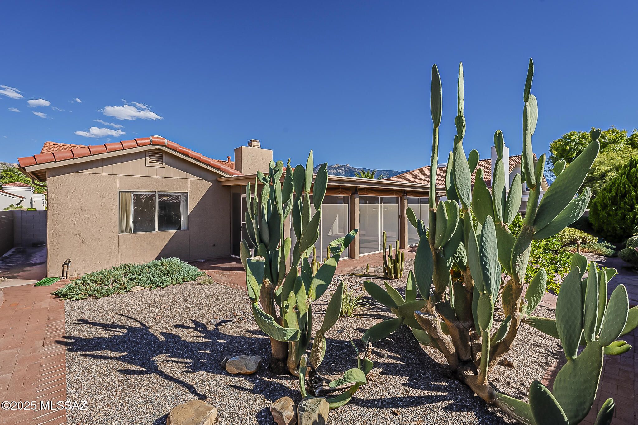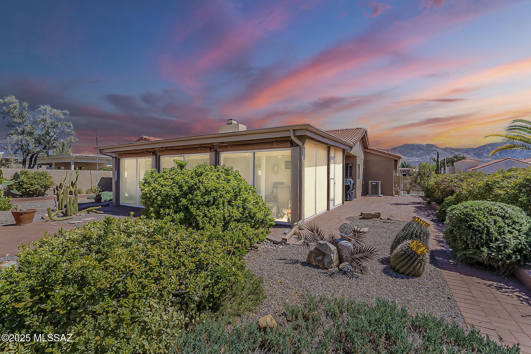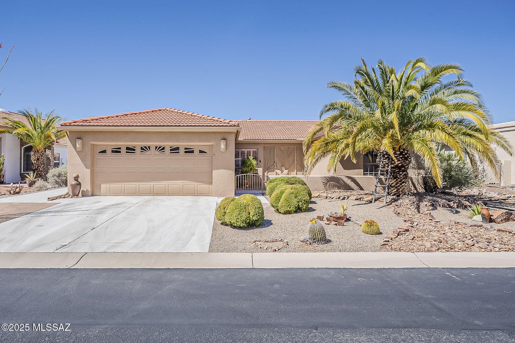 SaddleBrooke One SHAWNEE model, beautifully maintained home. New irrigation (2020) with WiFi-enabled Hydrawise timer (2024) for remote control . Inside, comfort and convenience with a smart Ecobee thermostat (2020) and a SimpliSafe security system (2021) -- both accessible remotely. No carpet - wood laminate & luxury vinyl. Guest room has ensuite bath. Exterior painted (2021). Backyard w/beautiful paddle cacti and private outdoor retreat in over-sized Arizona room. Cozy fireplace w/new gas log set (2024). Extended garage w/extra storage. This home combines modern technology, thoughtful landscaping, and classic charm -- unpack and enjoy!