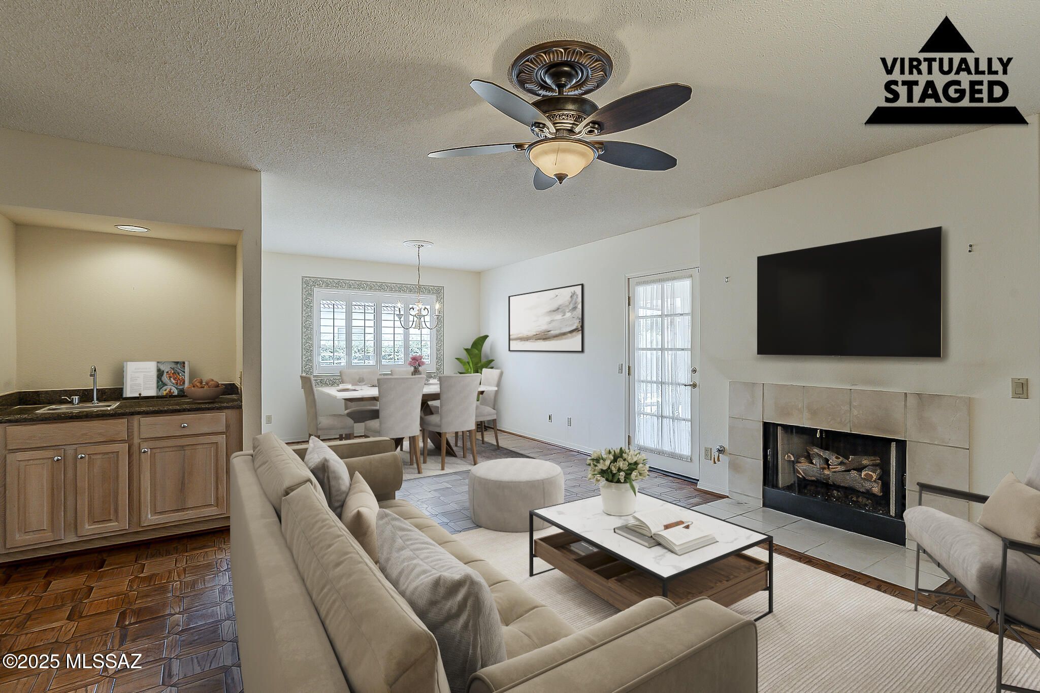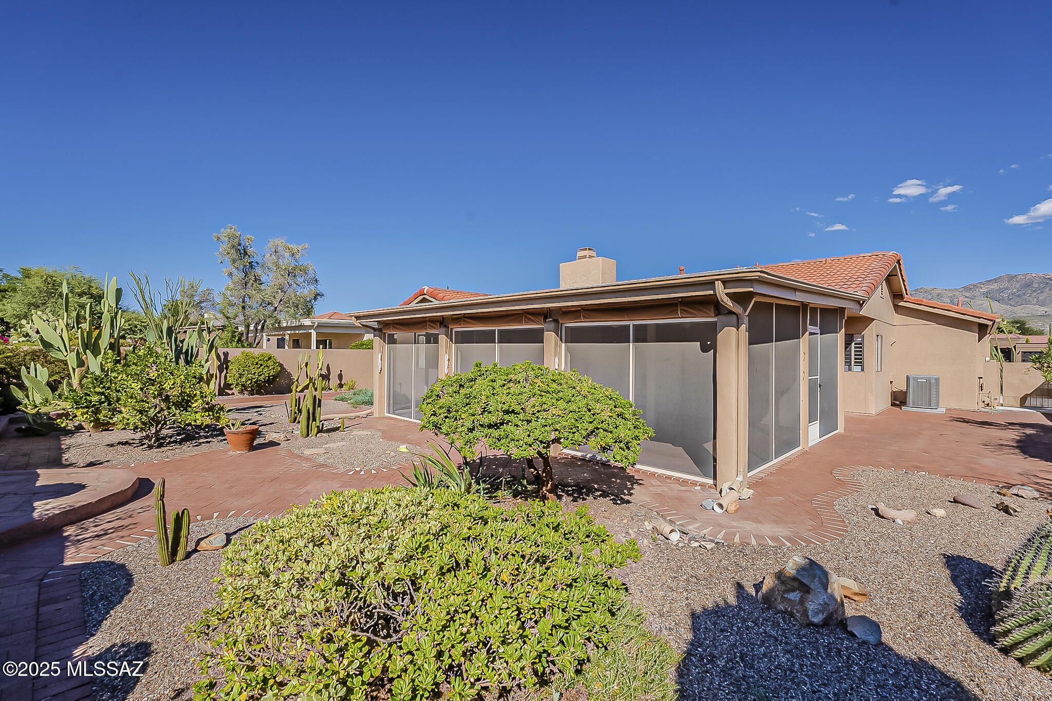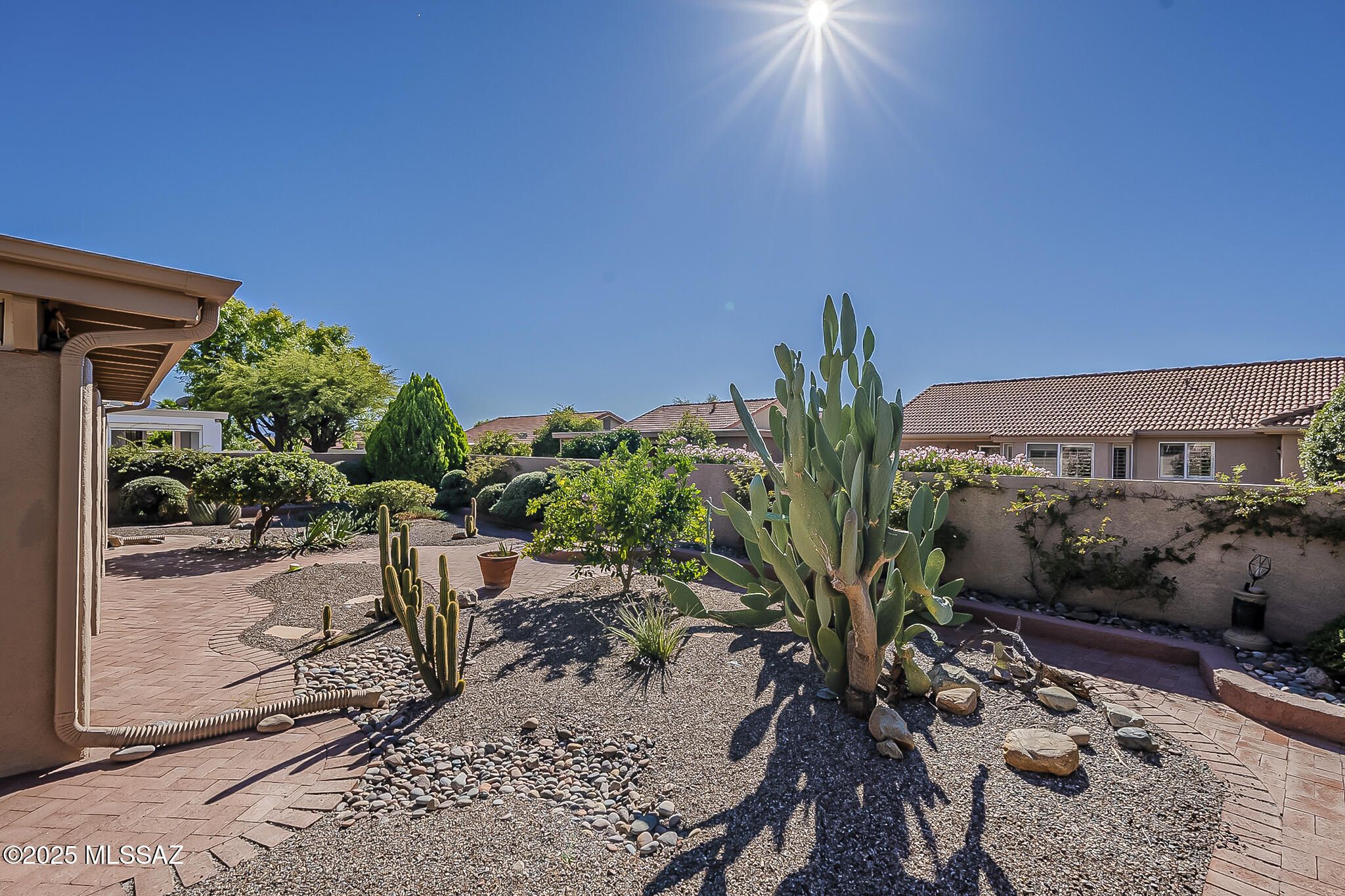 SaddleBrooke One SHAWNEE model, beautifully maintained home. New irrigation (2020) with WiFi-enabled Hydrawise timer (2024) for remote control . Inside, comfort and convenience with a smart Ecobee thermostat (2020) and a SimpliSafe security system (2021) -- both accessible remotely. No carpet - wood laminate & luxury vinyl. Guest room has ensuite bath. Exterior painted (2021). Backyard w/beautiful paddle cacti and private outdoor retreat in over-sized Arizona room. Cozy fireplace w/new gas log set (2024). Extended garage w/extra storage. This home combines modern technology, thoughtful landscaping, and classic charm -- unpack and enjoy!