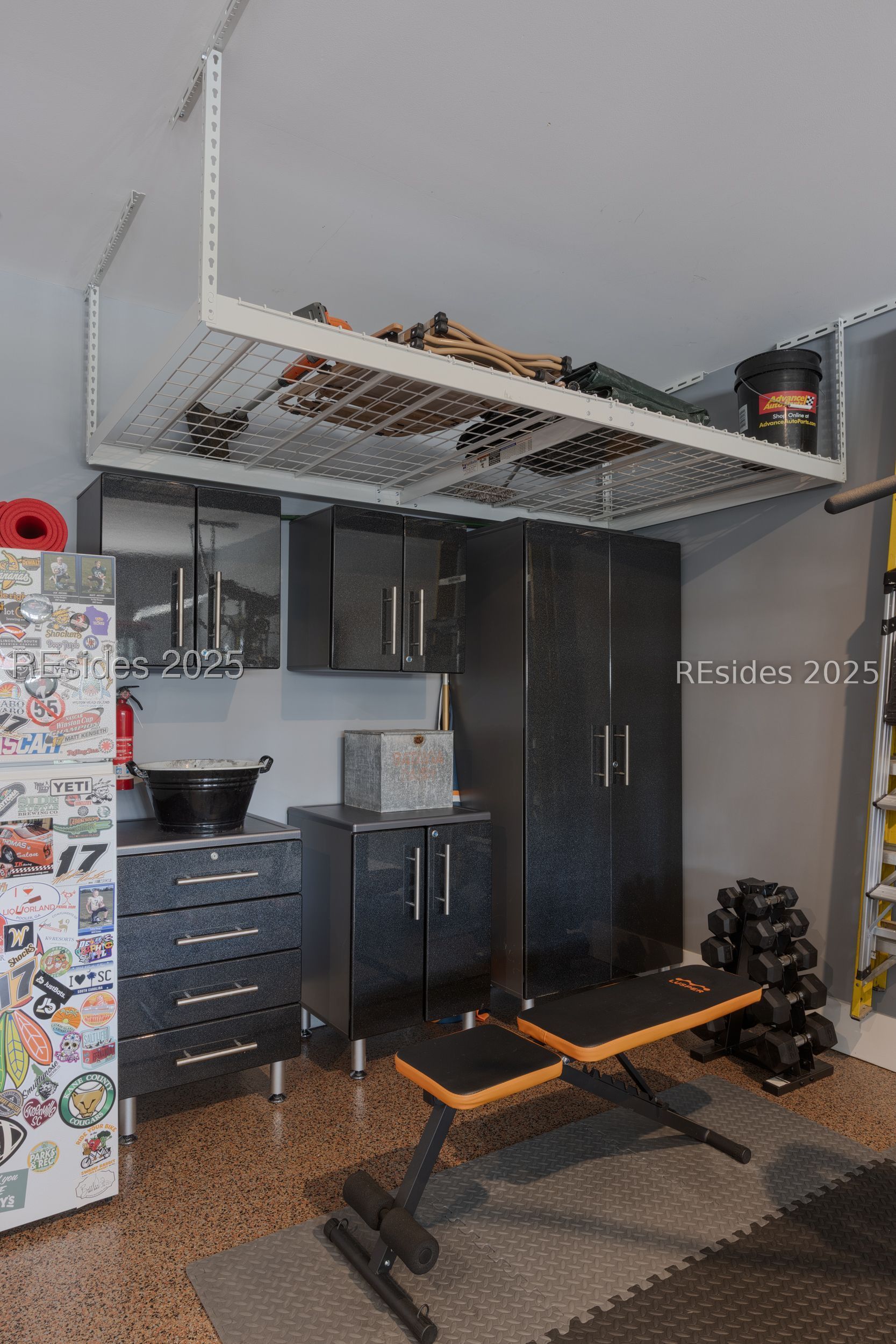 - Attic Access, Bookcases, Built-in Features, Tray Ceiling(s), Ceiling Fan(s), Carbon Monoxide Detector, Fireplace, Main Level Primary, Multiple Primary Bathrooms, New Paint, Smooth Ceilings, Separate Shower, Wired for Sound, Entrance Foyer, Loft, Pantry, Workshop