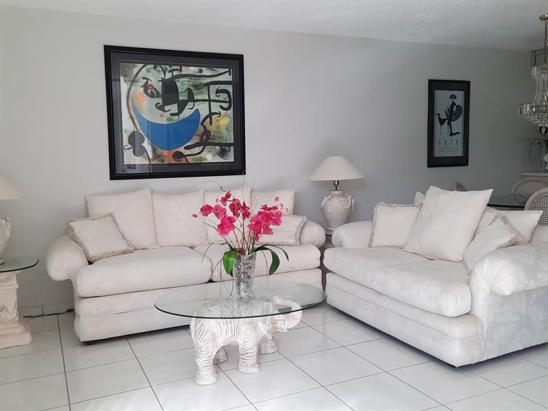 Priced to sell! Nice Furnished, move in ready, turn key, 2 bed convertible on second floor with lake and fountain view. All furniture and accessories included if desired. 18" ceramic tile floors throughout. Washer and dryer in unit. kitchen cabinets and appliances replaced and tiled backdrop and wall. 3 ceiling fans. Air conditioner has been replaced. located in quiet cul-de-sac. Paid up rec lease. Free golf , 14 tennis courts, pickle ball, bocce, car wash facility, 7 pools, theater, fitness center, restaurant , 24 hr security,. Assoc. represents housing for older persons authorized (HOPA).. *** IMPORTANT! See Broker Remarks below for occupancy qualifications.