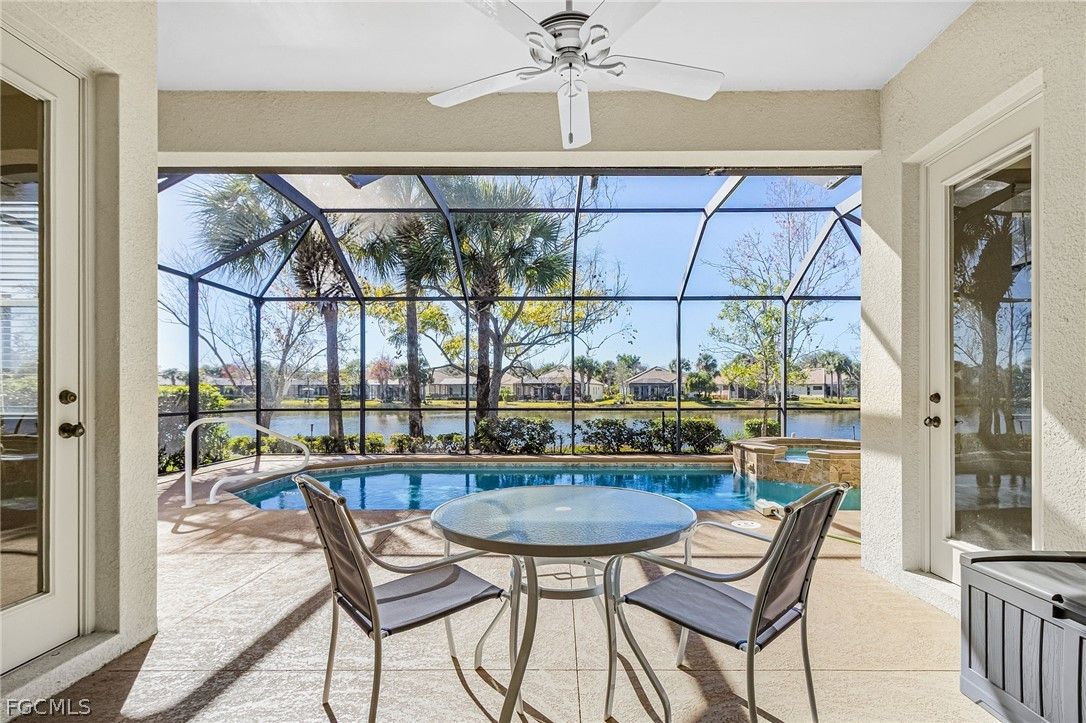 Ready to enjoy winter in your new beautifully furnished home with a pool and spa? The SW exposure is perfect for the bright sunny pool and glimpse of the sunset with a glass of wine. This home is move in ready with up to date furnishings turnkey - just bring your suitcase! This home has 3 bedrooms - two have private bathrooms ensuite and the 3rd bedroom with bath just outside the door. Kitchen, Dining and Great Room are all open in plan. There is a room that can be another dining room, office, or sitting area as owner has done. Wet bar with wine cooler makes a great space for entertaining. Exceptional floor plan with plenty of space. Priced below market value. When you purchase a home in Verandah you are getting a lifestyle that includes 9 miles of walking trails, two restaurants, fitness center, kayaks, tennis and pickle ball along with boccie ball and more! The dog park is within walking distance from this home as well. The home is priced below market value for a quick sale. Don't miss out.