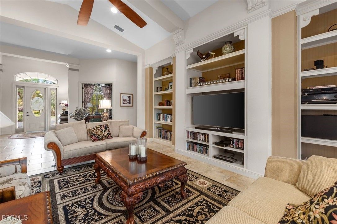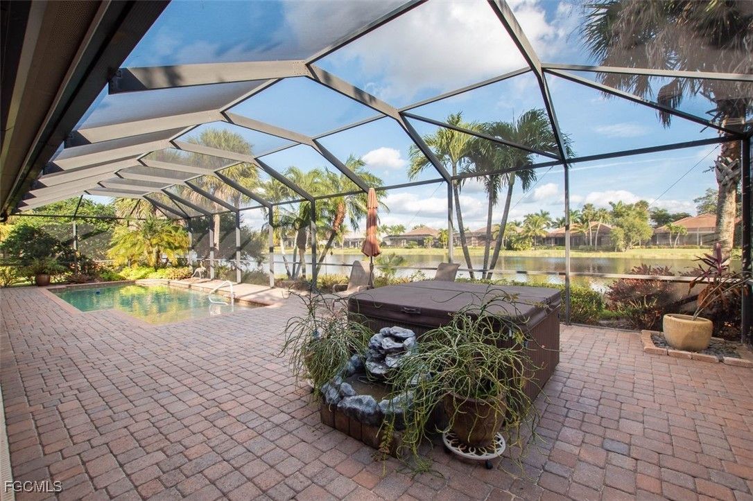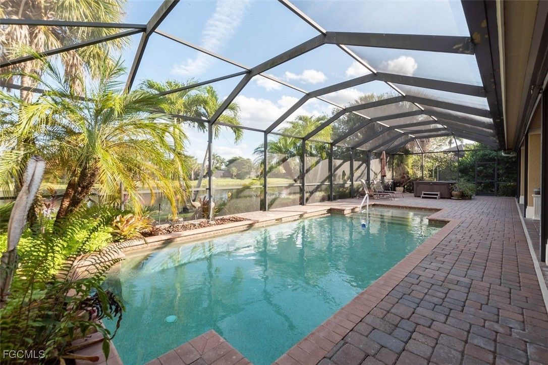 Location, amenities, and price combine to create exceptional value. This beautiful WYMAN STOKES CUSTOM POOL HOME has an attached 3-car garage is now available in the highly sought-after Mossy Oak neighborhood. Offered TURNKEY, the home features an open floor plan with high ceilings, custom lighting, granite countertops, window treatments, and natural gas appliances. Major systems have all been updated, including a NEW ROOF, HVAC, hot water heater, and pool equipment. The expansive lanai offers a gas fireplace, generous seating area, and electric hurricane shutters, all overlooking a tranquil freshwater lake with a desirable eastern exposure. Residents enjoy a resort-style lifestyle with two 18-hole championship golf courses, tennis courts, a state-of-the-art fitness center, community pool, pickleball and bocce courts, plus a dog park. Outdoor enthusiasts will appreciate kayaking on the Orange River and exploring over 9 miles of walking and biking trails. Conveniently located near Downtown Fort Myers, the Caloosahatchee River, and Fort Myers and Punta Gorda airports. Move-in ready—just bring your toothbrush.