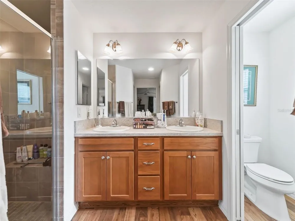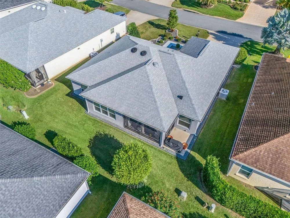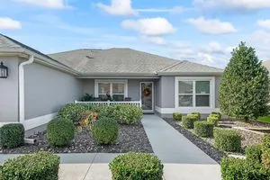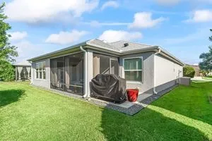 Sitting stately in the Village of Osceola Hills at Soaring Eagle Preserve! This all electric home comes with a Solar tube in the kitchen that offers great natural lighting. The kitchen is complimented by a breakfast bar center island with roll out shelves in the bottom cabinetry and a lazy susan corner cabinet. A wall pantry adds lots of room for every kitchen's needs. The Appliances are like new because they've hardly been used and have been meticulously cared for. Luxury Vinyl Plank flooring is rich with color and sets the character of the open living area to compliment the expandable dining area. the dining area is open to the 4 season Florida room with high end windows and a door to the screened in lanai. The laundry room includes the washer & dryer with a stand alone utility sink plus storage cupboards. The primary bedroom has plush carpeting and a big walk in double closets with organizers. The ensuite bathroom has handicap accessible bars and tiled shower with shaving seat plus there's his and her's sinks which completes the upscale customization design in this home. The 2 guest bedrooms are separated by a guest bath and more linen and utility storage. For the most picky buyers, there are smooth ceilings throughout this Quailty home. The living room has a vaulted ceiling and the double windows look out to a covered rocking chair porch and landscaped yard. The block and stucco exterior is alive with character. The new Energy Star roof (with added insulation) was installed in 2020 because of defective underlayment from the original roofer, who was not used to install the new roof. Besides the solid metal overhead garage door, the owner added a new electric overhead screen door with optimal electric door opener, new in 2024 (comes with a transfeable 10 year warranty). This home is protected by an Omni Shield Fire and lightening detection system which is an alert system & includes an added alert app. on your the phone with an alarm alert in the home. Omni charges No monthly fee for the system. Buyer should call Omni for details of the future. For heavy sleepers, the system includes a system in the bedroom that alerts a heavy sleeper to wake up. The system also includes an alert system in the attic for smoke and fire before it ever reaches the interior of the home. Also included is a C O system. The Custom landscaped yard is sprinklered front and back. Lastly there's a patio off the screened lanai for grilling.