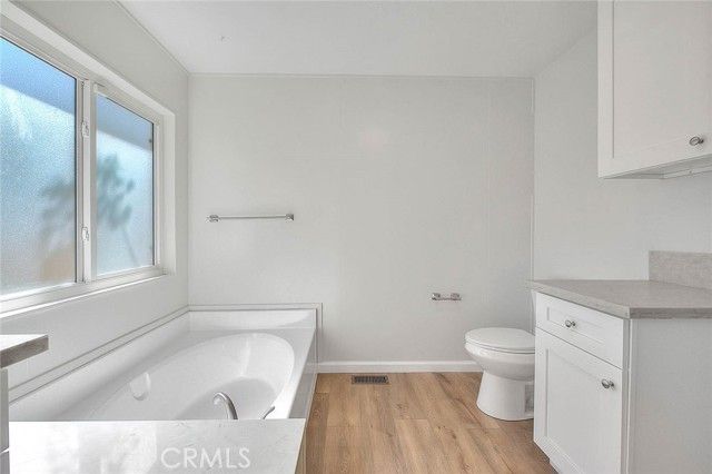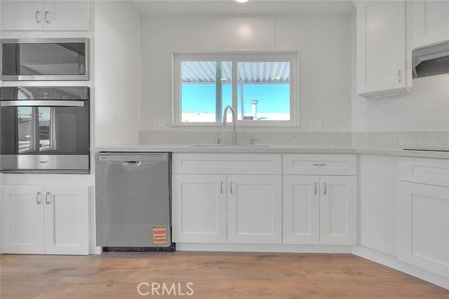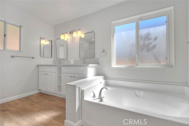 Beautifully remodeled home located in the highly desirable Golf Knolls 55+ senior community! This spacious 2 bedroom, 2 bath home offers approximately 1,908 sq. ft. of upgraded living space with a modern, open floor plan. Inside features new vinyl plank flooring throughout, fresh interior and exterior paint, recessed lighting, updated fixtures, switches, plugs, and baseboards. The fully updated kitchen includes white shaker cabinets, quartz countertops, stainless steel Whirlpool appliances, and abundant storage. The large family room offers vaulted ceilings, a modern tiled fireplace, and plenty of natural light. The expansive primary suite includes his-and-hers closets and a beautifully renovated bathroom with dual vanities, a new walk-in shower, and a separate soaking tub. The secondary bedroom is generously sized with an updated full bath nearby. Additional features include a separate laundry room with new cabinetry, a long covered carport, a front porch, and low-maintenance landscaping. Senior community has fantastic amenities including a swimming pool, spa, barbecue area, dog park, gym/exercise room, clubhouse, and recreation room. Conveniently close to shopping, restaurants, medical services, and freeway access. This turnkey home is move-in ready and shows like a model! Buyer to verify all information.