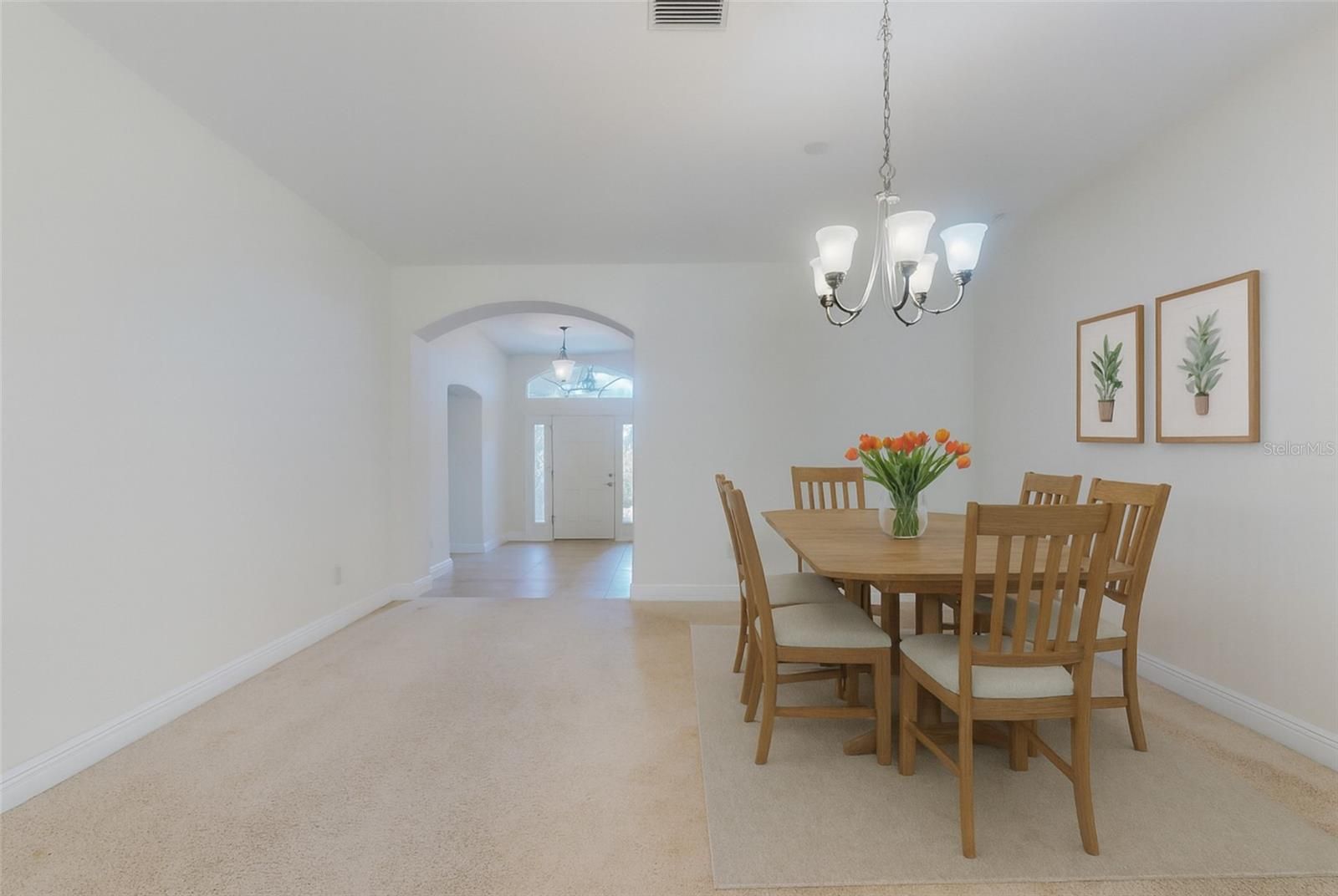One or more photo(s) has been virtually staged. PRICE REDUCED. Lovely 3/2 Lantana model located in the desirable Village of Hillsborough, just minutes from Brownwood Paddock Square with shopping, dining, and nightly entertainment. This home offers an expansive and private backyard and a rare expanded tandem garage accommodating 2 cars and 2 golf carts. HOME UPDATE NOTE: The property is currently undergoing improvements and will feature all-new luxury vinyl plank flooring throughout and fresh interior paint in every room, providing a clean, updated, move-in-ready interior for the new owner. The open floor plan includes a bright kitchen with stainless-steel appliances, electric cooktop, wall oven, and a double-door pantry. Washer and dryer (only a few years old) are included. The primary suite offers dual sinks, a Roman shower, and a spacious walk-in closet. The large lanai with stack-back sliding doors overlooks the private backyard. Conveniently located near Hillsborough, Bradenton, and Manatee Villages; Eisenhower Regional Recreation Center; several executive golf courses; and Colony Shopping Plaza. This well-situated Lantana model presents an excellent opportunity to enjoy an updated home in a prime Villages location. Schedule your private showing today.