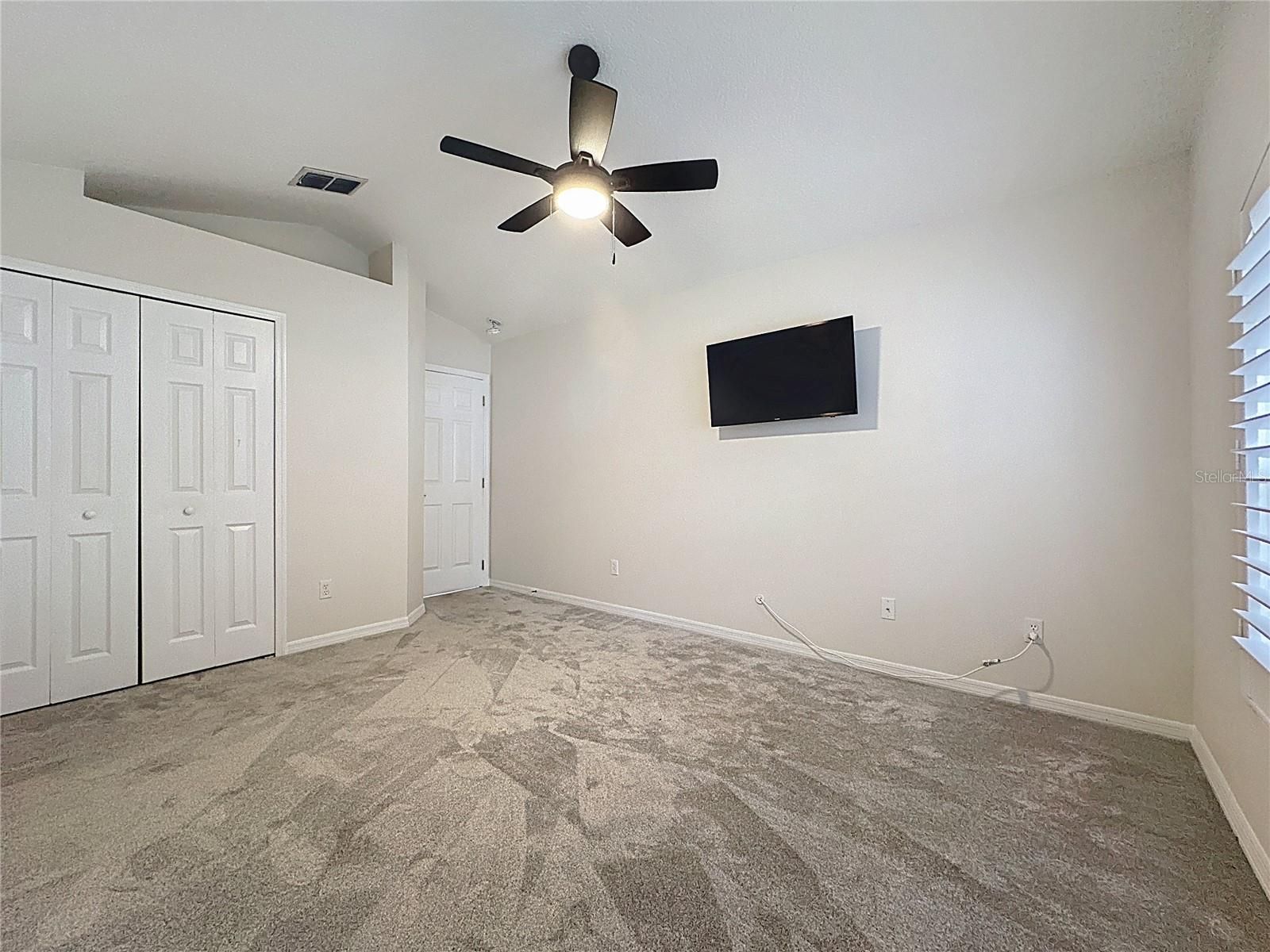 - Cathedral Ceiling(s), Ceiling Fan(s), Eat-in Kitchen, Kitchen/Family Room Combo, L-Shaped Dining Room, Open Floorplan, Main Level Primary, Split Bedrooms, Thermostat, Walk-In Closet(s), Window Treatments