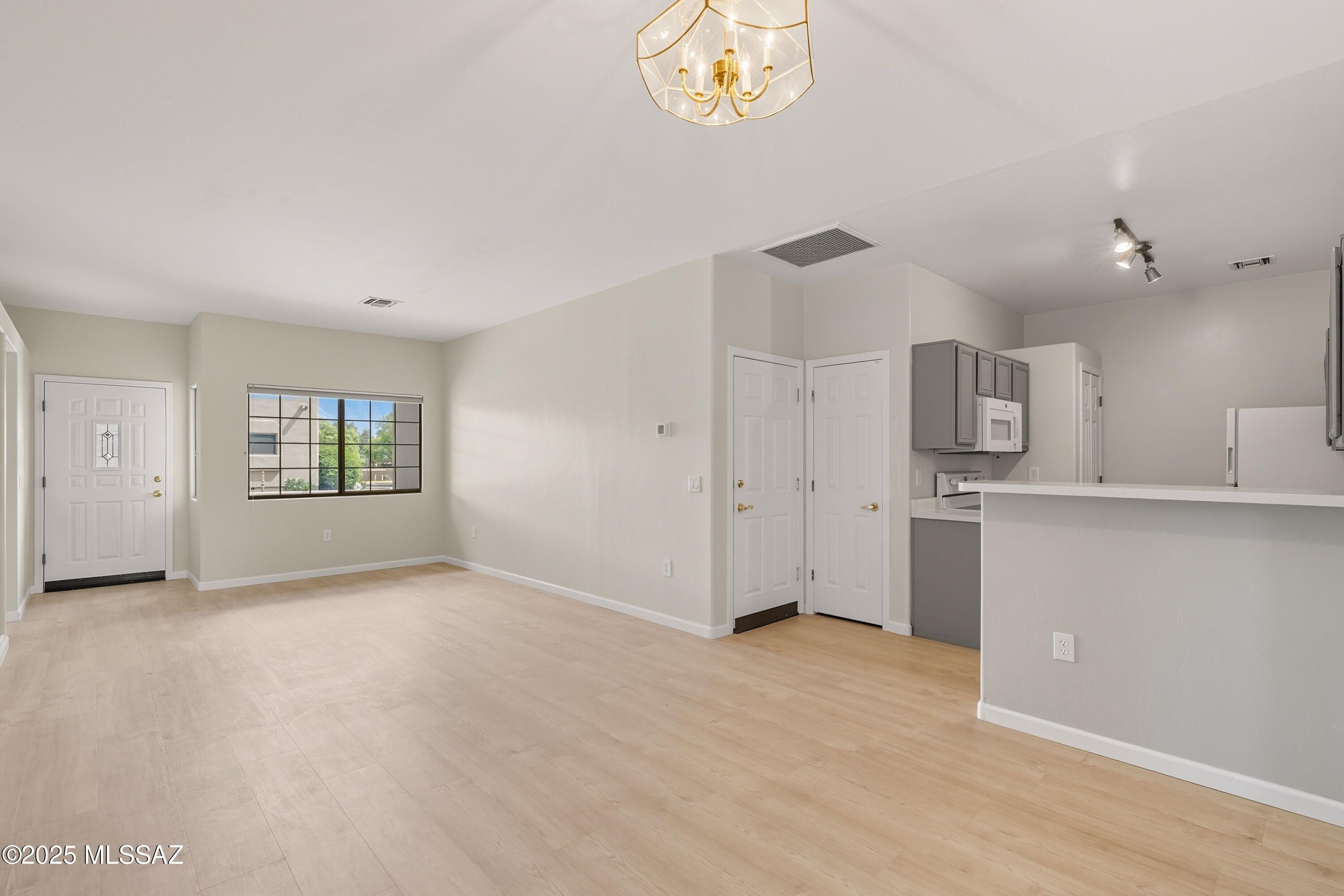 Enjoy carefree, low maintenance living in this freshly updated townhome in The Springs. Just steps away from the GVR center, this efficient 960 sq.ft. home offers 2 BR, 1.5 BA and 1 car garage. New interior paint and all new luxury vinyl plank floors throughout. Main bedroom has en suite bath. Guest room or optional den, plus powder room. Kitchen has breakfast bar and pantry closet. Low care yards front and back, with covered rear patio. Ideal for full or part-time living, or as an investment property. The nearby GVR Center offers an abundance of amenities, incl. pool, spa, fitness center, social clubs, and clay, glass arts, photography, and computer studios. Plus, access to The Springs' 25 acre park with walking trail that connects to the Anza Trail for biking or hiking.