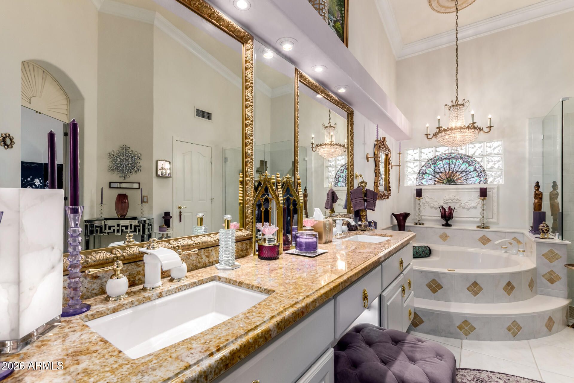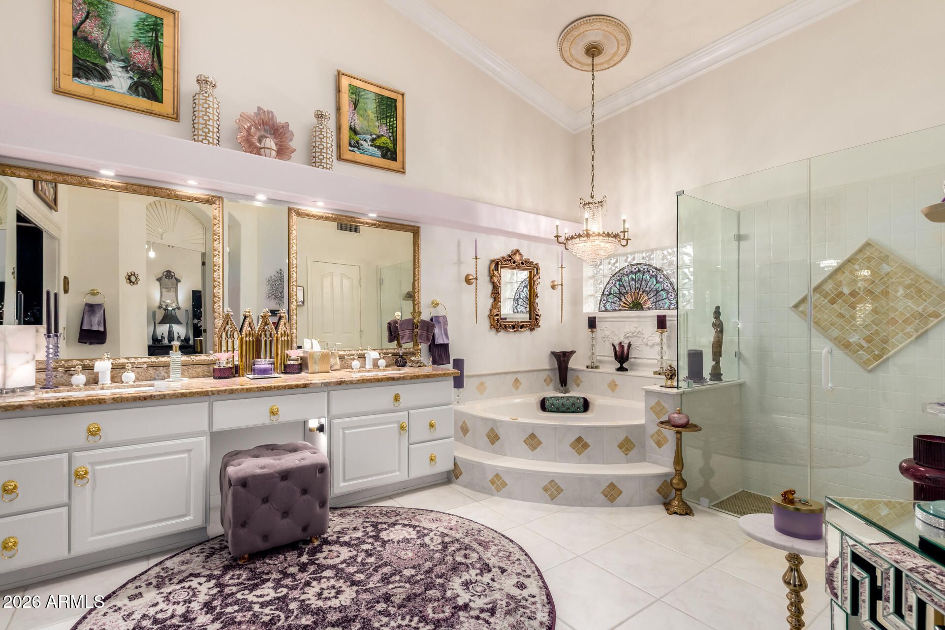 - Quartz Countertops, Double Vanity, Eat-in Kitchen, 9+ Flat Ceilings, No Interior Steps, Vaulted Ceiling(s), Wet Bar, Full Bth Master Bdrm, Separate Shwr & Tub, Tub with Jets