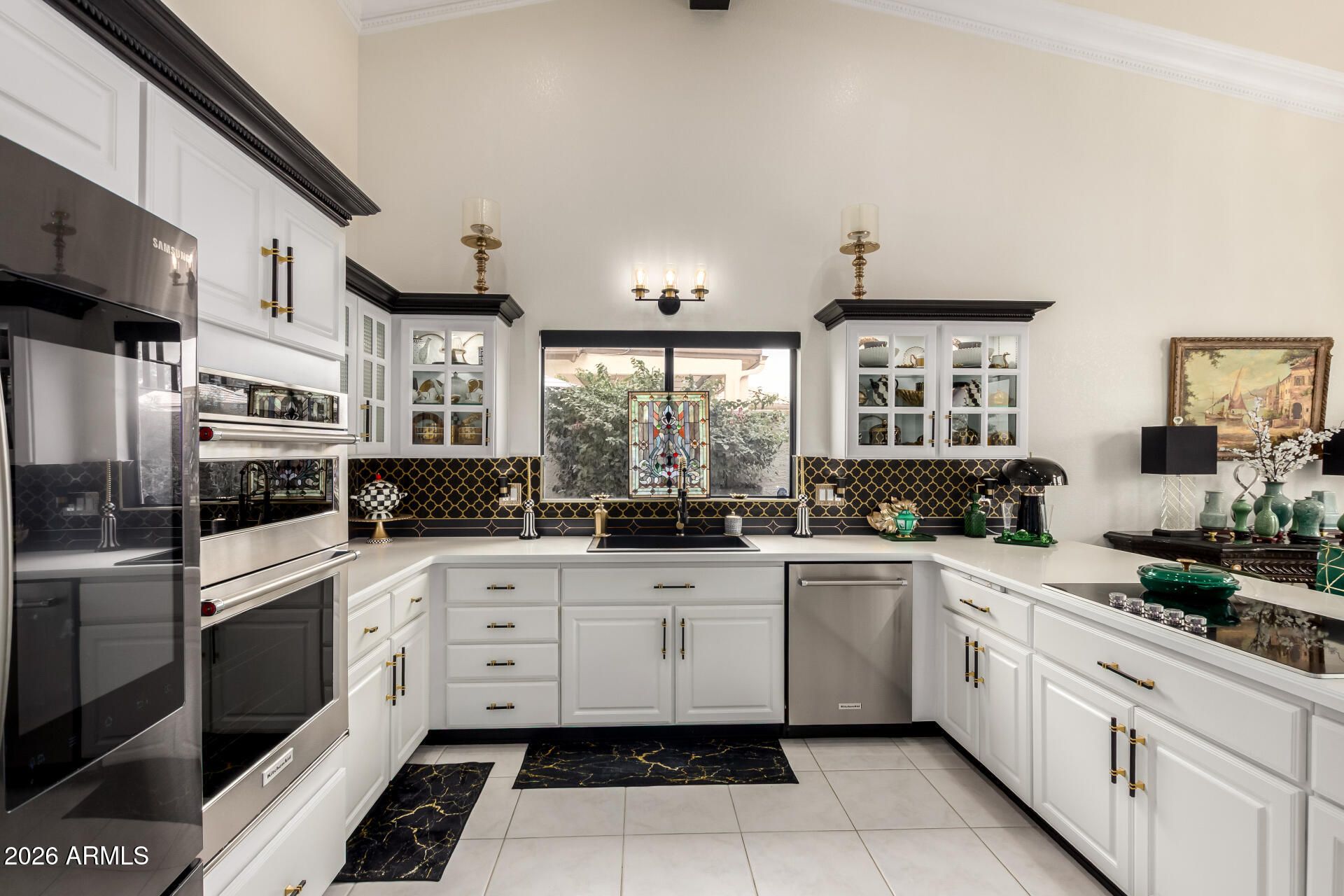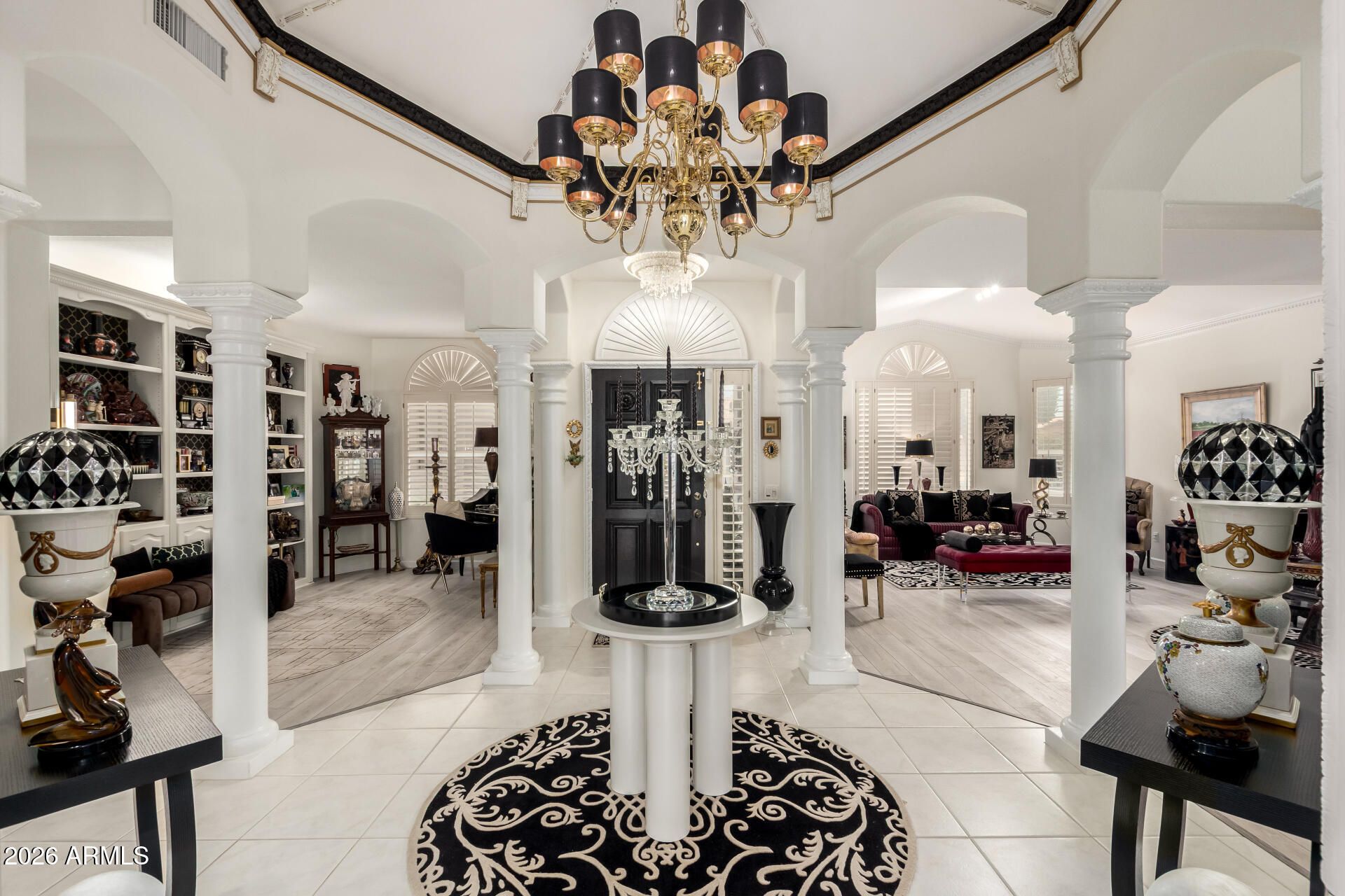 Opulent describes the luxurious design by a professional interior designer. Molding encases the doors and windows with crown molding framing every room. New sink and tub fixtures enhance the kitchen and baths, including a smart toilet! Anderson double doors and windows look out over the back yard with remote blinds included. The eat-in kitchen has new built-in appliances, ample counter space, & plenty of cabinets. A fabulous built in closet system and jewelry island make the master closet a dream, especially when couples with the seated vanity area in the bathroom. The master bedroom even has a sitting area with a gas fireplace. Out side is a heated plunge pool, kitchen, firepit and even an outdoor shower! A koi pond adds a tropical flare. Even the light fixtures throughout the home are new! Must see to appreciate the meticulous detail in this home!