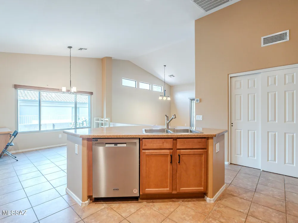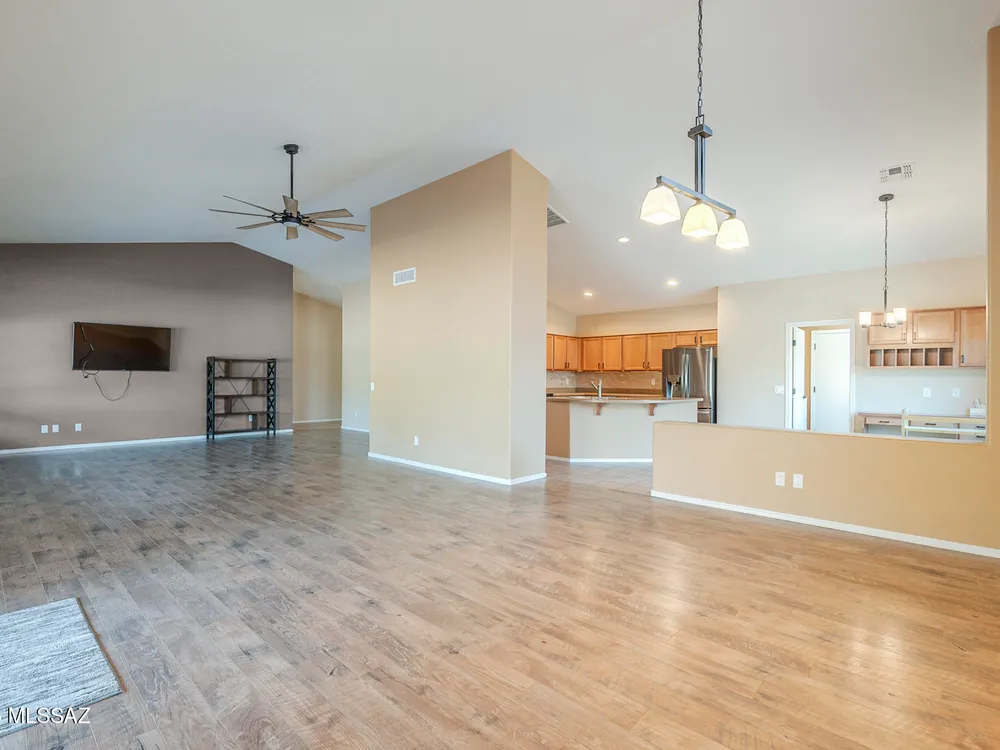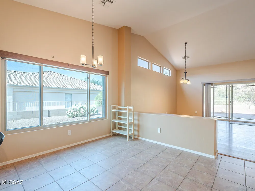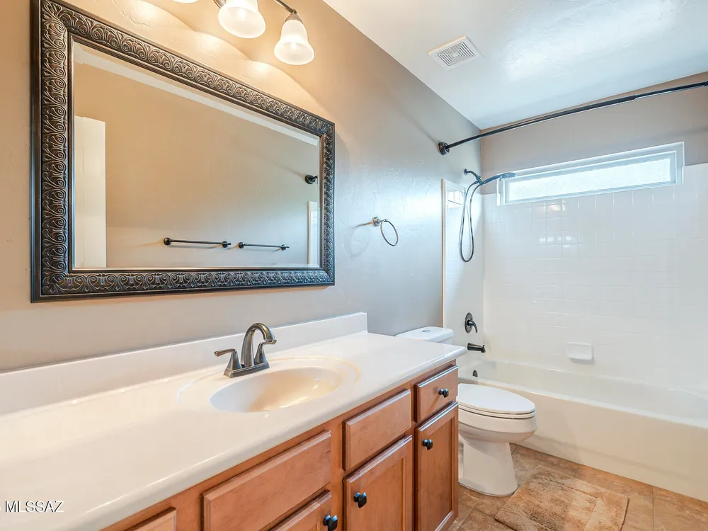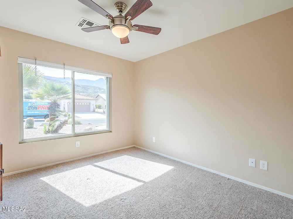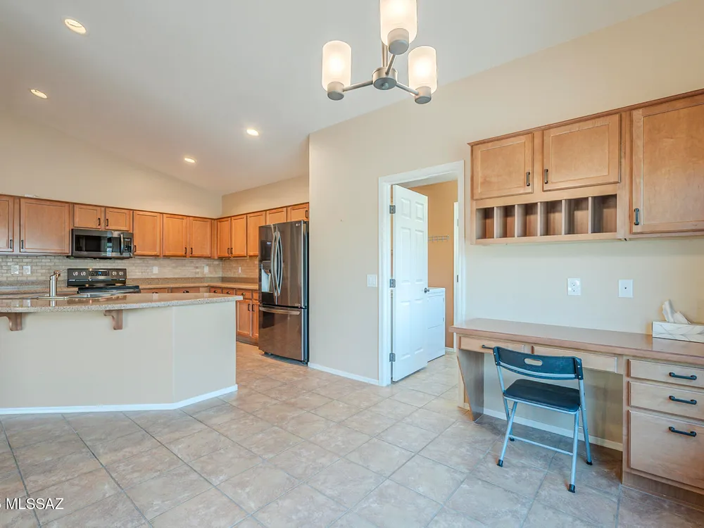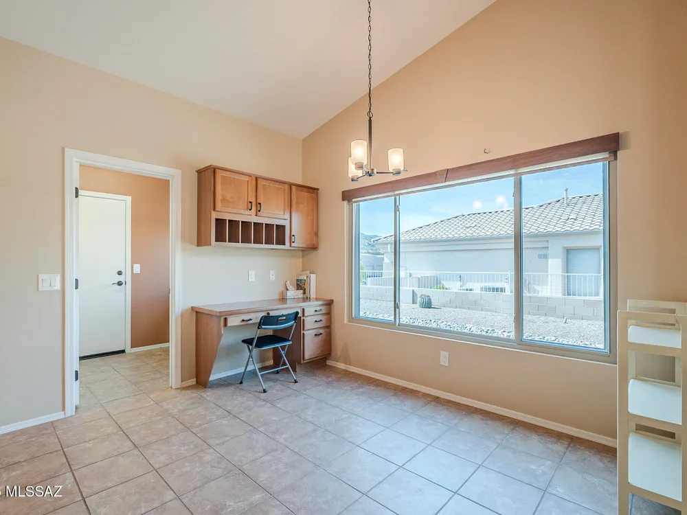 Stylish Montana model blends comfort & charm in Saddlebrooke's scenic enclave. Spacious 3BR/2BA + den features vaulted ceilings, quartz counters, stainless appliances & large picturesque windows in great room. Kitchen boasts beautiful cabinetry, backsplash ('23); island & breakfast nook & new Maytag dishwasher ('23) --ideal for entertaining. Primary suite offers dual vanities, walk-in closet & updated fixtures. Backyard backs to mountainy desert area & has a long covered patio, new fence with 3 gates ('23), low-care landscaping & paver walkways. New roof w/ 50-yr underlayment ('25). Owner carryback available--don't miss this move-in ready gem! Now Get to know the SaddleBrooke Lifestyle: Welcome to SaddleBrooke One an established, beautifully maintained neighborhood nestled in the