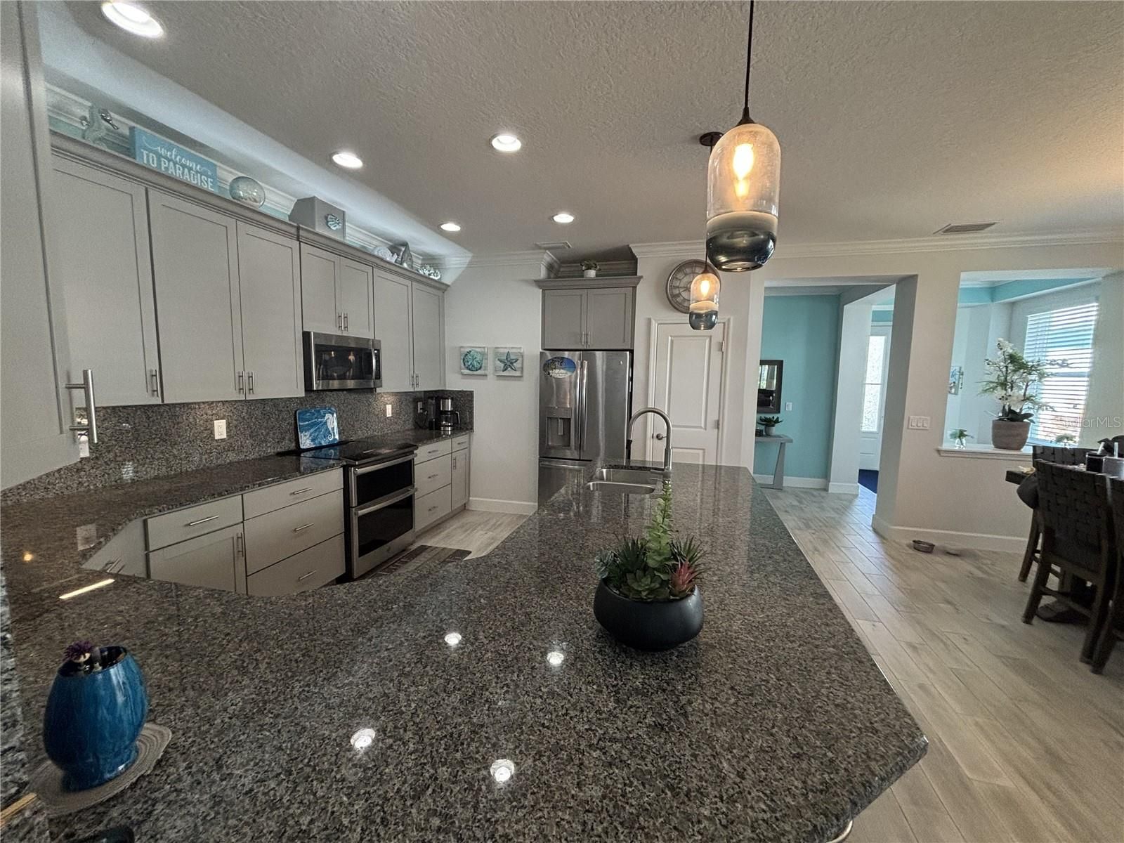 Beautiful furnished Villa for sale located in Latitude Margaritaville Community, Phase 1. Wood plank ceramic tile, crown molding and five in inch Baseboard throughout the entire home. Ceiling Fan(s), Coffered Ceilings in Great Room and Master Suite. Primary Bathroom - Large Shower No Tub. Smart Home Features, Split Bedrooms, large closet. Power interior sliding glass door shade. 2 bedrooms, 2 bathrooms, a Den/flex room, spacious kitchen with a pantry and an extended screened in Lanai with 20/20 mesh screens and 2 car garage. Located on a scenic wooded lot in a quiet cul-de-sac in Daytona Beach, Volusia County with convenient access to the beaches, dining, and shopping. Private Clubhouse located on the Beach with a pool. 3 pools in the community, (1 Large Resort Paradise Pool, 1 Sports Pool, 1 Indoor Pool, Clubhouse, Barbecue, Fitness Center with indoor pool and sauna. Gated Jogging Path, Pickleball, Tennis Court(s), Dog Park, Movie Theatre, Town Square with live entertainment. HMO include all amenities, lawn care and all external care.