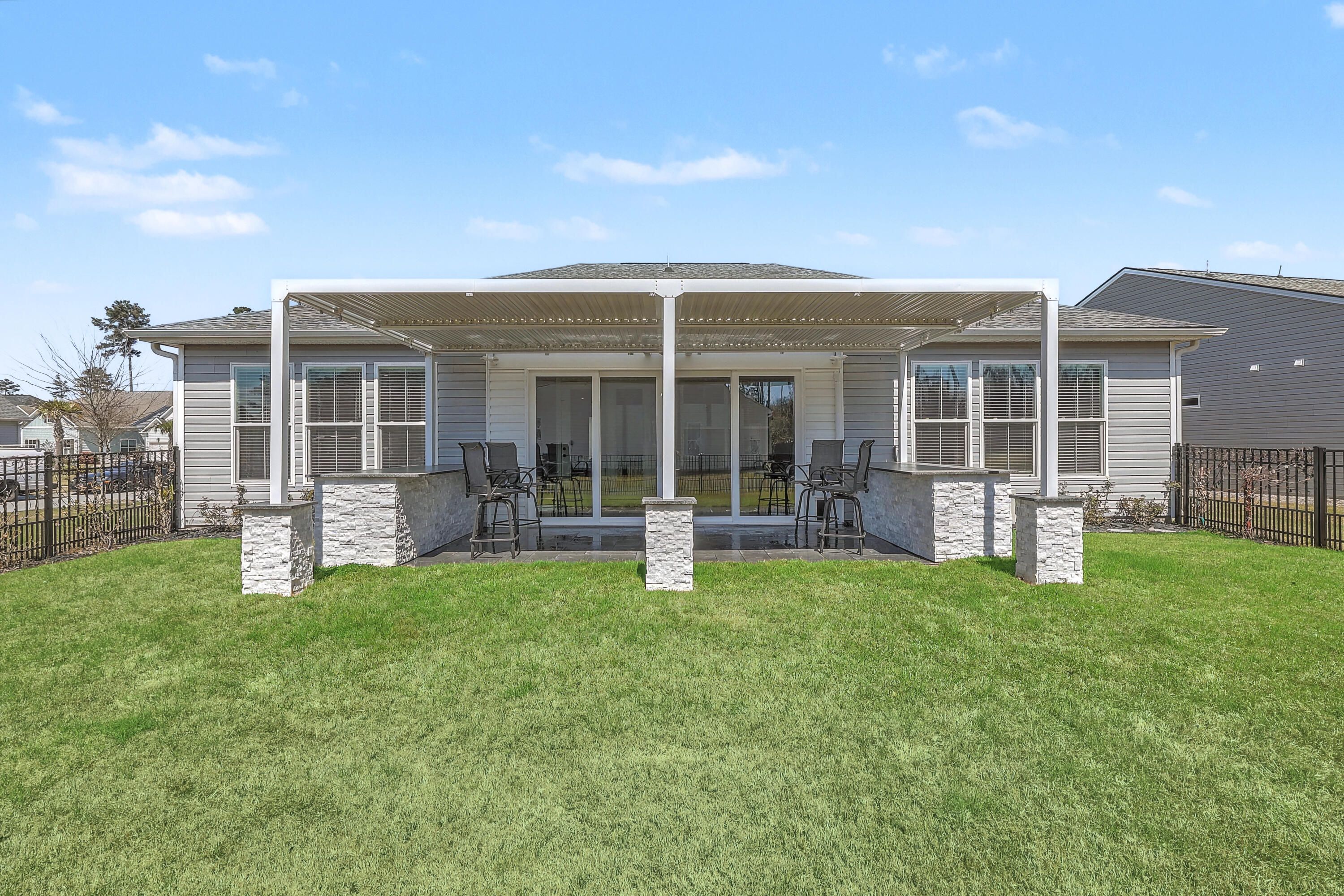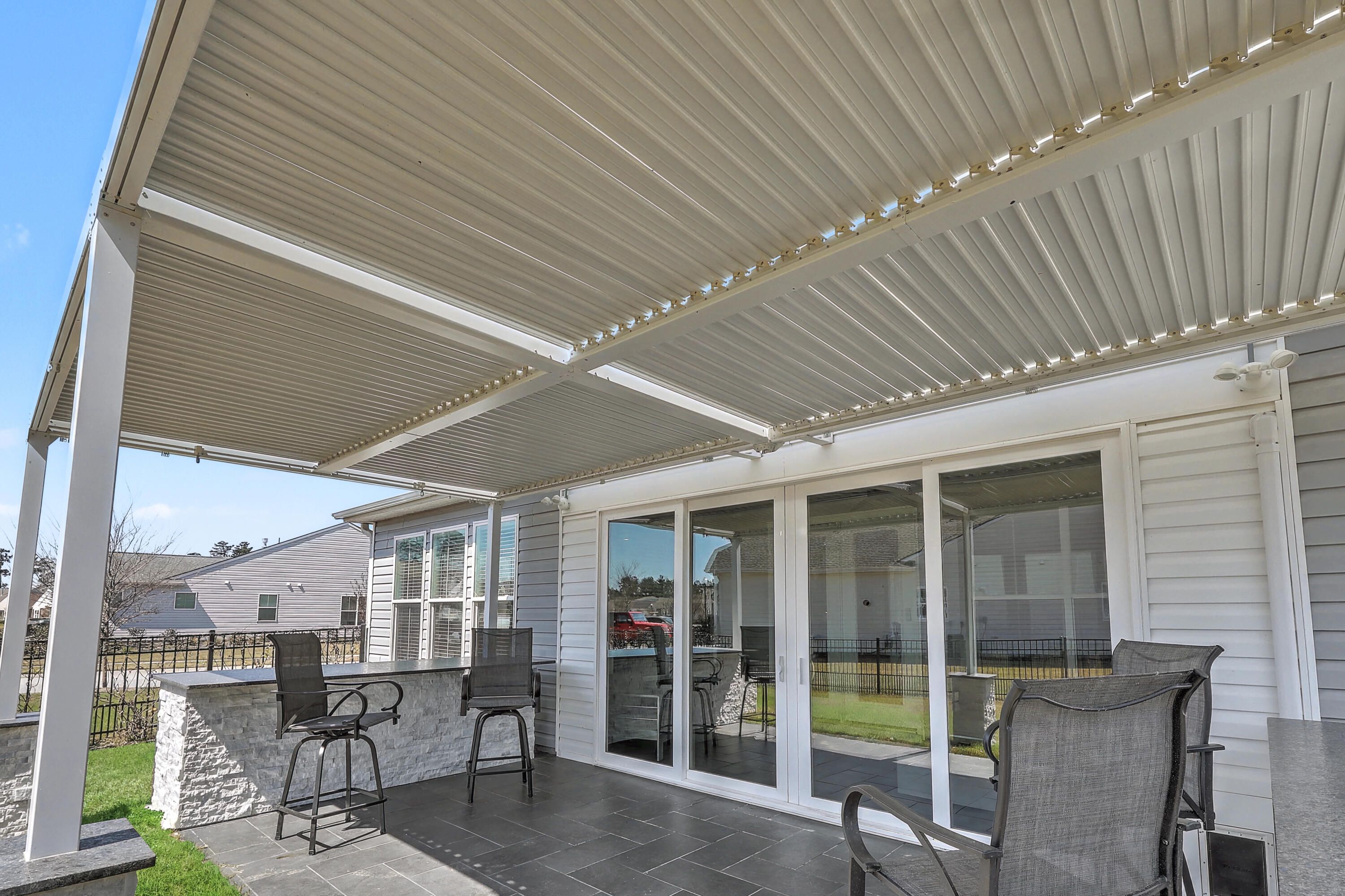 Highly sought-after Porto plan in Four Seasons with a 3-car extended garage on a private 1/4-acre corner lot. This one-level home offers 3 bedrooms plus a dedicated home office, all with NO CARPET. The gourmet kitchen features quartz countertops, GE Cafe appliances with a 5-burner gas cooktop and double ovens, custom cabinetry, and a spacious island. Curated details include a tile feature wall, wine & beverage bar, remodeled guest bath, designer laundry room and more. The enclosed sunroom with its own HVAC allows year-round enjoyment, while the outdoor space boasts a tiled patio and adjustable pergola with wooded views. A widened driveway enhances both function and curb appeal--completing this stunning home.Designed for effortless living and entertaining, this Porto floorplan offers a seamless open layout connecting the main living areas to an enclosed sunroom with a dramatic 4-panel center-opening slider--creating a true indoor-outdoor experience that is climate controlled. A tucked-away coffee bar/valet just off the garage entry provides a functional drop zone while maintaining privacy from the owner's suite. The laundry room is thoughtfully elevated with raised washer/dryer platforms, built-in cabinetry, countertop space, and a stainless steel sink. Outdoor living shines with a tiled patio, two oversized custom BBQ serving countertops, and an adjustable louvered pergola for sun or shade. The fenced yard includes puppy pickets and jasmine landscaping for added privacy. Additional upgrades include an epoxy-coated extended 3-car garage with added electrical, tiled front exterior entry, updated kitchen backsplash, and a beautifully remodeled powder room that is simply stunning. This is a rare opportunity to own a truly upgraded, move-in ready Porto in one of Charleston's premier 55+ gated communities.