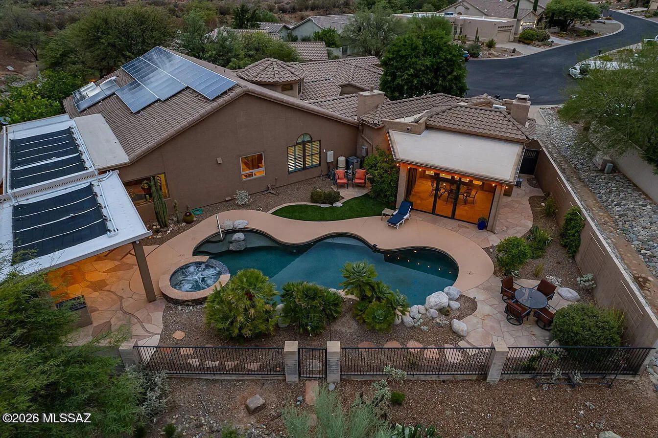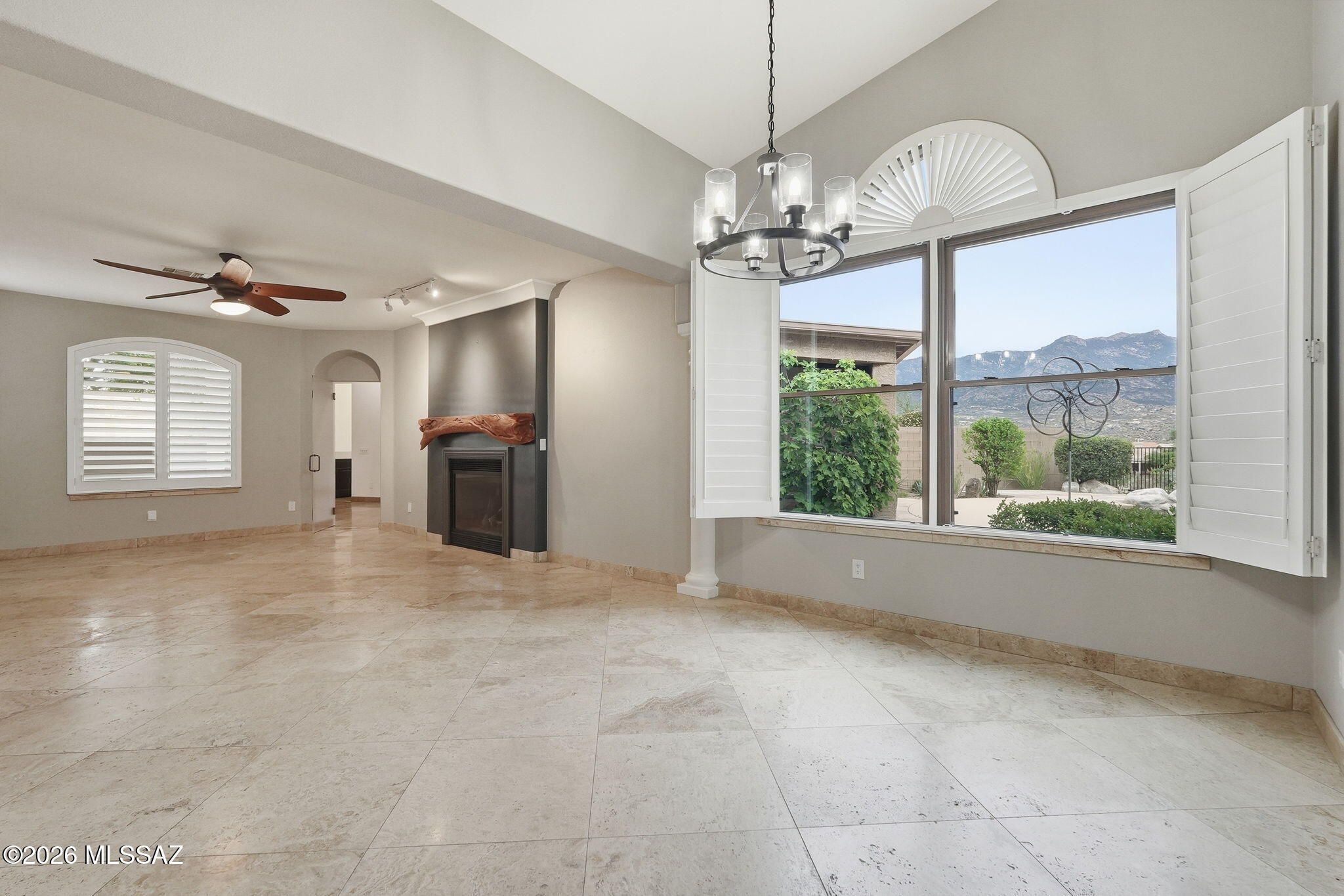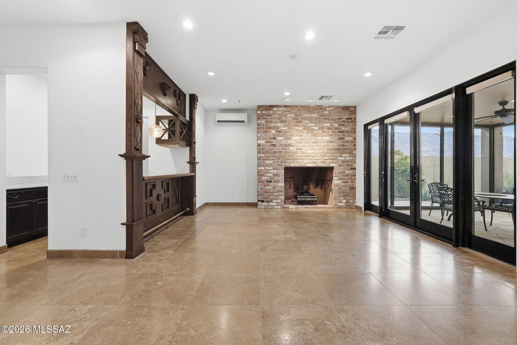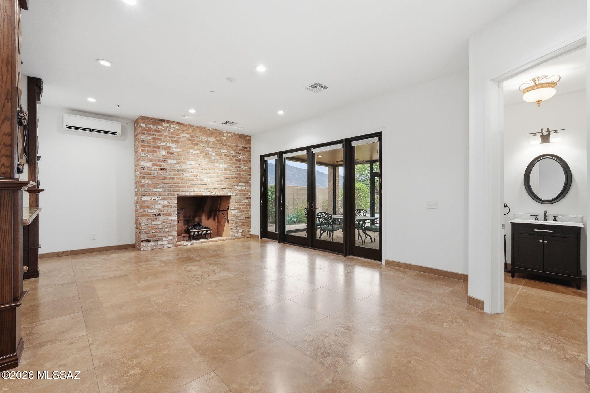 Spectacular property-an entertainer's dream and true desert oasis. This 2-bedroom, 2 full/2 half bath home features a gourmet kitchen with dual Wolf ovens, Wolf gas cooktop, granite countertops, Miele dishwasher, SubZero refrigerator/freezer, wine cooler, Scotsman icemaker, and venting hood with warming lamps and racks. The primary suite offers a see-through fireplace to the patio, French doors, steam shower, heat lamps, skylight, and heated towel rack. The expansive rec room includes billiards space, wet bar, private bath, and Arizona room, plus a fireplace with floor-to-ceiling brick facade. Library, office, and laundry/hobby room and flexibility. Outdoors, enjoy a saltwater solar-heated pool, spa, screened patio, outdoor kitchen with built-in BBQ, and mountain views. Welcome home!