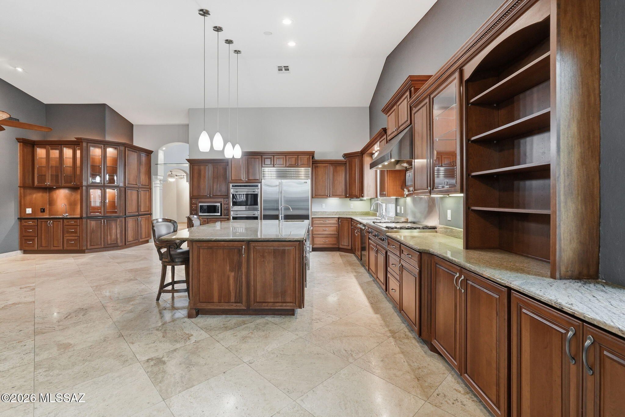 - Dishwasher, Exhaust Fan, Gas Cooktop, Gas Oven, Microwave, Refrigerator, Warming Drawer, Wine Cooler