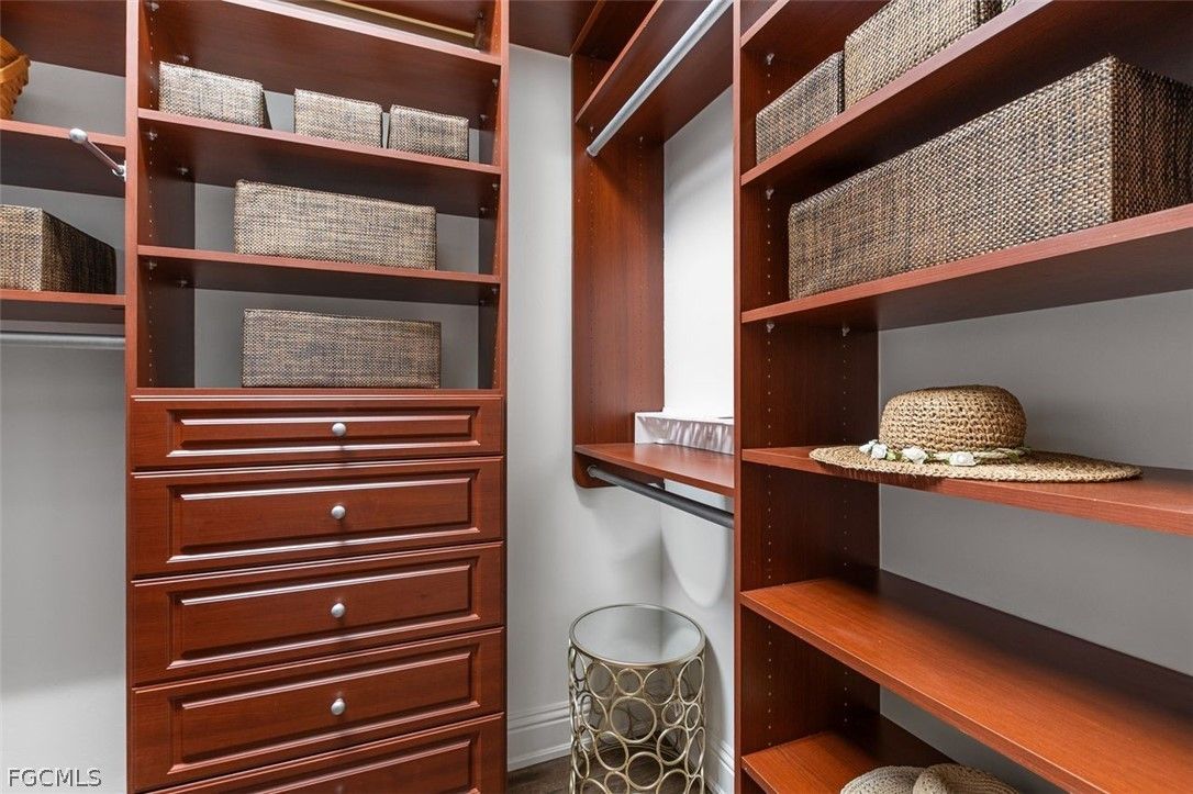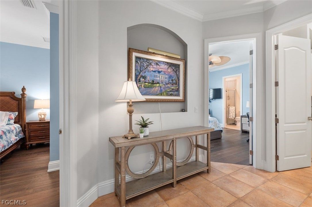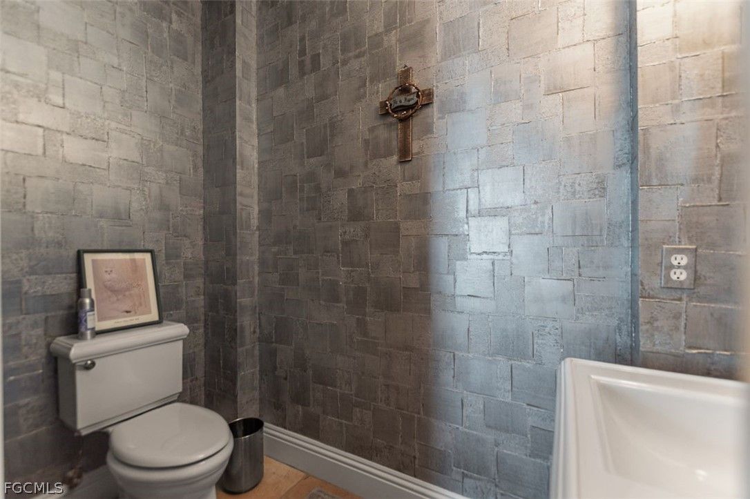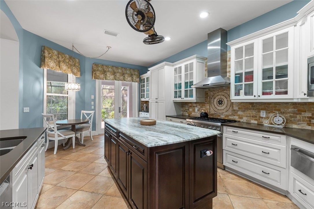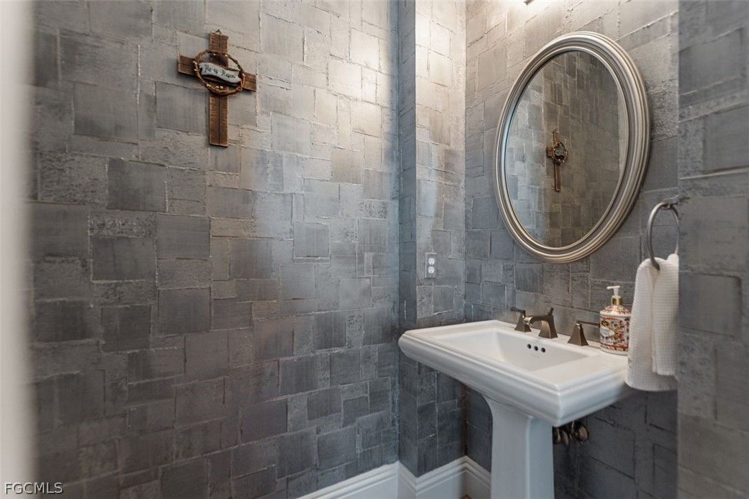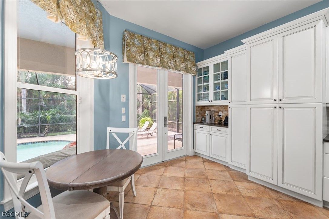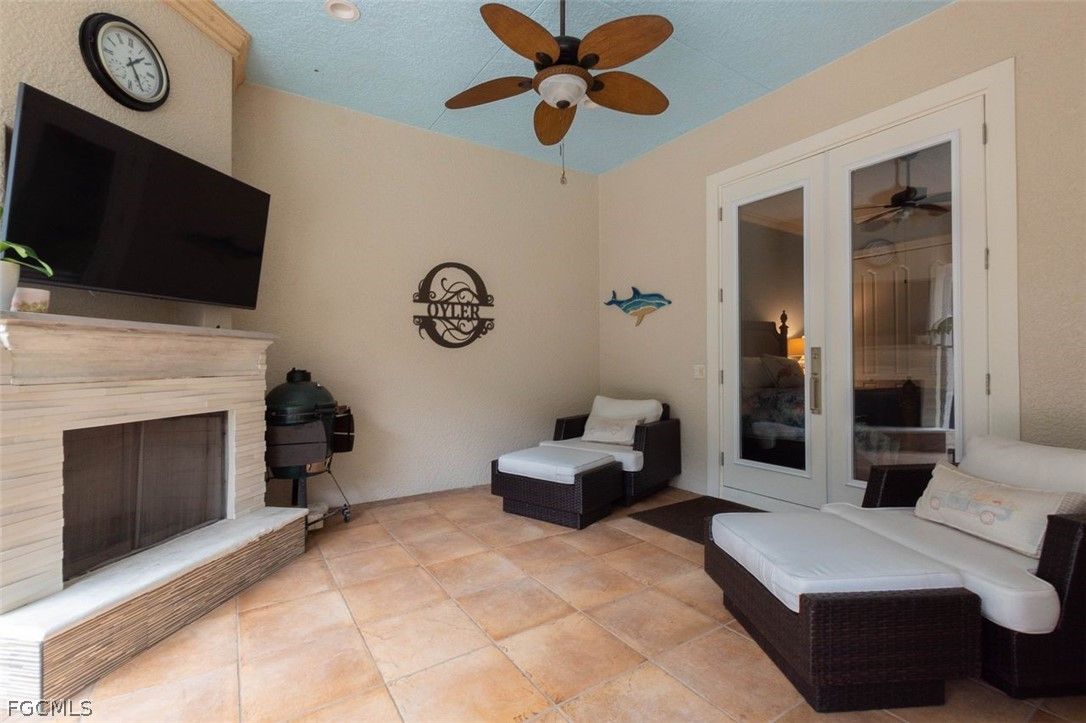 The 3 bedroom 3.5 bathroom home has a beautiful front elevation with maintained mature landscaping, professional landscape lights, an extra large paver brick driveway. It features a NEWER ROOF, a 3+car AIR CONDITIONED garage with custom garage doors, a NEW HVAC system and a gorgeous water feature at the entrance. Built on an elevated stem wall to spot light the front elevation of the house also reduces the risk of the unlikely possibility of flooding. Enter the private lanai through a host of french doors where you'll enjoy a heated salt water pool/hot tub, an OUTDOOR GAS FIREPLACE, lots of outdoor space under roof and a soothing water feature. The interior has an INTERIOR GAS FIREPLACE, tile or wood floors (no carpet), duette shades, crown molding and so much more. The kitchen is big and bright with finer stainless steel THERMIDOR appliances, an eat-in kitchen, extra storage, reverse osmosis and granite counters. Residents enjoy a resort-style lifestyle with two 18-hole championship golf courses, tennis courts, a state-of-the-art fitness center, community pool, pickleball and bocce courts, plus a dog park. Outdoor enthusiasts will appreciate kayaking on the Orange River and exploring over 9 miles of walking and biking trails. Conveniently located near Downtown Fort Myers, the Caloosahatchee River, and Fort Myers and Punta Gorda airports.