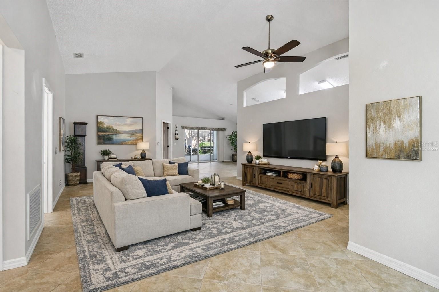 Welcome to your dream retirement home—where every day feels like a resort getaway and stress-free living is the standard. In this sought-after, guard-gated 55+ community, lifestyle comes first. Wake up each morning knowing everything you need is right at your fingertips: an award-winning golf course for early tee times, a sparkling resort-style pool for afternoon lounging, a fully equipped fitness center and pickleball courts to keep you active, and a vibrant clubhouse that serves as the social heart of the neighborhood. Whether you're meeting friends for a walk, joining community events, or simply enjoying the peaceful surroundings, this neighborhood is designed to elevate your daily routine. Inside the home, high ceilings and a bright, open family room create a welcoming atmosphere perfect for hosting gatherings or enjoying quiet moments. A flexible den offers space for your hobbies—an office for remote work, a studio for wellness, or a cozy spot for visiting guests. The kitchen, positioned at the center of the home, keeps you connected as you entertain or prepare meals. The primary suite, tucked away at the back, offers a tranquil retreat with its spacious layout, large closet, and sliding doors leading to a private patio. Sip your morning coffee outside, enjoy Florida’s year-round sunshine, and relax knowing the mature hedges give you an intimate, secluded feel. Life here is truly low-maintenance and carefree with a newer roof and AC already taken care of for you. And when you’re ready to explore beyond the community, you’re minutes from the 429—giving you effortless access to Disney, Orlando’s world-class dining and entertainment, the beaches, and local hotspots. Explore charming Clermont, including Sunday farmers markets, popular restaurants, boutique shops, and scenic lakefront trails. This property invites you to live the lifestyle you’ve been dreaming of—active, social, peaceful, and convenient. Schedule your showing today and experience it for yourself.