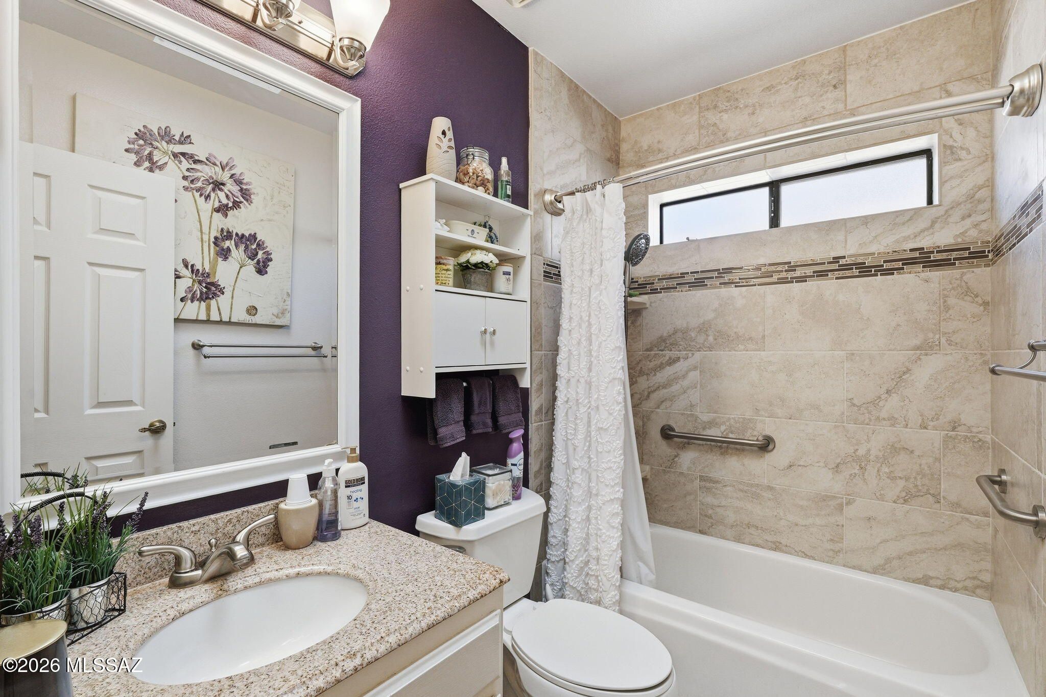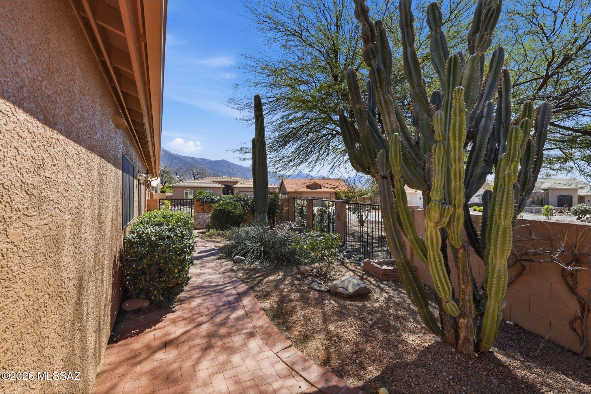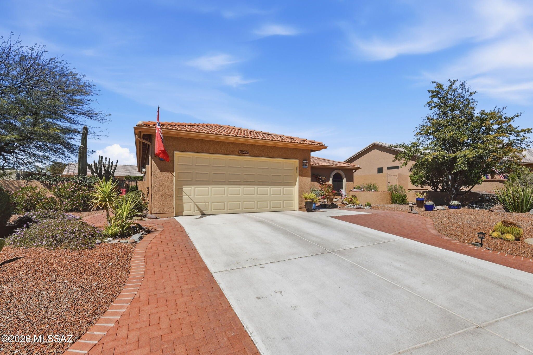 Welcome to this beautifully maintained 3 BD/2BA Alameda model in the highly desirable active-adult community of SaddleBrooke. This inviting home features a bright, open floor plan perfect for everyday living and entertaining. The updated kitchen showcases elegant quartz countertops, complemented by a convenient quartz wet bar ideal for hosting guests. Both bathrooms have been tastefully updated, and the cozy gas fireplace adds warmth and charm to the living space. Additional highlights include ceiling fans in all bedrooms, recirculating water pump, fresh exterior paint (2025), hot tub hookup, and updated irrigation system. Step outside to enjoy the private backyard featuring two citrus trees and a dedicated garden area, creating the perfect setting for relaxing or outdoor hobbies.