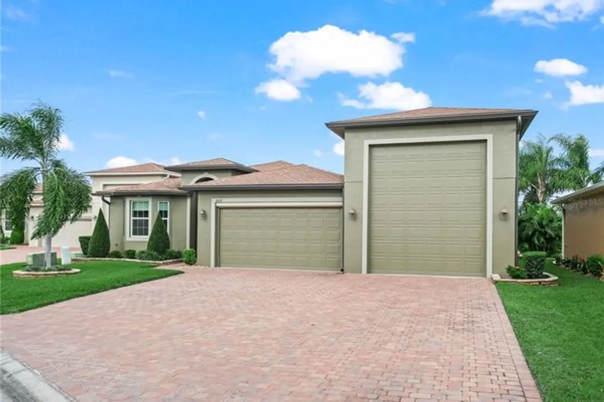 BEAUTIFUL HOME !!!!! LOOKING FOR A HOME WITH A RV GARAGE? Whether you own a motorhome, camper, an oversized truck, or even a boat this is the home for you! This CORONADO RV home BUILT IN 2017 offers everything you would want in a home. Excellent curb appeal and attractive interior design and upgrades; you will fall in love with this open and spacious floor plan. This stylish kitchen with upgraded lighting fixtures and hardware offers an abundance of cabinet space, trendy tiled backsplash, granite countertops and upgraded stainless steel appliances. The chef in the home will enjoy cooking on the induction stove top and the expanded pantry with bi-fold doors. For casual dining, a breakfast bar with upgraded pendant lighting is a popular choice or you can enjoy a more formal dining area where you can entertain. The living room with trey ceiling offers direct access to the covered and screen lanai with new techwood tile. Located directly off of the LR, the Primary Suite is quite spacious and offers a beautiful view of the water feature behind the home. The Ensuite Bath offers a walk in closet, double sink vanity, LARGE walk-in shower with glass enclosure and jetted soaking tub. It's he perfect getaway after a long day socializing with friends in Lake Ashton. Visiting overnight guests will appreciate the privacy offered to them. The guest bedroom is on the front of the home, closest to the entrance of the home and the guest bath is conveniently located beside the guest bedroom. If more space is needed for your family, you have the Den/Office with pocket doors to use as you wish. There are so many possibilities with this room. The laundry room is located between the kitchen and the garage and the washer/dryer will convey with the sale of this home. The MASSIVE RV GARAGE and DOUBLE CAR GARAGE IS SOMETHING TO TALK ABOUT!!!!! The RV Garage is 16X50 and the garage doors are insulated. There is a storage room behind the RV Parking area and hook ups (Water, Electrical and Sewer) are located on the outer wall of the garage. The garage floor has an epoxy coating and an automatic screen is on the double car garage door opening. A slop sink is in the garage, too. Additional upgrades in this home include: WOOD TILE PLANK FLOORS in the KITCHEN, FOYER and GUEST BATH, GRANITE COUNTERTOPS THROUGHOUT, EXTERIOR of HOME PAINTED in FEBRUARY 2025, SEPARATE IRRIGATION METER, UPGRADED BATHROOM FIXTURES, GUTTERS ALL AROUND THE HOME, MOTORIZED BLINDS N THE LR SLIDING DOORS, LANDSCAPING STONE EDGE on FRONT and REAR BEDS and MORE. You need to see this home in person. CALL and SET UP an appointment today. You won't be disappointed! This RV Home is located behind the secure gates of Lake Ashton, a PREMIER 55+ community in Central Florida. This 55+ community offers resort style amenities and activities. Residents enjoy the Clubhouse with Movie Theater, Grand Ballroom, Restaurant, Outdoor Temperature Controlled Swimming Pool, Card, Craft and Billiard Rooms, Fitness Room, Media/Library Room, Bocce Courts and More. The Health and Fitness Center features a large temperature controlled lap pool, fitness center, indoor racquetball, indoor 1/2 court basketball, pickle ball courts, tennis courts and large multi-purpose room. There are two 18 - hole golf courses (memberships are optional). Make an appointment to tour this home in Lake Ashton, one of Central Florida's most desirable 55+ community.