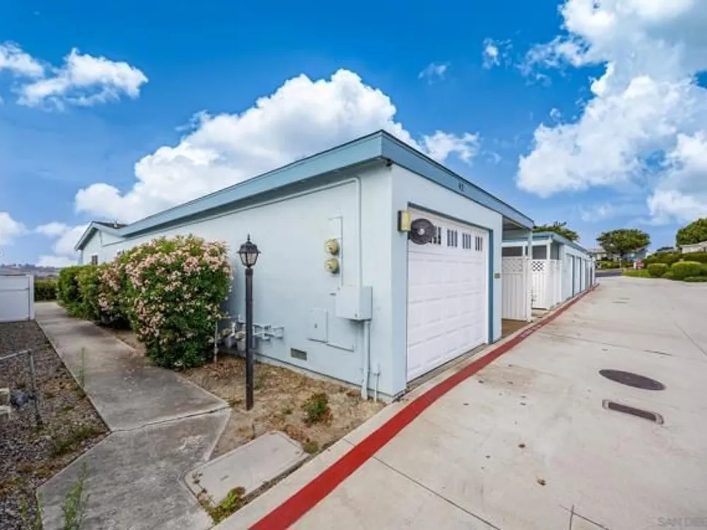Panoramic views + active 55+ lifestyle — Oceana has it all! Remodeled home with south hill & greenspace views. Kitchen boasts quartz counters, stainless range, newer fridge & dishwasher. Features include luxury wood-style floors, Solatubes, recessed lighting, spa-like onyx walk-in shower, quartz vanity, dual-pane windows, and a sloped roof that keeps the home cozy in winter/cool in summer. Gated carport patio w/ terrazzo flooring ideal for you & (2) pets. Recent updates: garage door/opener & water heater. Oceana offers an active 55+ community: concerts, yoga, pickleball, woodworking, 2 pools, dog park, community garden, & more. HOA includes water, sewer, trash, Cox basic cable + HBO/Showtime, landscaping, & insurance. Close to beach, shopping, dining & Sprinter! Call today to see why Oceana is where you’ll want to live.