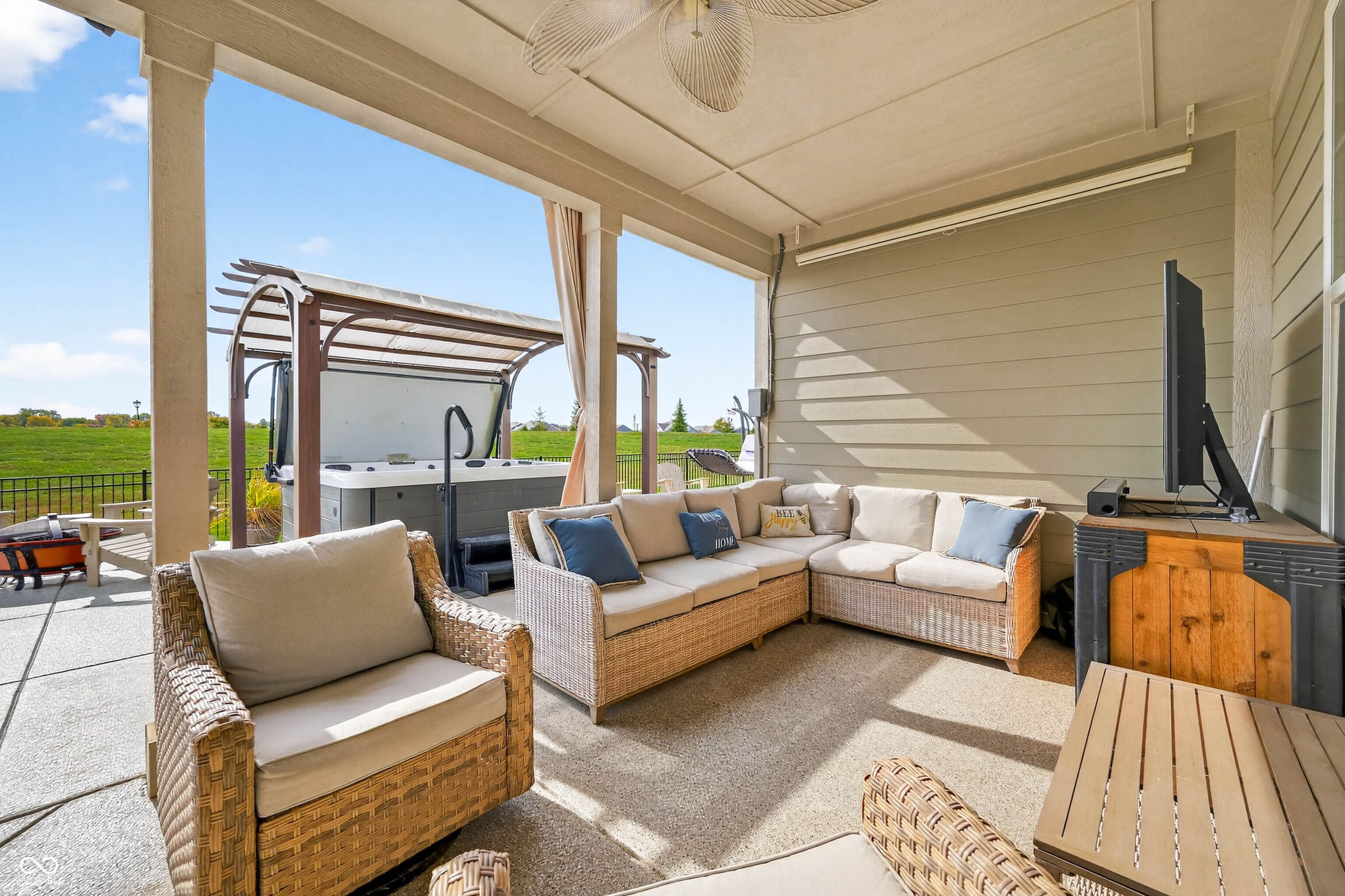 Welcome to 3846 Forbes Rd, a beautifully maintained 2,385 sq ft ranch in the desirable Abington Estates at Morningside. This thoughtfully designed home combines elegance and comfort with trayed ceilings, smart-home features, and a seamless flow between living spaces. Inside, enjoy both a formal dining room and an open-concept, eat-in kitchen that overlooks the spacious living room- perfect for everyday living and entertaining alike. The primary suite is a true retreat, boasting a luxurious walk-in shower with dual showerheads and ample closet space. Step outside to a backyard designed for relaxation and fun, complete with a partially covered patio, hot tub, and wrought-iron fencing. Situated on a quiet cul-de-sac and not backing up to another home, this property offers rare privacy in one of Bargersville's most desirable neighborhoods. Stylish, functional, and beautifully maintained-this home has it all.