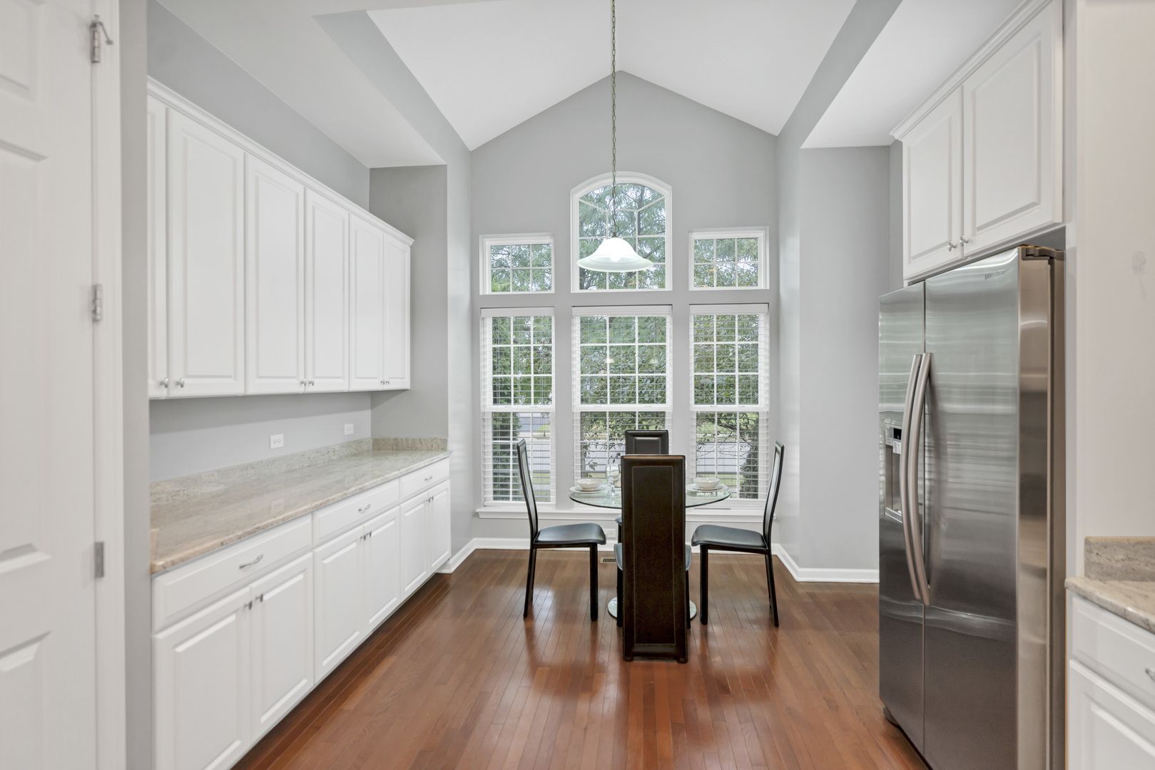 Discover the perfect blend of comfort, style, and convenience in this beautifully maintained 3-bedroom home, nestled in the sought-after active adult community of Bowes Creek. Enjoy resort-style living with access to top-tier amenities, including an outdoor pool, clubhouse, fitness center, tennis courts, and scenic walking trails. Step inside to find an open and airy floor plan designed for both everyday living and effortless entertaining. The dramatic two-story living room features a cozy fireplace and expansive windows that flood the space with natural light, creating a warm and inviting ambiance. The modern kitchen is a chef's delight, offering stainless steel appliances, 42-inch white cabinetry with crown molding, a breakfast bar, and a sunny eat-in area. Convenience is key with a main-level laundry room complete with utility sink. The spacious primary suite boasts a tray ceiling, walk-in closet, and a luxurious en-suite bath with double sinks, a soaking tub, and separate shower. Also on the main level: a second bedroom, full bath, and a versatile office-ideal for remote work or hobbies. Upstairs, you'll find a large, flexible loft space perfect for a family room, recreation area, or playroom, along with a third bedroom and full bath-ideal for guests. Unwind in the screened-in porch overlooking a private backyard that backs to mature trees-no rear neighbors! Located in Elgin, you're just minutes from shopping, dining, and major highways, offering both tranquility and easy access to everything you need. Don't miss this opportunity to make this exceptional home yours-schedule your private showing today!