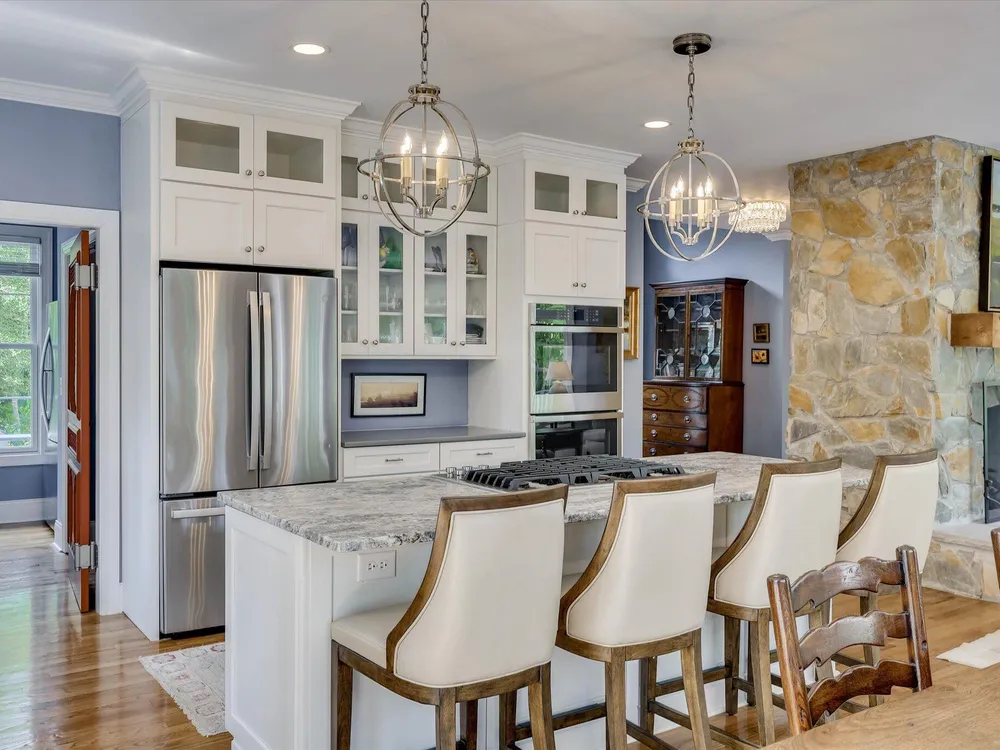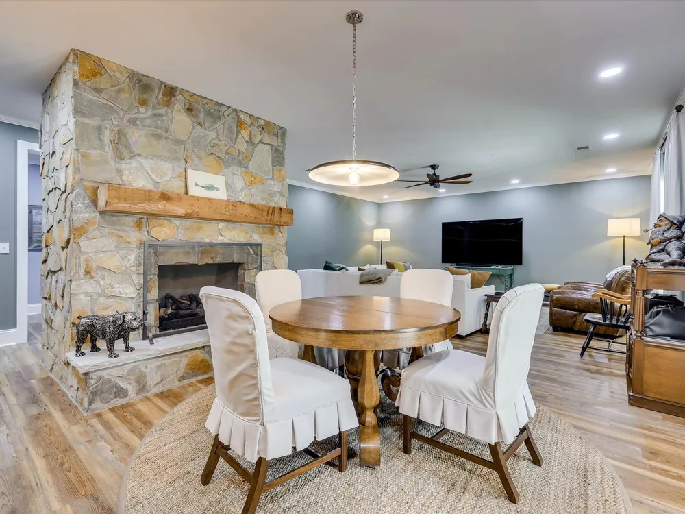 Unbelievable Luxury Lakefront property with panoramic lake view with over 300' of lake frontage. - Fully Renovated with Private Dock, Outdoor Oasis & Breathtaking ViewsDiscover the ultimate in lakefront living with this spectacular 5-bedroom, 5-bathroom estate, nestled along the peaceful shoreline and thoughtfully reimagined into a one-of-a-kind sanctuary of style, comfort, and function. Spanning 4,100 square feet across three fully renovated levels, this property is more than a home--it's an experience.From the moment you arrive via the new circular driveway, you'll be captivated by the breathtaking lake views, lush, professionally landscaped grounds, and a sense of privacy that defines this backyard oasis. Whether you're enjoying sunrise coffee on the deck, sunset gatherings around the stone outdoor fireplace, or launching your kayak from your own private dock, every day here feels like a vacation. Interior Elegance & Total RenovationCompletely updated with no detail overlooked, this home seamlessly blends elegant finishes with warm, inviting spaces. Enjoy lake views from nearly every window, high-quality craftsmanship, and intentional design throughout.Key highlights include:Fully renovated kitchen with new cabinets, high-end appliances, stone countertops, and gorgeous fixturesLarge walk-in pantry for organized storageHardwood floors on the main level and LVP flooring on the lower levelGas fireplaces in the family room and lower level with new gas logsRenovated bathrooms (5 total) with modern tile, updated vanities, custom showers & lightingDetached garage for added storage or workspaceSpacious bedrooms offering comfort and privacyDesigned for Comfort & ResilienceThis home is not only beautiful--it's built for peace of mind. Recent updates include:New HVAC system (2022)Two on-demand propane water heatersWhole-home Generac generator for uninterrupted livingTwo 500-gallon propane tanksNew roof (partial, post-storm damage); remaining roof professionally inspected and in good conditionNew gutter guardsIrrigation system and mature landscaping featuring cedar, magnolia, and crepe myrtle treeFenced dog yard for your four-legged family membersOutdoor Living at Its FinestStep outside to your private sanctuary--this home boasts an expansive stone patio, custom-built fireplace and fire pit, and panoramic views of the lake. Whether hosting unforgettable gatherings or relaxing in solitude, this backyard is built for year-round enjoyment. Premier lakefront setting with, panoramic lake view with over 300' of lake frontage. Bedrooms: 5 Bathrooms: 5 (fully renovated) Square Footage: Approx. 4,100 sq ft Features: Private dock, outdoor fireplace, circular driveway, fenced yard, detached garage Systems: New HVAC (2022), Generac generator, on-demand hot water, updated plumbing, electrical & lightingThis remarkable property is truly turnkey--a rare blend of luxury, comfort, and natural beauty. Schedule your private tour today and prepare to fall in love with your forever home on the lake.
