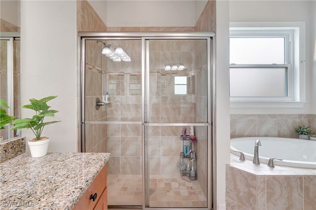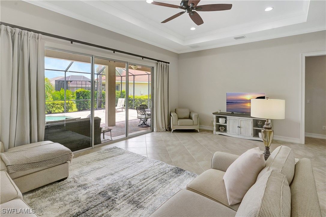 VERANDA GOLF & COUNTRY CLUB! MAJOR PRICE REDUCTION! STUNNING BEAUTIFULLY UPGRADED ($200,000+/-) LAKEFRONT 3 BEDROOM, DEN, 2 BATH, 2 CAR (OVERSIZED) GARAGE, POOL-SPA HOME. 12' CEILINGS, TRAY CEILING, OPEN FLOOR PLAN WITH SPLIT BEDROOM PLAN, ALL 20" TILES FOR EASE OF HOME MAINTENANCE AND CUSTOM "CROWN MOLDING THROUGHOUT THE WHOLE HOME. Home has lots of glass windows and sliders and all are "IMPACT STORM RESISTANT" and keeps the home LIGHT-BRIGHT-SUNNY all year round. "CHEFS" KITCHEN WITH ALL WOOD 42" CABINETRY, LEVEL 5 GRANITE TOPS, TILE BACK-SPLASH AND ALL HIGH END STAINLESS STEEL APPLIANCES. Master bedroom has all crown molding, his & hers walk-in closets, dual granite sinks and vanities, soaking tub and all glass & tile walk-in shower. The pool is heated and has a 'SALT WATER SYSTEM" with paver pool deck and covered lanai with beautiful LARGE LANAI WITH A BIT OF "SOUTH BEACH" VIBE for those family outdoor gatherings. THE REAR OF HOME HAS COMPLETE ELECTRIC "STORM SMART" ROLL DOWN STEEL SHUTTERS FOR TOTAL STORM PROTECTION! The home includes a NEW ROOF installed in 2021, a NEW HVAC system 2024, New washer/dryer 2024, New interior paint 2024, exterior paint from 2021, upgraded landscaping, and more. BIG BONUS, THE CDD IS PAID IN FULL (MEANS LOWER TAX BILL)! All the guest suites are "SUPER" sized with large closet space, all are separate from the Master Suite for complete privacy. Situated on an oversized lot in a highly sought-after neighborhood, this home truly has it all. Verandah is a gated vibrant community, JUST OUT-OF-TOWN LOCATION BUT CLOSE TO RSW INT'L AIRPORT, I-75 MINUTES AWAY AND CLOSE TO ALL THE BEST SCHOOLS, CHURCHES, HOSPITALS, RESTAURANTS AND ENTERTAINMENT IN THE GREATER FT. MYERS AREA. The community featuring 2 Championship Golf Courses designed by Jack Nicklaus and Bob Cupp. Additionally, the community has WORLD-CLASS state-of-the-art HEALTH & WELLNESS center, BEAUTIFUL CLUBHOUSE, Championship tennis facility with HAR-TRU clay courts, pickle-ball, bocce, resort-style COMMUNITY pool, kayaks, CHILDREN'S playground, dog park, 9 miles of walking and jogging paths, multiple ON SITE restaurants, and an a very active calendar of activities which will compliment all residents wishes. THIS IS VERY AFFORDABLE WORLD CLASS GOLF & COUNTRY CLUB LIVING AT IT'S BEST! HOME COMES WITH A ONE YEAR COMPLETE HOME WARRANTY FOR TOTAL BUYER COMFORT.