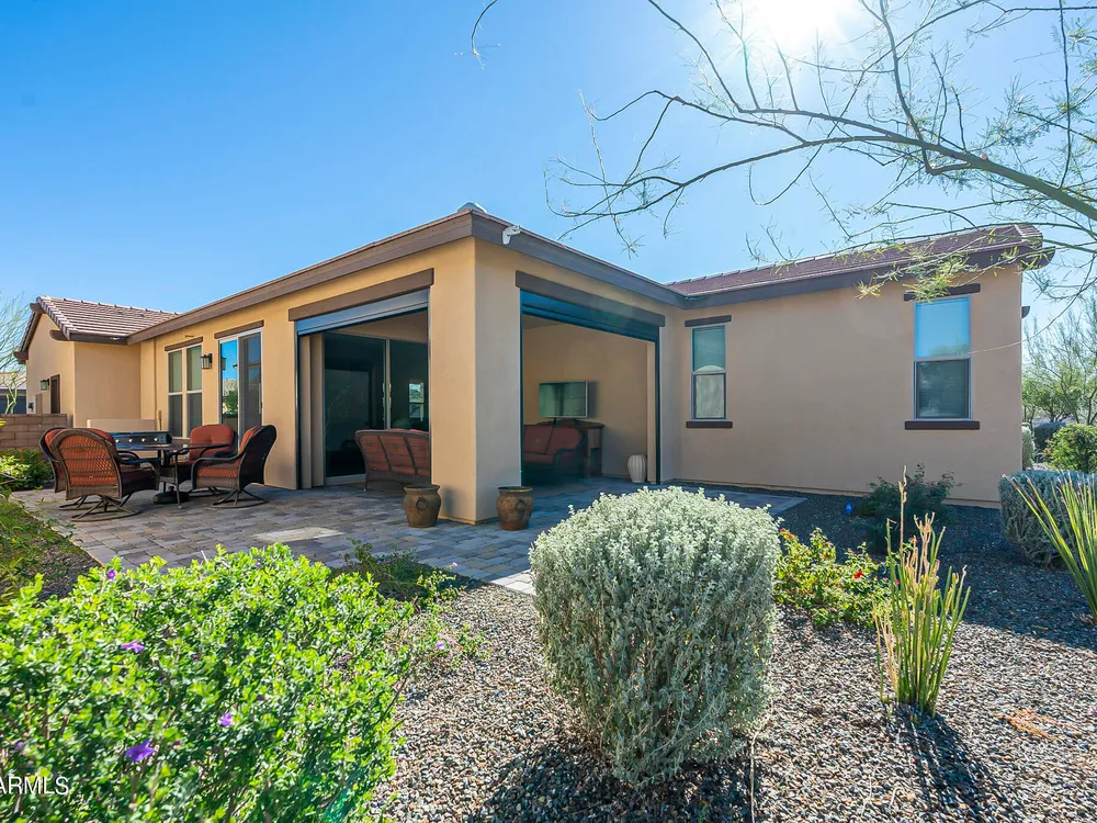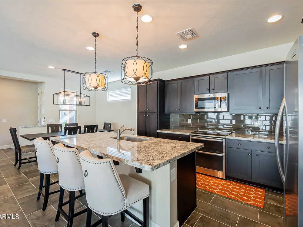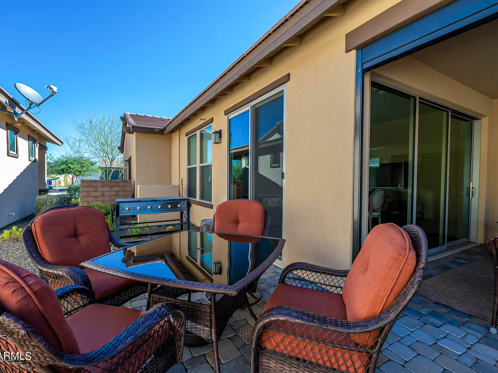 This beautiful ''Stetson'' model home is loaded with upgrades including all stainless Steel Appliances, Granite counters, under cabinet lighting systems, a large Sliding glass door, and newly installed top-of-the-line Automatic Sunshades on your private back patio. Enjoy this very tastefully decorated home as it is being sold Turn Key!