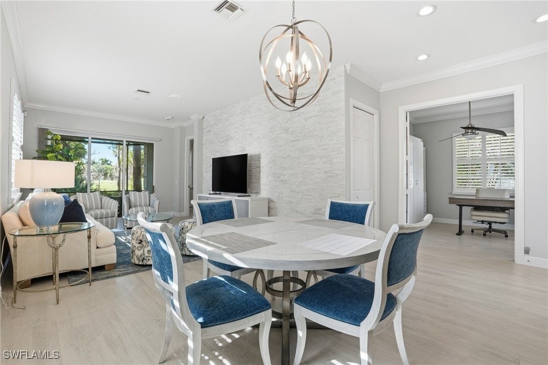 Imagine stepping into a world where luxury meets affordability. This charming two bedroom + den home, nestled within this prestigious resort community, offers the perfect blend of updated elegance and value. With its cozy footprint and inviting design, this is not just a house—it's your gateway to a lavish lifestyle without the hefty price tag. Experience breathtaking views through out the community, top-notch amenities, and a vibrant community atmosphere. The home boasts a new roof, full updated with designer touches thought out, fully furnished with designer furnishings. Bring your swimsuit, toothbrush and suitcase and start living the dream vacation life in your own home. Fiddler’s Creek residents enjoy access to an award-winning gated community that offers a sanctuary of elegance and tranquility to your daily living. The amenities are designed for those who appreciate the finer things in life. They include two fantastic resort-style pools, Gator Grille restaurant, 10 pickleball courts, an exceptional clubhouse that fits your fitness needs with classes on site. There are spa services, tennis courts, plus dining and a calendar of events during the season. Fiddlers also offers optional memberships for golf on two championship courses, marina, and beach club-offering a lifestyle defined by luxury, leisure and relaxation. Excellent location to Publix, coffee café, nail salon and urgent care just outside the gate, and close to beaches, museums, parks and everything we love about life in Naples Marco Island area. Your dream home awaits!