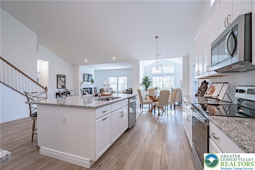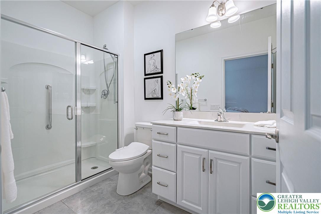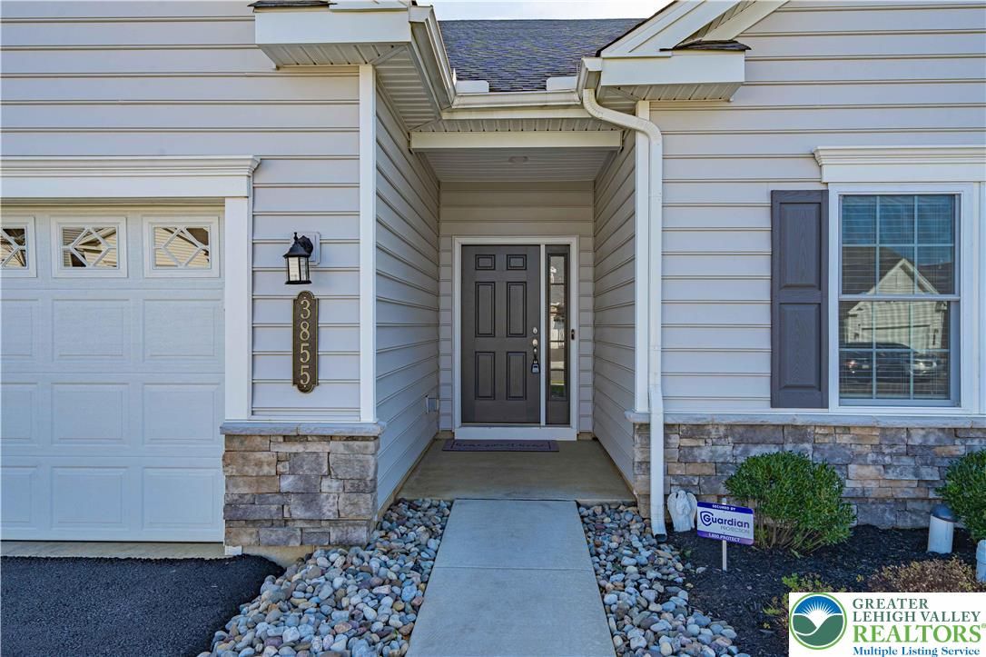 Welcome to 3855 Victors Way, a stunning 3-bedroom, 3.5-bathroom home in one of the most sought-after 55+ communities in the Lehigh Valley. This home perfectly blends luxury, comfort, and low-maintenance living. Step inside to a bright, open-concept living space with soaring ceilings and oversized windows that flood every room with natural light. The spacious, modern kitchen features stainless steel appliances, granite countertops, a large center island, and custom cabinetry. The primary suite is your private retreat, complete with a walk-in closet and spa-like en-suite bathroom featuring dual vanities and a glass-enclosed shower. Guests will enjoy their own private en-suite in the second bedroom, while the versatile third bedroom is ideal as an additional guest room, library, or hobby room. Every detail of this home is thoughtfully designed to be both stylish and functional. Enjoy resort-style amenities just steps from your door: Clubhouse with fitness center, golf simulator, a theater room, an outdoor pool & spa, pickleball & tennis courts. This low-maintenance lifestyle includes lawn care and snow removal, so you can spend your time enjoying what matters most. Located in picturesque Easton, PA, Traditions of America at Green Pond offers easy access to shopping, dining, golf courses, and entertainment, making it the perfect location to live life to the fullest. Don’t miss your chance to call this exquisite home your own. Schedule your showing today!