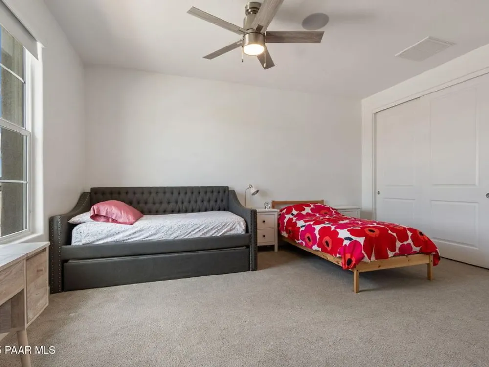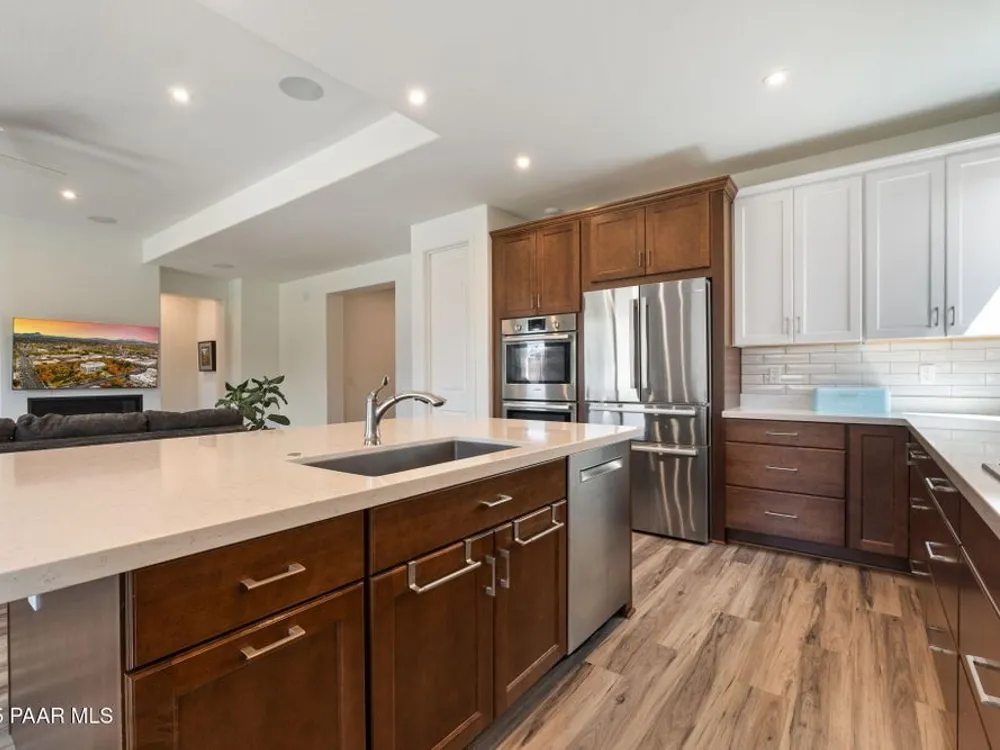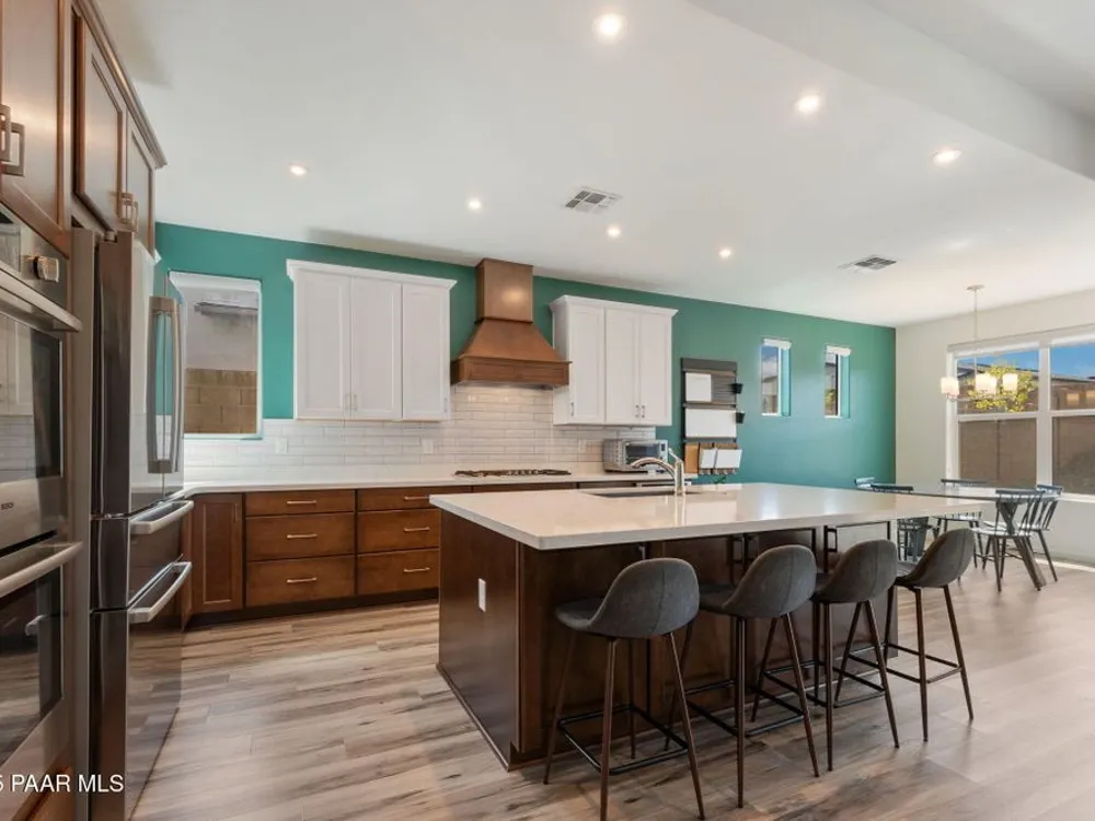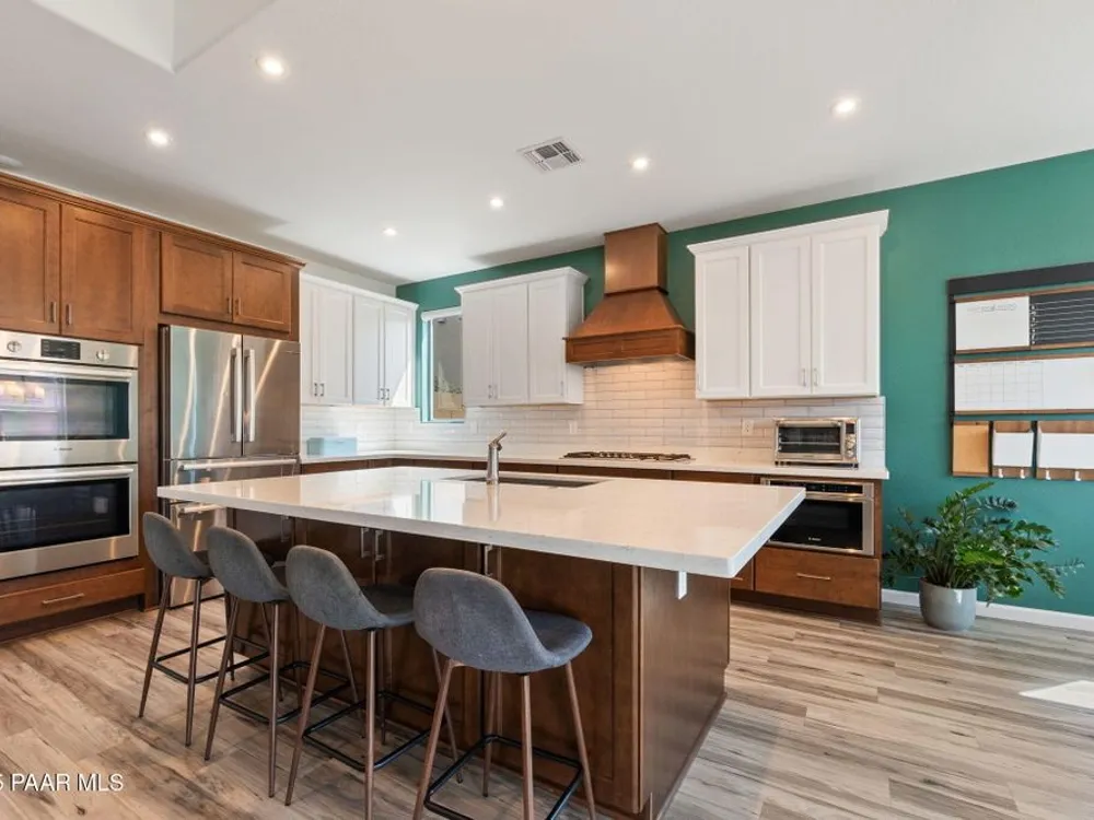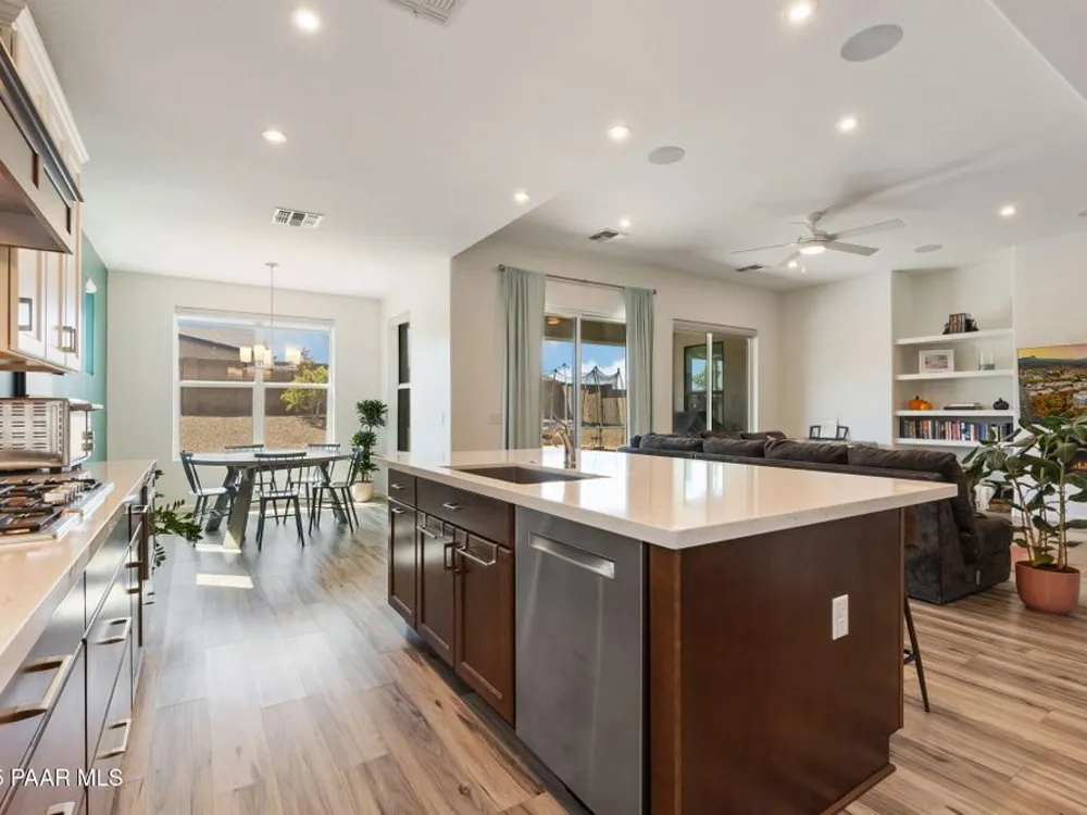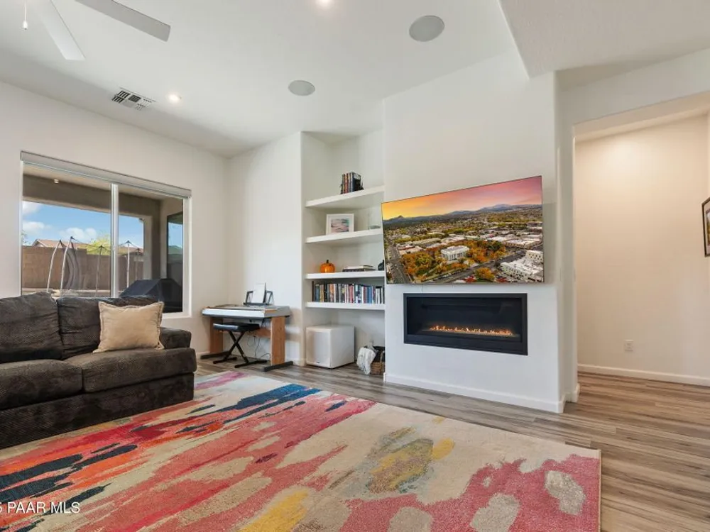 A rare opportunity in Granite Dells Estates, the only 5-bedroom, 4-bath home available at this value. The open floor plan is centered around a cozy gas fireplace and a chef's kitchen with Bosch appliances, a custom wood hood, double ovens, quartz counters, and a large island perfect for gathering.The primary suite features a stylish accent wall, spa-inspired bath, and generous walk-in closet, while four additional bedrooms, including one en suite, offer flexibility for family, guests, or a home office.The backyard is designed for entertaining with an extended paver patio, artificial turf, gas BBQ hookup, and custom fireplace.Granite Dells Estates offers breathtaking views from the clubhouse along with resort-style amenities including a pool, fitness center, pickleball courts, scenic trails, and convenient access to Watson and Willow Lakes and downtown Prescott.Experience luxury and comfort in one of Prescott's most desirable communities.