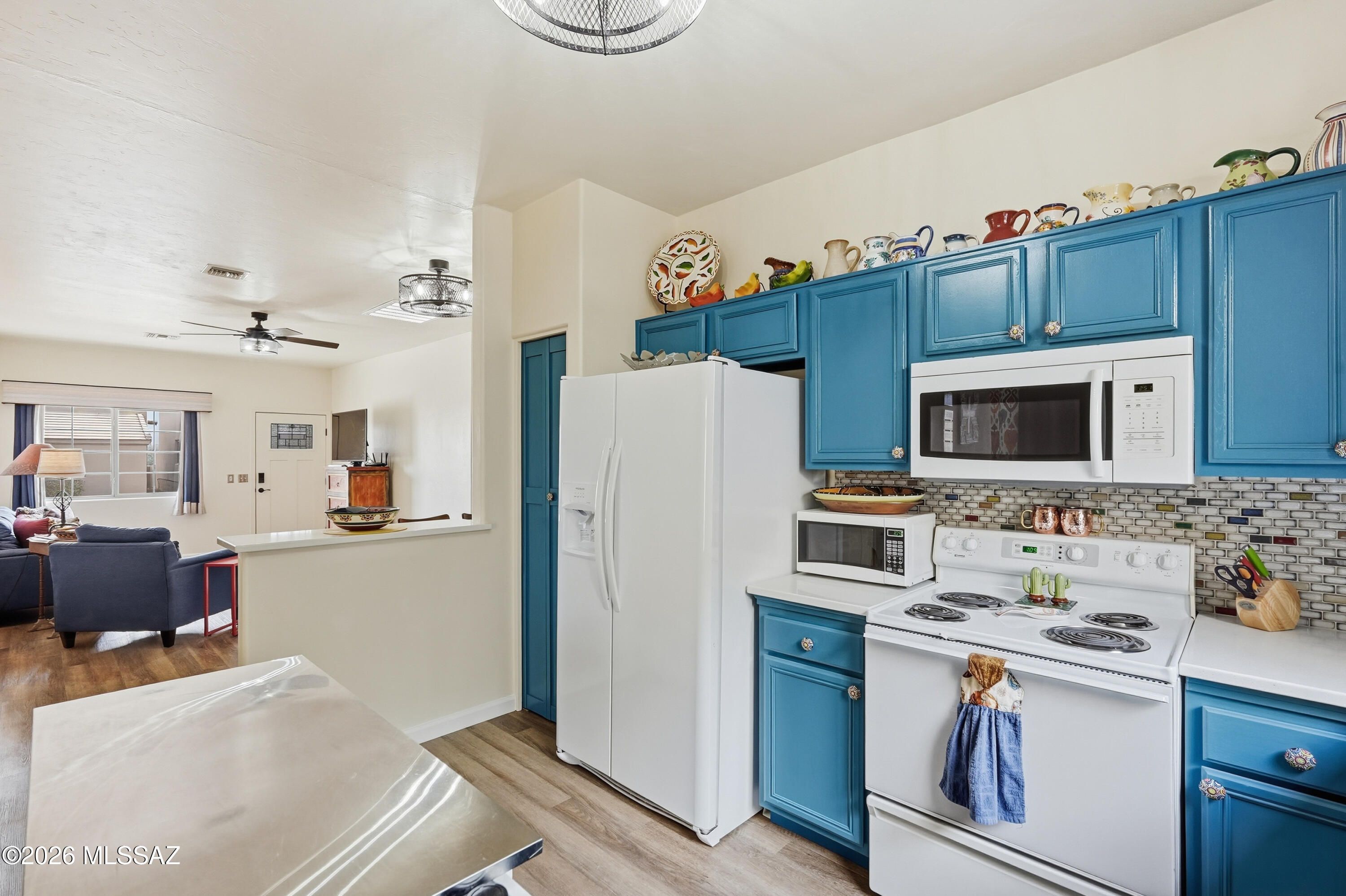 You will love this 2-bedroom, 2-Bath townhouse, located in a gated community, with parks, walking trails and the Santa Rita Springs GVR center located within the community. This upgraded home with its vibrant colors, ambient light and large screened in patio is ideal for an active lifestyle. Upgrades included both bathrooms, freshly painted, new HVAC in 2024, and LVP flooring 2025