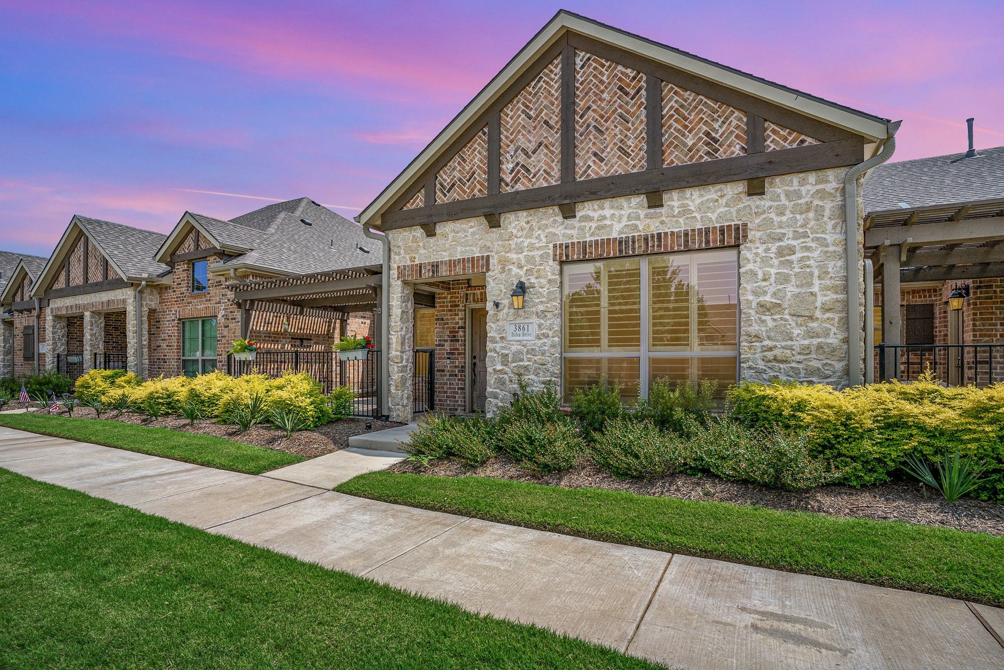 DETAILS MATTER! Single-Story Villa with LOTS OF UPGRADES along the greenbelt and receive ALL THE BENEFITS of living within Windsong Ranch. This NORTH FACING 2BR, 2BA, 2GA home is prestine and offers tons of character that stands out from the competition! The advanced level of modern upgrades make it an ideal property for transitional needs. The open design provides extra wide doors and hallways that can accommodate many ADA needs. Beyond the functionality of the open floor plan are the elegant porcelain planked-wood like tile floors, vaulted ceilings, upgraded lighting, Closets by Design in the primary bedroom closet, and a covered courtyard for outdoor relaxation. 2 separate ensuite bedrooms offer a well thought design offering privacy and convenience for all occupants. The dedicated study area offers the perfect space for work or creativity. Don't overlook the abundant storage in the garage! Enjoy access to the exceptional Windsong Ranch amenities including The Commons, The Lagoon, Parks, Trails, and Pickleball courts. Embrace resort-style living in this highly sought-after community. With upgrades galore this beautiful villa is truly move in ready. Conveniently located close to Dallas North Tollway and PGA! NOTE: In addition to Monthly HOA dues of $324, Quarterly Dues of $630 to Windsong Ranch