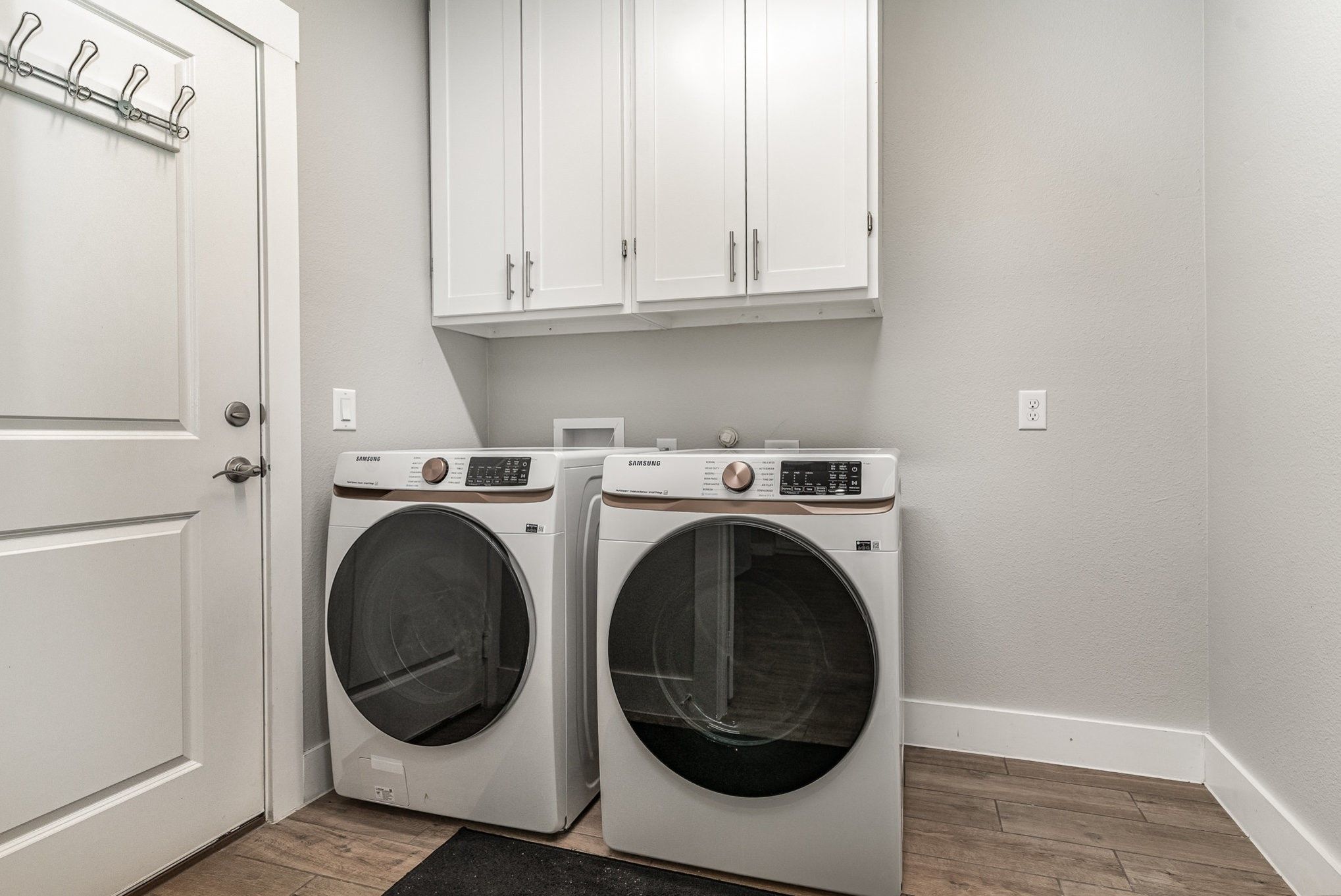 - Dryer, Dishwasher, Electric Water Heater, Disposal, Gas Range, Microwave, Refrigerator, Washer