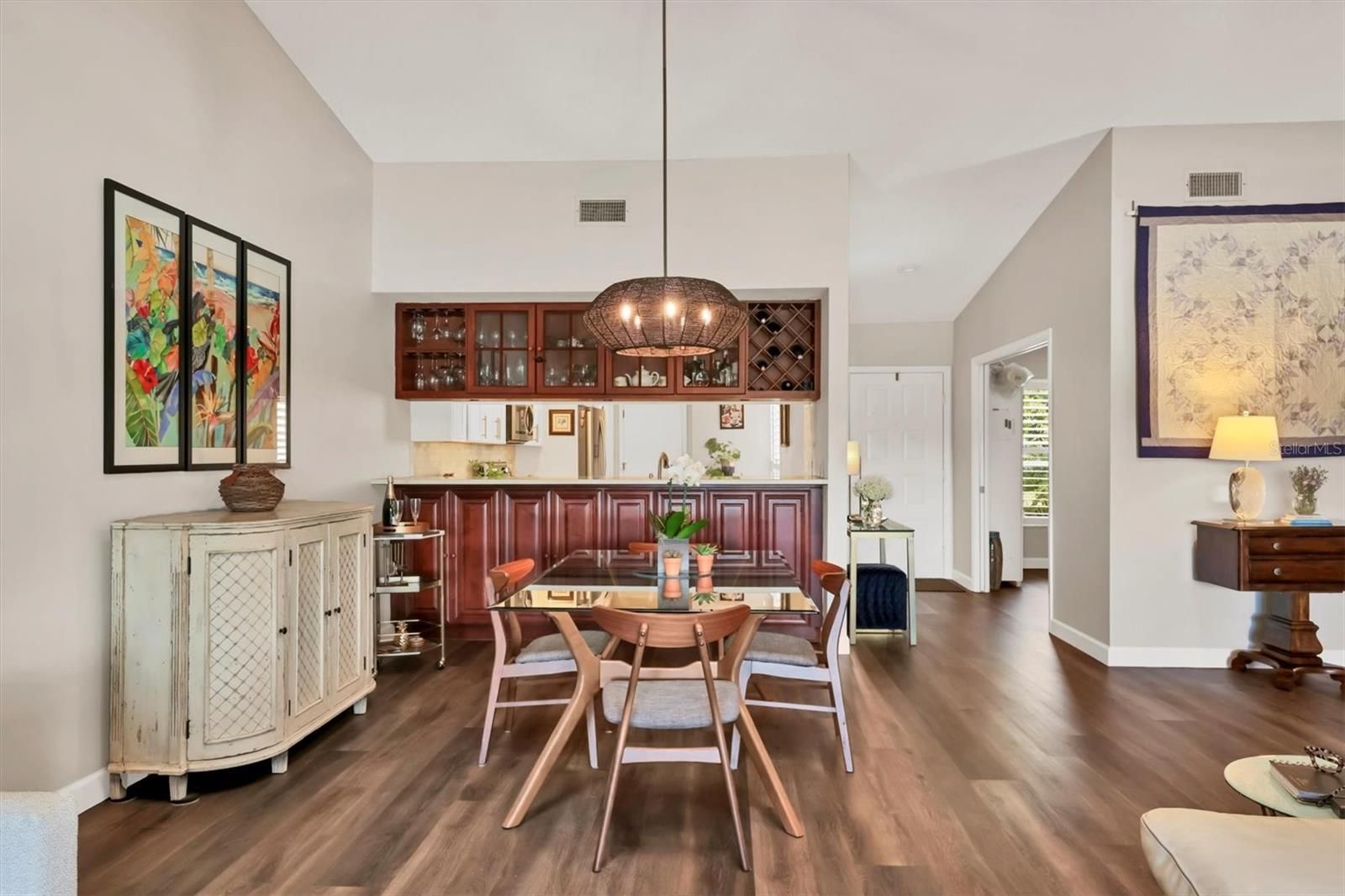 Discover refined living in this beautifully updated three-bedroom villa set in the sought-after lakefront community of Lakeshore Village in Sarasota. Positioned as an end unit, this residence is bathed in natural light from its many windows, vaulted ceilings and thoughtfully placed skylights, all enhancing its airy open floor plan. Enjoy serene water views overlooking a peaceful Audubon-designed rookery on Mirror Lake, where nature and luxury blend seamlessly. The remodeled kitchen is a chef’s delight, featuring quartz countertops, soft-close cabinetry and premium stainless-steel appliances. The spacious primary bedroom offers a tranquil retreat with direct access to the lanai through sliding glass doors. Additional highlights include dual walk-in closets and a well-appointed en suite with dual sinks. Impact windows in the primary suite and office provide peace of mind and year-round comfort. This villa epitomizes maintenance-free living, allowing you to enjoy the community’s exceptional amenities, including a heated saltwater pool, tennis courts, fishing, horseshoe pits and a vibrant recreation center. Just 15 minutes from Siesta Beach, downtown Sarasota and University Town Center, this home offers a blend of tranquility, convenience and luxury coastal living.