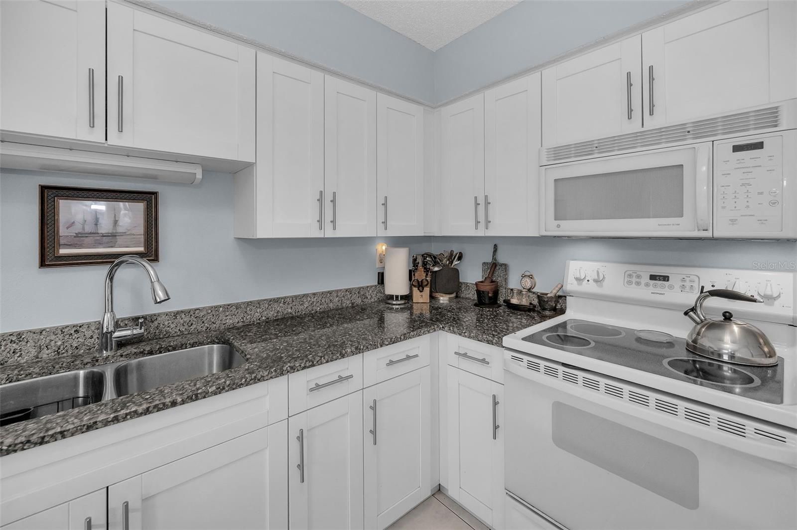 PRICE IMPROVEMENT - STUNNING MOVE IN READY - 55+ MAINTENANCE FREE ~ EXCELLENT LOCATION & VALUE ~ GROUND FLOOR CONDO ~ FLORIDA LIVING AT IT'S FINEST for either your SEASONAL GETAWAY or full time residence, you do not want to miss this private, light bright, well maintained split floor plan condo featuring 2 bedrooms, 2 baths, 1144 square feet with a covered carport. Just inside the front door is an open airy gathering room with sliding glass doors to the inviting back outdoor lanai. The STUNNING REMODELED kitchen features newer cabinets with brushed nickel fixtures, granite countertops, under mount stainless steel sink, ceramic tile floors, closet pantry, laundry closet with a full size washer and dryer included and added storage shelves. From the kitchen sliding glass doors you can access the private front patio which has direct access to the covered carport and exterior storage closet. The spacious primary bedroom is located at the back of the condo and features a large walk-in closet and a beautifully updated private bath including a new vanity and walk-in shower. The secondary bedroom is in the front of the home with easy access to the tastefully remodeled second bathroom which includes a tub/shower combination, ceramic tile floors and a new vanity. This easy flowing floor plan offers many options for the new buyers to work with to make the open spaces their own. This condo is wonderfully designed to entertain your family and friends. The living and dining room have a beautiful Eastern view of the common area greenery with a garden like view. The rear enclosed lanai is a peaceful outdoor living space featuring a ceiling fan and sheer drapes for privacy, a perfect place for an afternoon cup of tea, a glass of wine with friends or for a quiet afternoon with your favorite book. Additional features of this very well maintained PARTIALLY FURNISHED condo includes crown molding, water heater (2022), HVAC unit in 2022, newer roof included in your monthly HOA dues, a large storage closet with shelving off of the sitting area, updated baths, extra long driveway for additional private parking and more. Beacon Lakes is a 55+ community located in a prime location with a tropical, Florida ambiance that is popular with the residents. It includes a community clubhouse, pool and hot tub, Bocce ball and Shuffleboard court, fitness room, library and pool table along with community clubs and activities as outlined in the monthly community newsletter. It is a wonderful place to call home and to enjoy Florida living. It is close to restaurants, beaches, golf courses, parks, shopping and so much more. LOW HOA dues includes maintenance free community, roof, cable TV, Internet, trash, water and all of the above mentioned amenities. FLORIDA IS CALLING YOU HOME!
