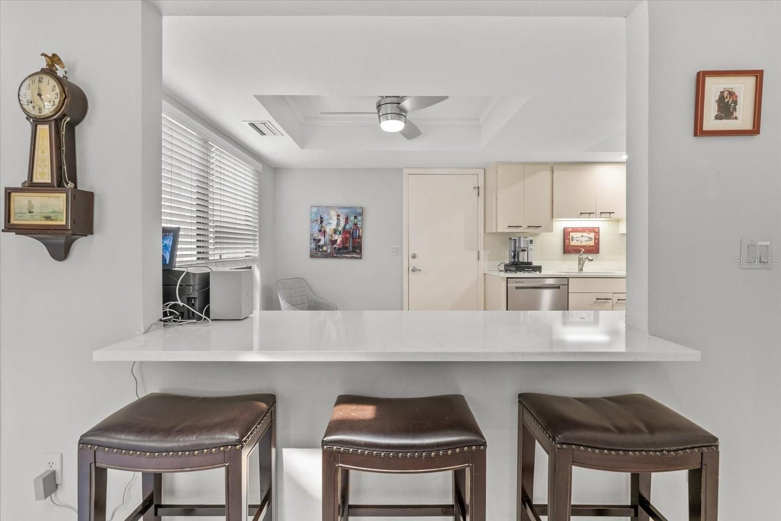 Lakeshore Village | 2 Bed / 2 Bath Villa | 55+ Community From the moment you step inside, serene lake views and soaring cathedral ceilings set the tone for this beautifully renovated 2-bedroom, 2-bath villa in the sought-after Lakeshore Village community ? minutes from the world-famous white sands of Siesta Key. Thoughtfully reimagined in 2023, this villa was taken down to the studs in all the right places. The kitchen was opened to the living area and completely transformed with quartz countertops, new cabinetry, designer backsplash, stainless appliances, updated lighting, and a new ceiling with fan. Both baths received full upgrades including granite countertops, new sinks, faucets, and shower doors ? and the primary bath now features a luxurious soaking tub. New flooring flows throughout. Three oversized skylights and abundant windows bathe the interior in natural light, while three large sliding glass doors retract fully to connect the living space to a 23-foot tiled lanai ? expanding the total living area to over 1,800 sq. ft. The split-bedroom floor plan offers privacy for owners and guests alike, and the inside laundry room adds everyday convenience. A 2-car garage with overhead storage completes the package.