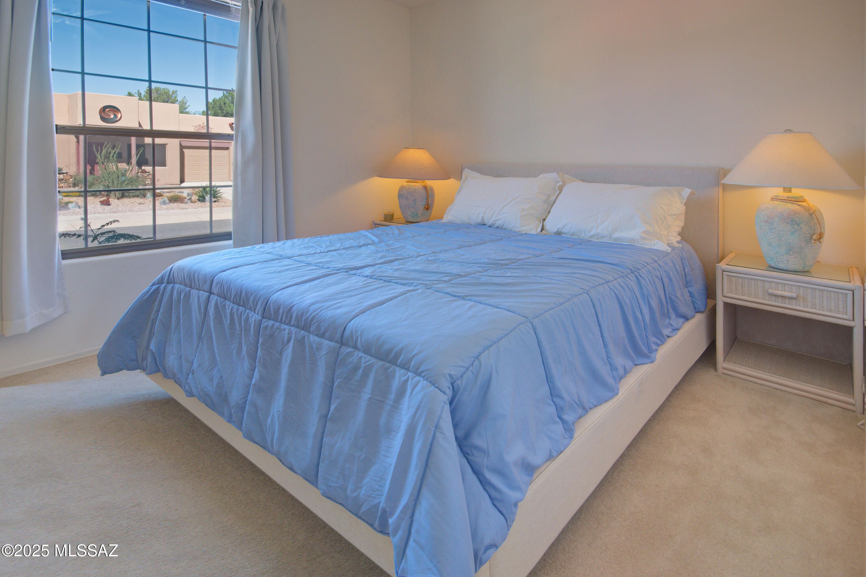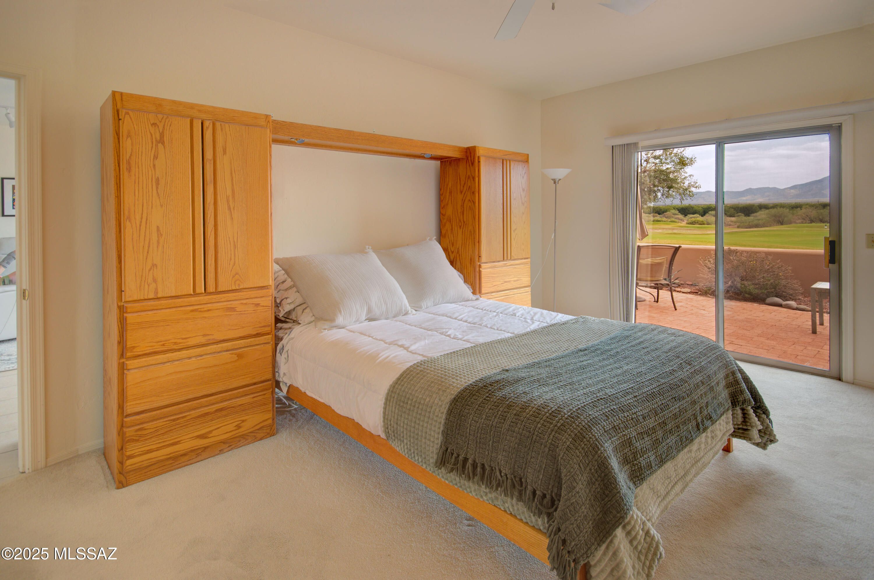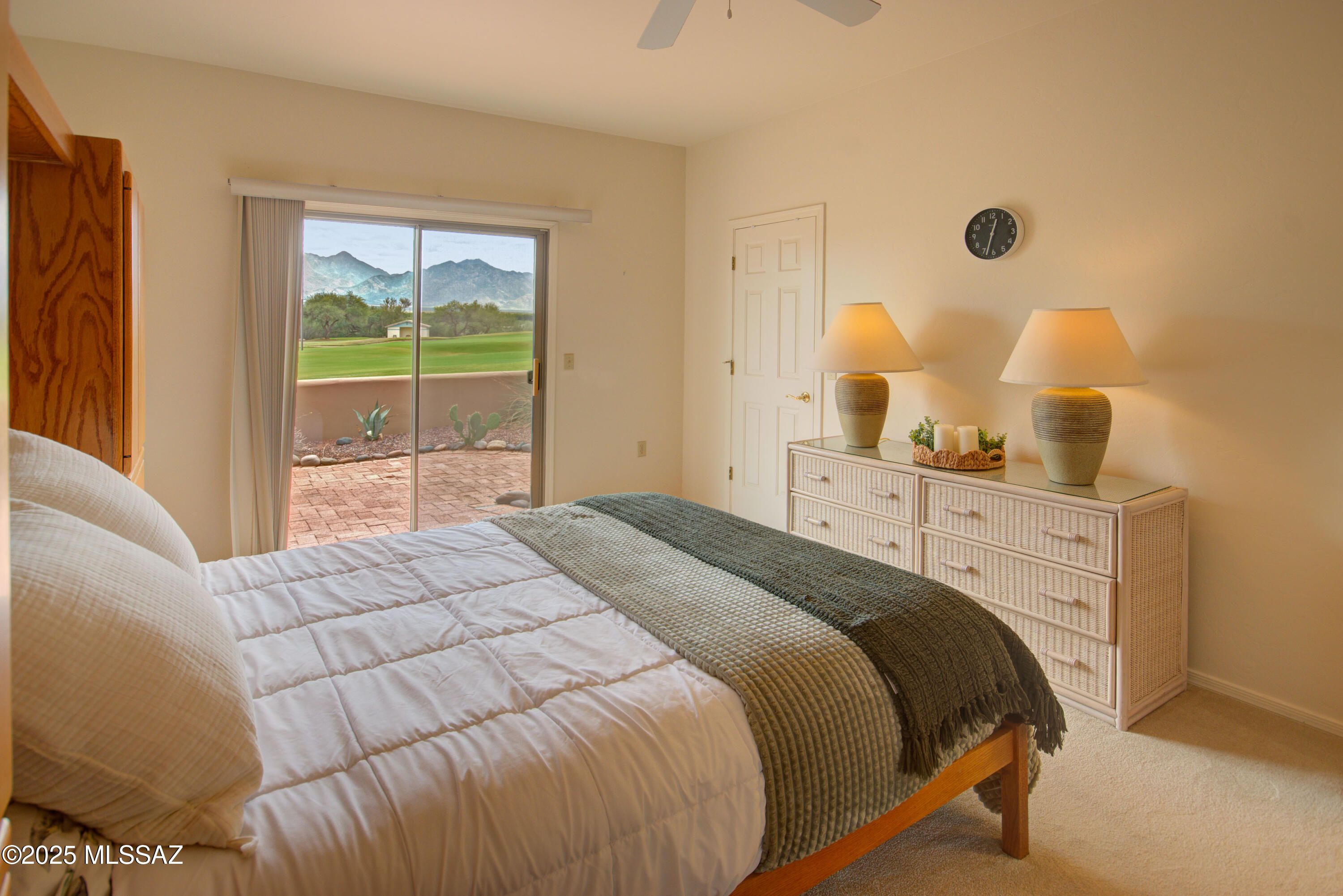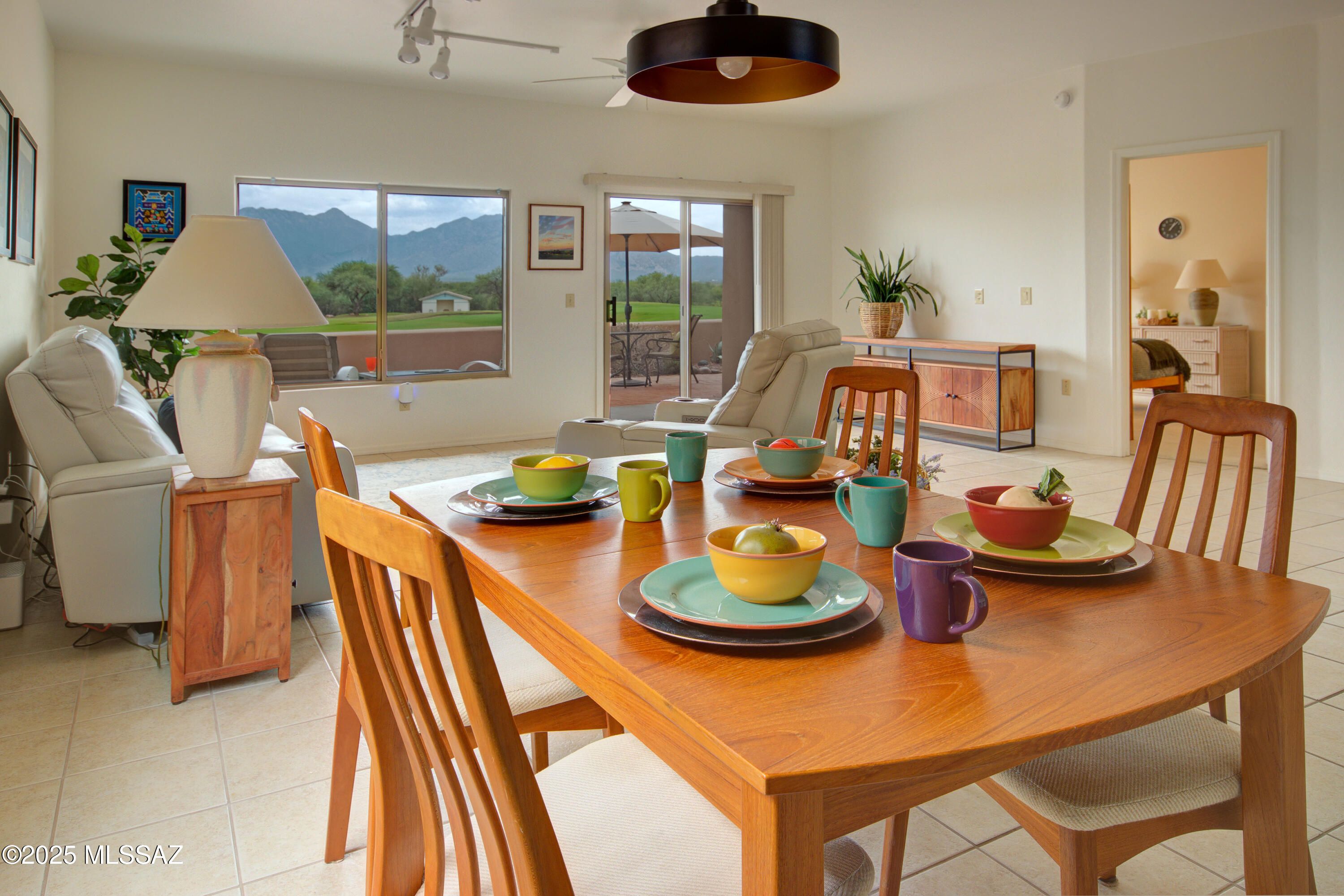 Inspiring views of the Santa Rita mountains inside and out, in this bright and sunny split bedroom townhome. Owner's suite offers patio access, 2 closets, walk-in shower - and yes, more mountain views. Bedroom number 2 can be a guest suite, home office, craft room, or all of the above - your choice! 1-car + golf cart garage, newer HVAC and water heater, and leased (transferrable) whole house water softener. Your gated community is also home to a premier Santa Rita Springs GVR recreation facility (fitness center, pool, clay studio, and more), as well as HOA maintained walking trails, cactus gardens and parks. Sold fully furnished. Move in, enjoy!