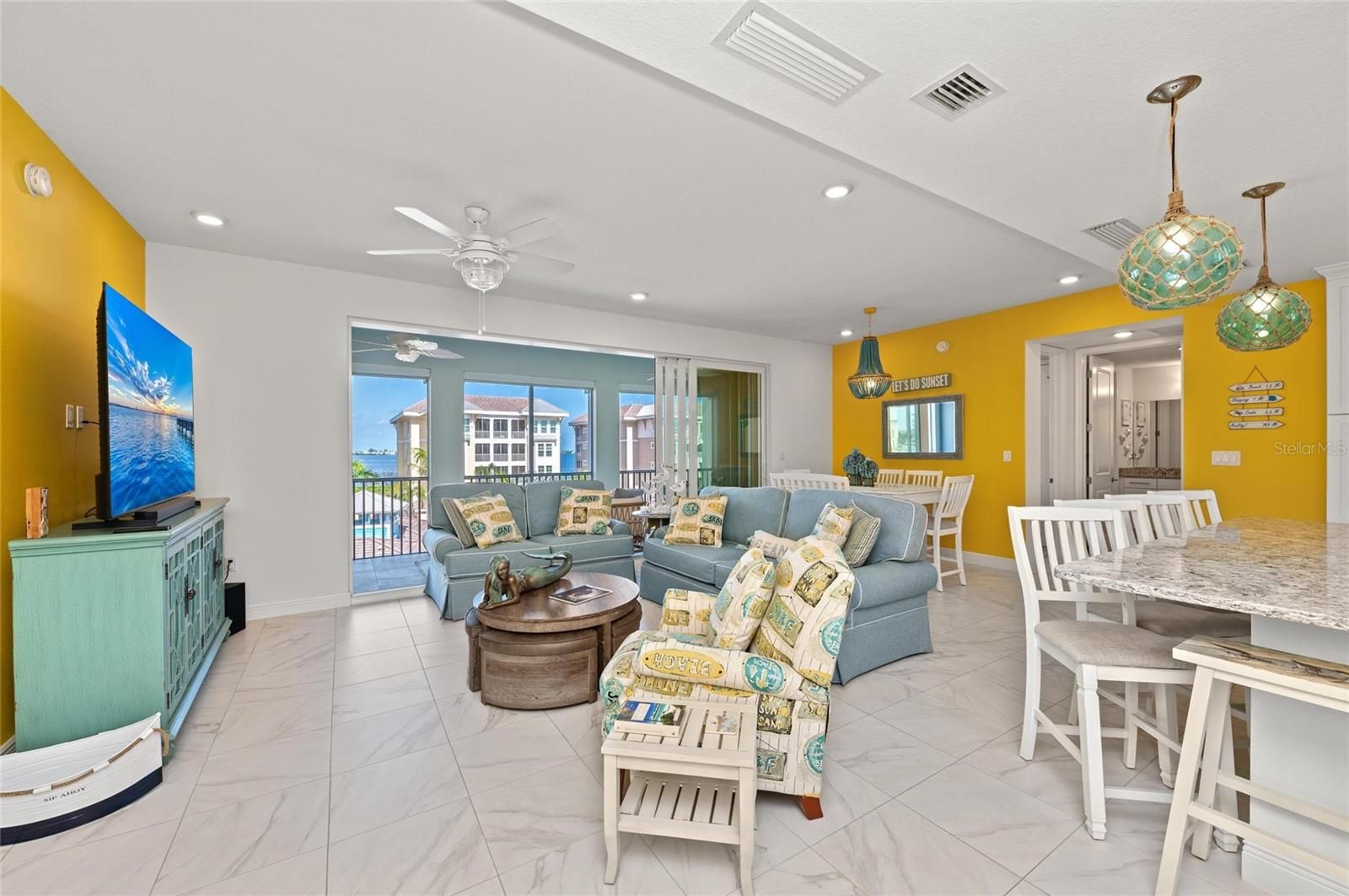 Welcome to beautiful One Particular Harbour located in Harbour Isle on Anna Maria Sound! Absolutely stunning views! Water views of Anna Maria Sound from every window in this gorgeous condo. With the large lanai and living space facing westward, enjoy spectacular sunsets over Anna Maria Island. This home was built in 2017 and has large three-unit hurricane-resistant sliding glass door leading from the living area to the lanai, making it a wonderful space for entertaining family or friends! There are blinds on the spacious lanai for added privacy! This home has never been rented and shows like new. Also this condo is TURNKEY furnished with few exceptions such as personal items. It features a dedicated parking space that will accommodate a motorcycle or golf cart in addition to your vehicle and a large designated storage unit. This spacious condo has two bedrooms, two baths, upgraded GE appliances, with double oven and white to the ceiling kitchen cabinets and granite countertops and backsplash and upgraded custom light fixtures. This building has a sprinkler fire system and has masonry construction. The home has tile flooring in the living room, dining area and kitchen. This condo could be a great investment opportunity with 5 day rentals, a lovely full-time or second home. The Harbour Isle and One Particular Harbour communities are highly sought after. It starts with the amazing 23,000+ square foot Beach Club where you can raise a glass at the Sky Bar and toast the sunset while watching sailboats on Anna Maria Sound and continues with the heated resort pool, spa, kayaks, and the 4,200 sq. ft. fitness center. There are four pools for your use and the closest to the home is the prize-winning pool, cabana, splash pad, grill area, and playground that this home overlooks. Truly an active lifestyle! If you have a boat the wet/dry Safe Harbour Marina is the perfect place for you at Pier 77 — a quick walk from this beautiful condo. Right outside the gated community of One Particular Harbour are Floridays Restaurant and the Compass Hotel -- both are Margaritaville inspired. This home is located just a little over a mile from the sugar sand beaches of Anna Maria Island and two miles from the famous Robinson Preserve with over five miles of walking, biking, and kayaking. Walk or bike to three different nature preserves from your home. Make an appointment today! You will be impressed! This is truly Paradise.