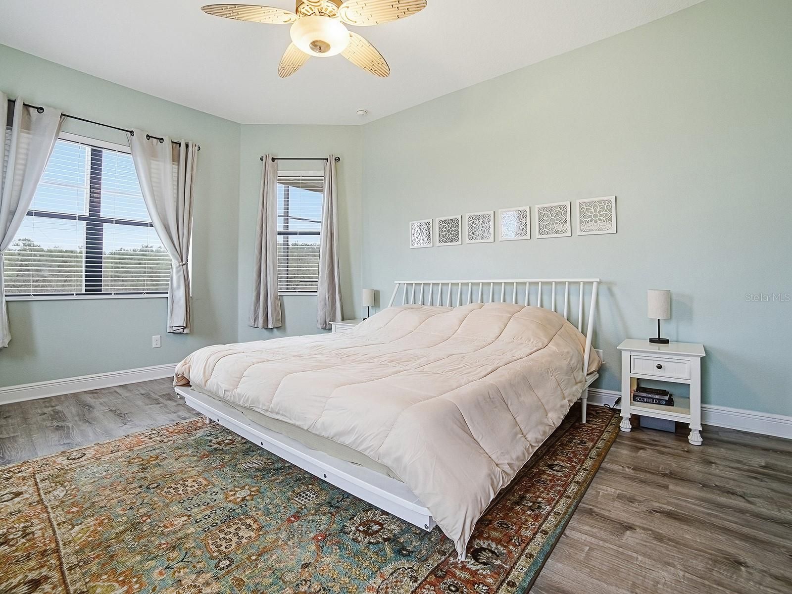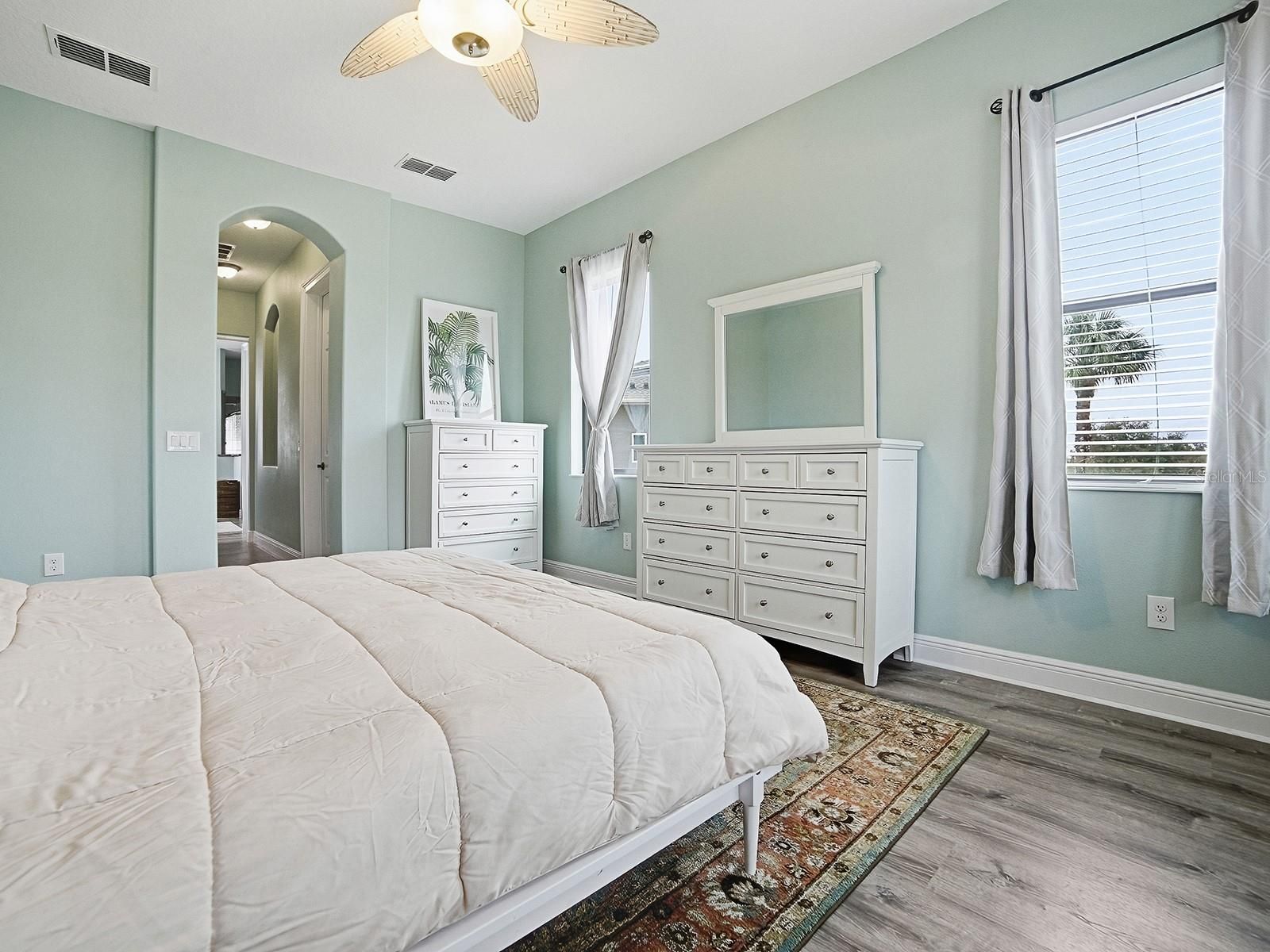 - Ceiling Fan(s), Eat-in Kitchen, High Ceilings, Kitchen/Family Room Combo, Open Floorplan, Stone Counters, Walk-In Closet(s)