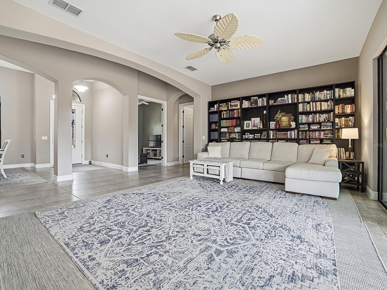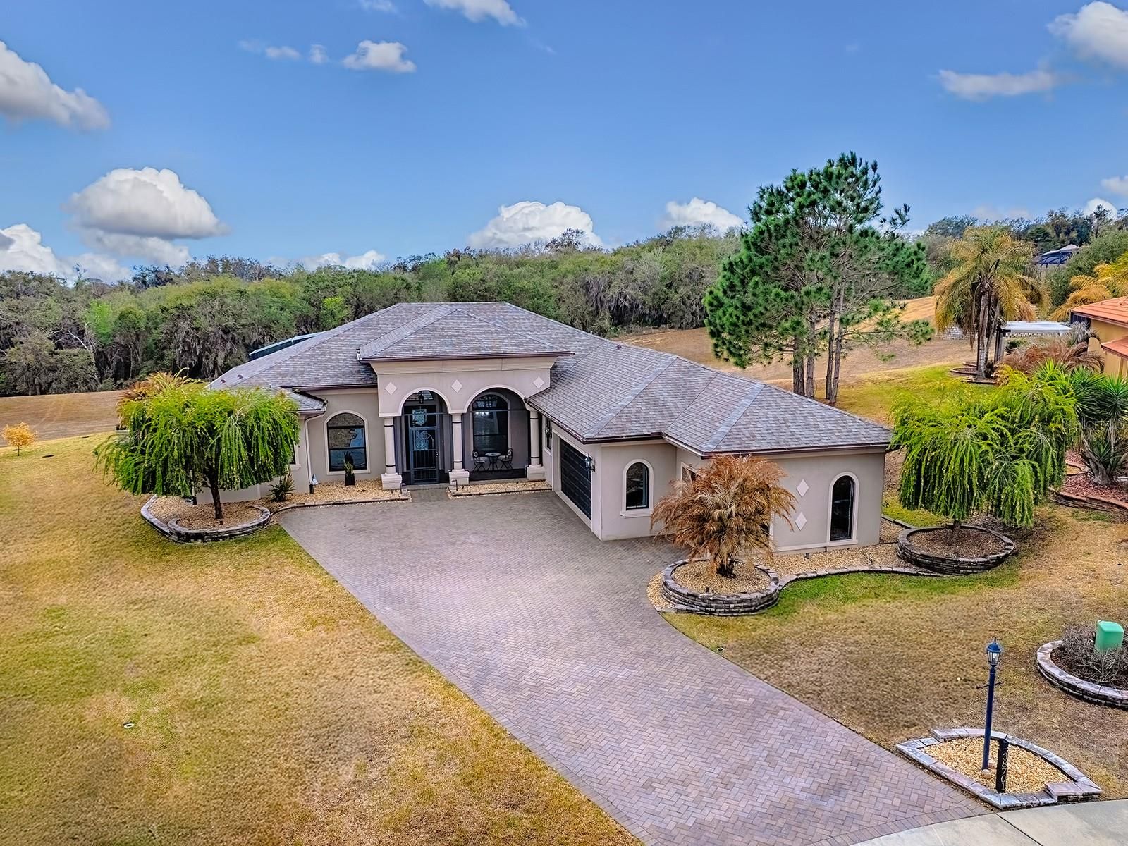 POOL HOME on a PREMIUM ¾-ACRE LOT in Guard-Gated Harbor Hills! Don’t miss this exceptional opportunity to own a beautifully maintained 3-bedroom, 2½-bath home with a den/office, ideally located within a 24/7 guard-gated golf community offering true resort-style living. Situated on a premium upgraded cul-de-sac lot of approximately ¾ acre, this property offers a private backyard with no rear neighbors and outstanding curb appeal. A brick paver driveway and walkway lead to the welcoming screened front porch, setting the tone for the inviting interior. Step through the decorative front door into the foyer, where guests are greeted by an elegant layout. The formal dining room sits just off the entry and provides the perfect space for entertaining. The spacious living room features volume ceilings and sliding glass doors that open to the home’s stunning outdoor retreat. Enjoy Florida living at its finest in the sparkling private pool within the expansive birdcage enclosure — ideal for relaxing or entertaining. Beyond the enclosure, the backyard offers a true outdoor escape, including a charming stone seating area and peaceful nature views with a peek-a-boo view of Lake Griffin. The kitchen is designed for both function and style, featuring: Granite countertops, Center prep island, Stainless steel appliances, Smooth-top range and wall oven, and Breakfast nook for casual dining. The owner’s suite comfortably accommodates a king-size bed and includes dual walk-in closets and an en suite bath with dual vanities, a Roman shower, and a private water closet. A desirable split floor plan provides privacy for guests, with two additional bedrooms connected by a convenient dual-entry bathroom. You will love the OVERSIZED garage, complete with a golf cart garage. If that isn’t enough, the seller will pay the buyer's Harbor Hills Social Club initiation fee at closing! Community & Lifestyle Features: Club membership is required with ownership. The monthly social membership includes access to: Clubhouse, Fitness center, Community pool, and pickleball courts. Residents enjoy a peaceful setting just minutes from The Villages, along with boating and fishing access to the Harris Chain of Lakes. Optional golf memberships and RV/boat storage are available for an additional fee. This exceptional property blends luxury, privacy, and resort-style amenities, making it the perfect place to enjoy the Florida lifestyle.