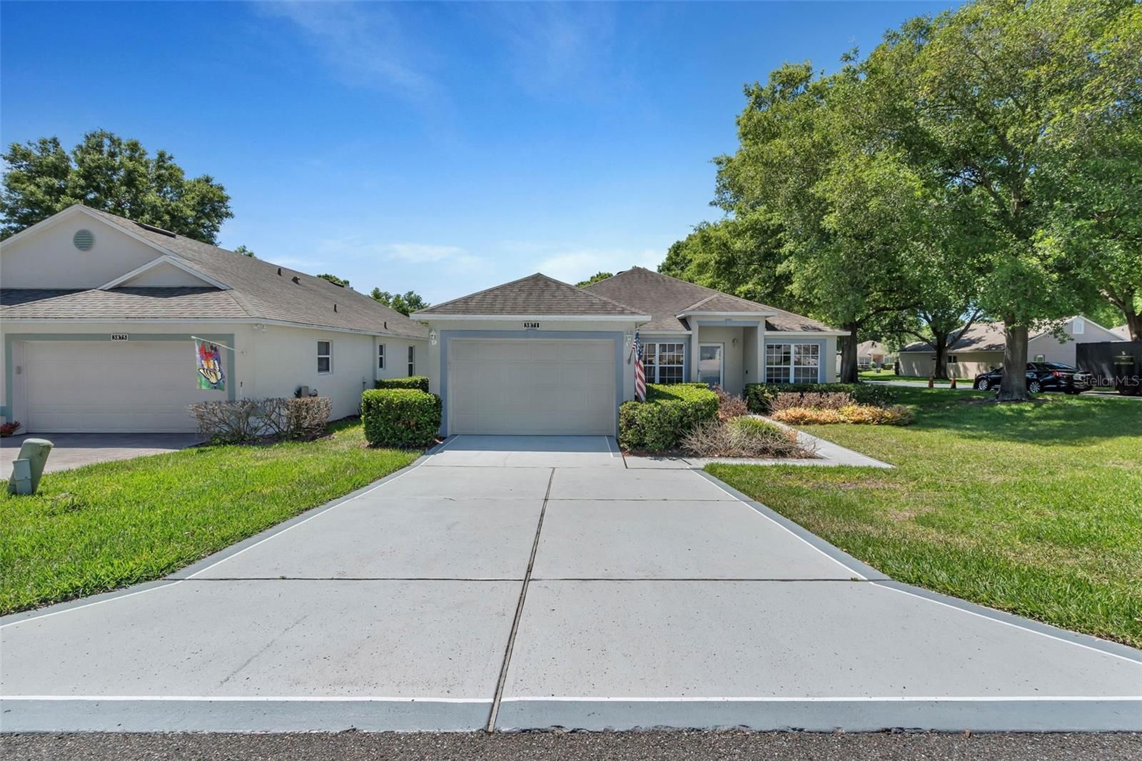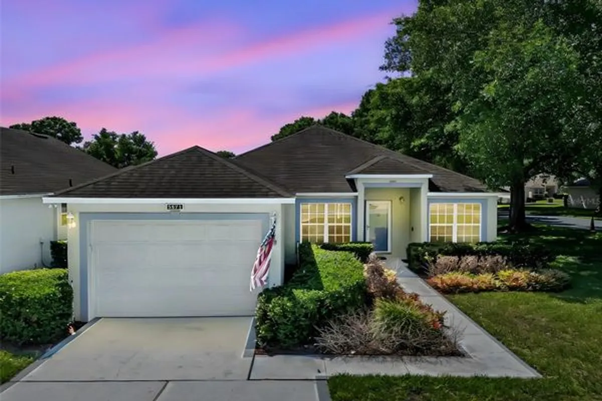 One or more photo(s) has been virtually staged. Welcome to 3871 Eversholt St, Clermont, Florida a Kings Ridge 55+ Golf Course Community Championship and Executive course located in Central Florida. This Crown model located on an oversized shade corner lot with beautiful mature landscaping. Features 2 bedrooms, 2 bathrooms, 2nd bath has nice walk-in tub, plus a den/office that can be used as a 3rd bedroom. Painted driveway , crown molding in great room, front entry security glass door. Enjoy the landscaped view of the front yard while eating your meals at the kitchen table. Entertain in the great room/dining room combo. Master bedroom has a nice size walk in closet. Relax in the screen lanai with a private view of shaded backyard on this over sized corner lot. HOA's include 24 hour guard gate, home phone, internet, cable, lawn care, your house painted every 6 years, reserves, reclaimed irrigation water. Use of the multi million $ clubhouse, 3 pools, spas, exercise classes, library, billiards. The ballroom host plays, holiday dances, charity ball, entertainment, private parties, bingo, movies night, sports events, etc. Play a round of tennis or pickle ball. Plan a day trip to Disney, Universal, Sea World or World famous beaches. Orlando airport less than an hour drive. Hop on your golf cart drive to local shopping car, grocery store, banks, restaurants, dr. offices, hair salons, pet store. Embrace the Florida lifestyle and make this Move in ready home Yours.