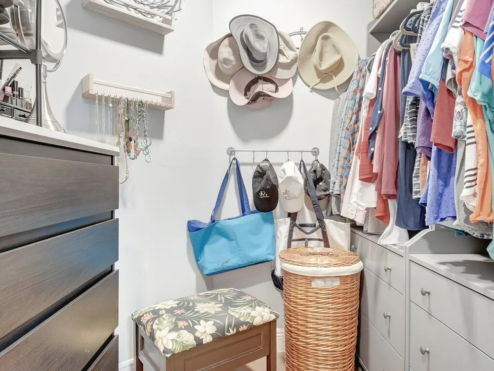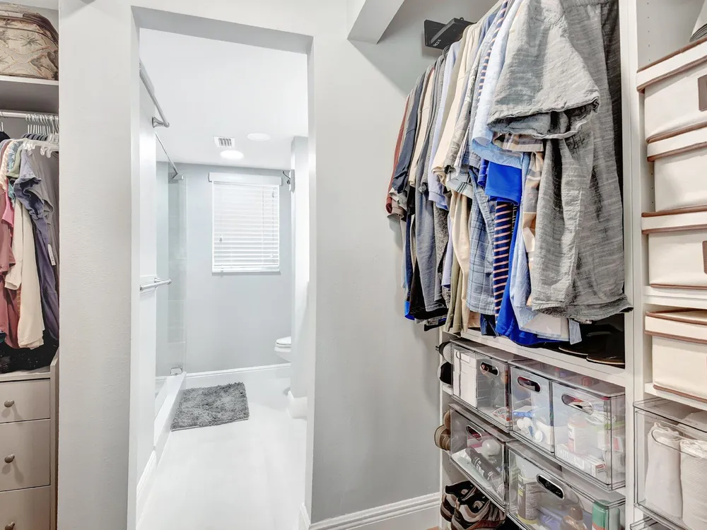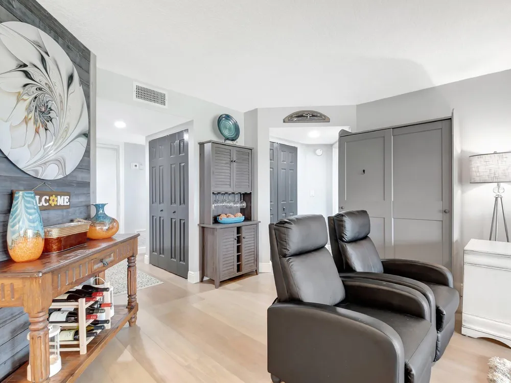- Built-in Shelving, Elevator, Entry Level Living Area, Entrance Foyer, Split Bedrooms, Walk-In Closet(s), Kitchen/Dining Combo, Blinds, Sliding Window(s), Separate Shower, Storm Shutters